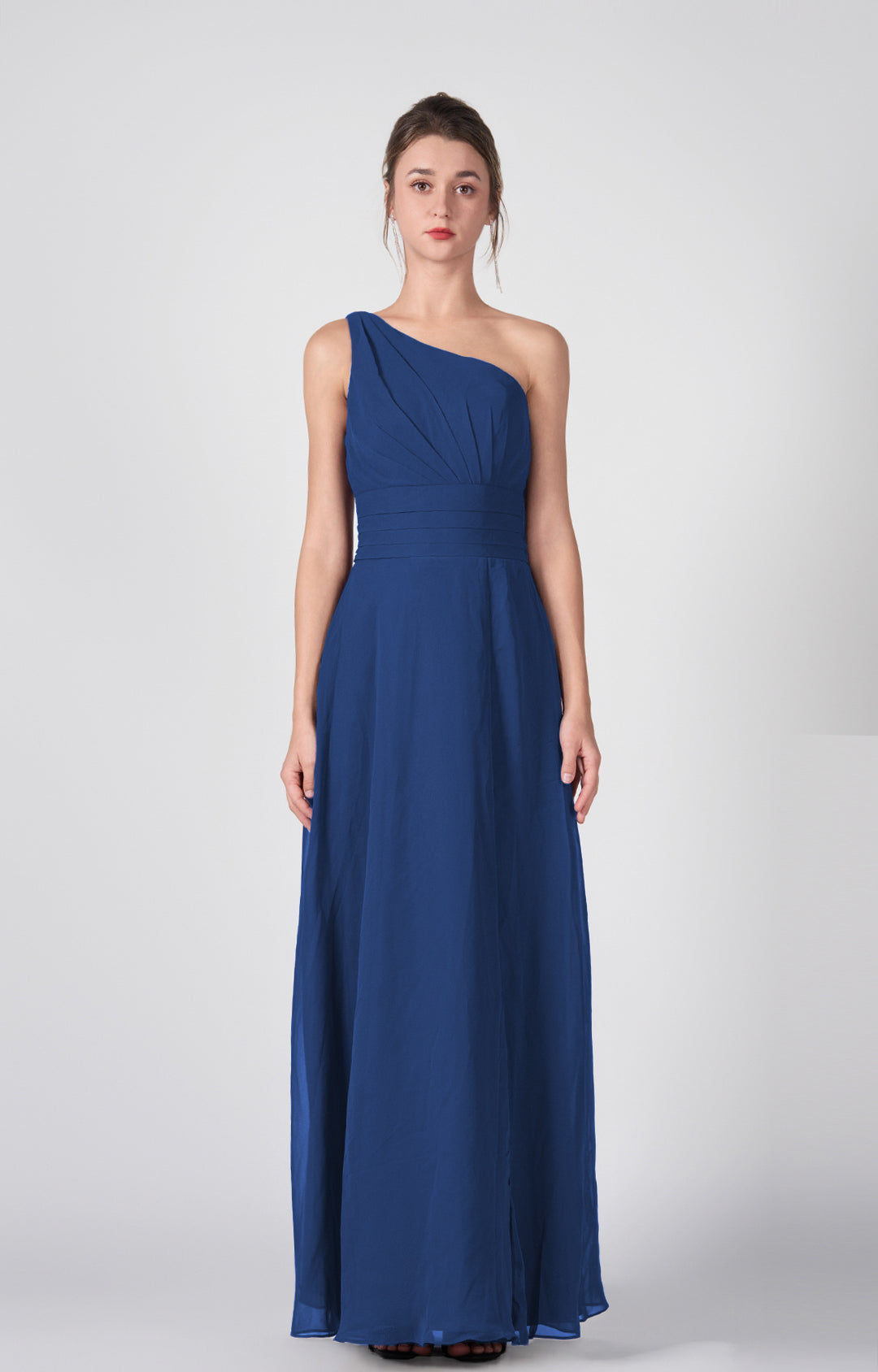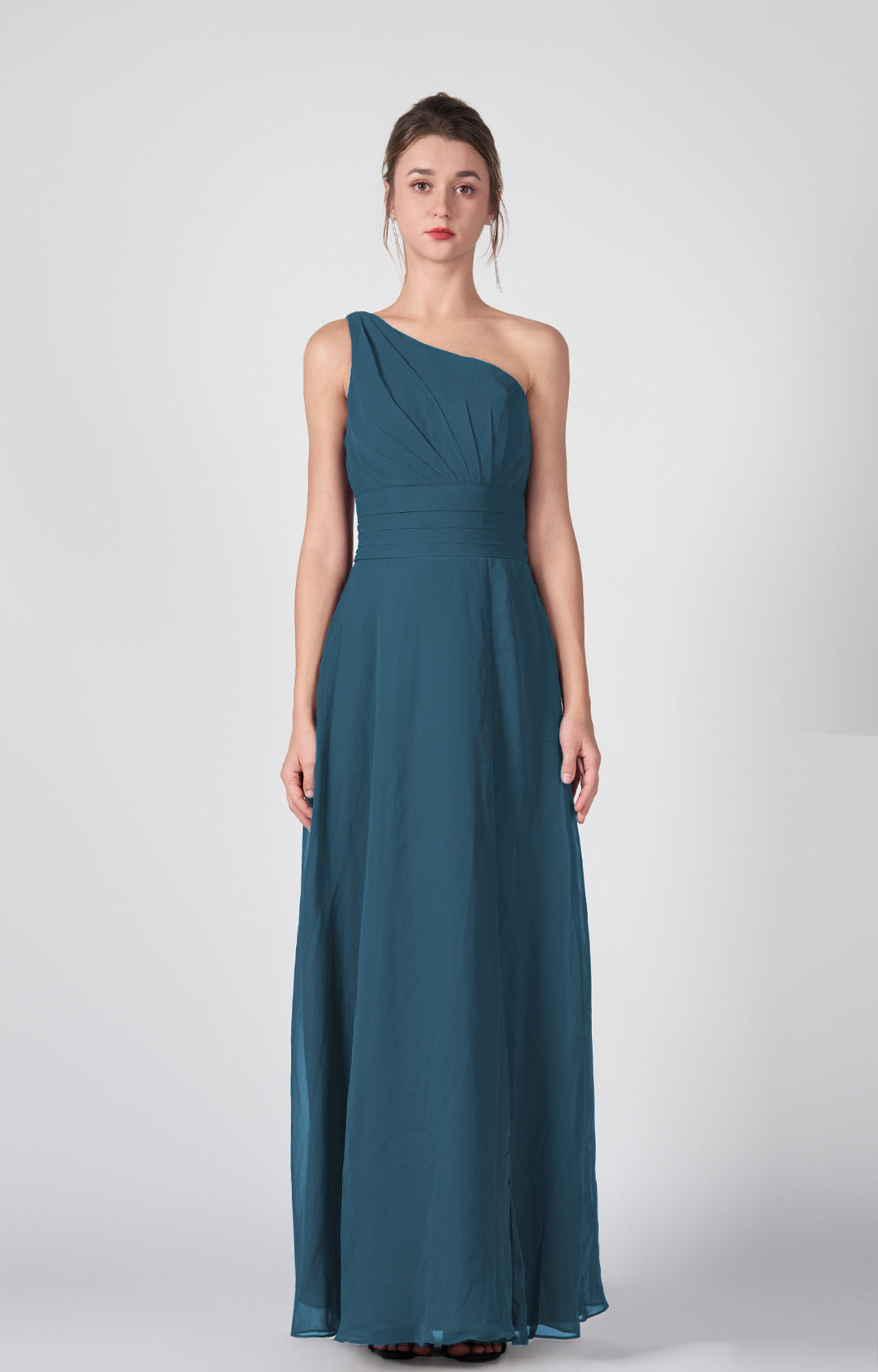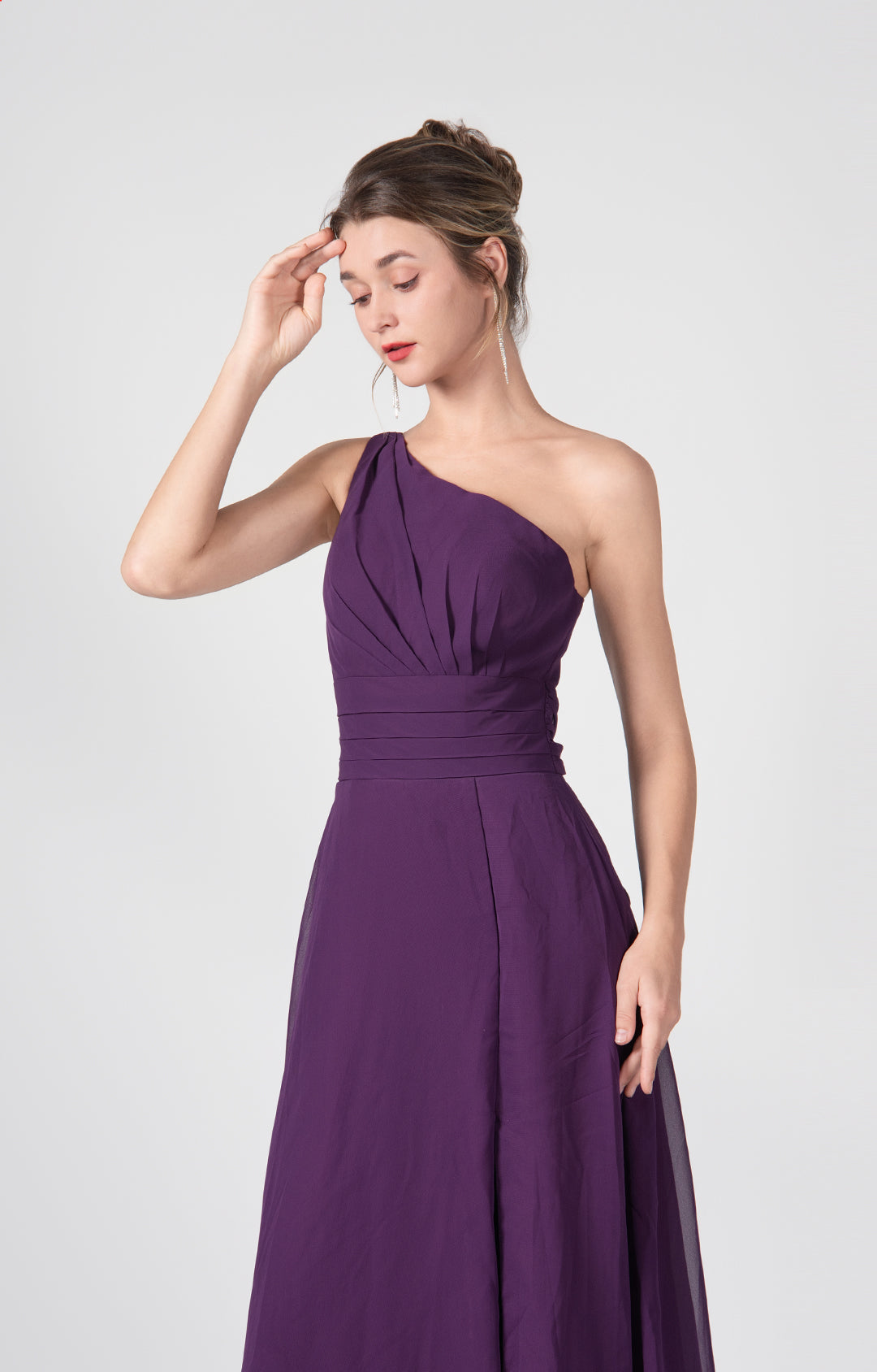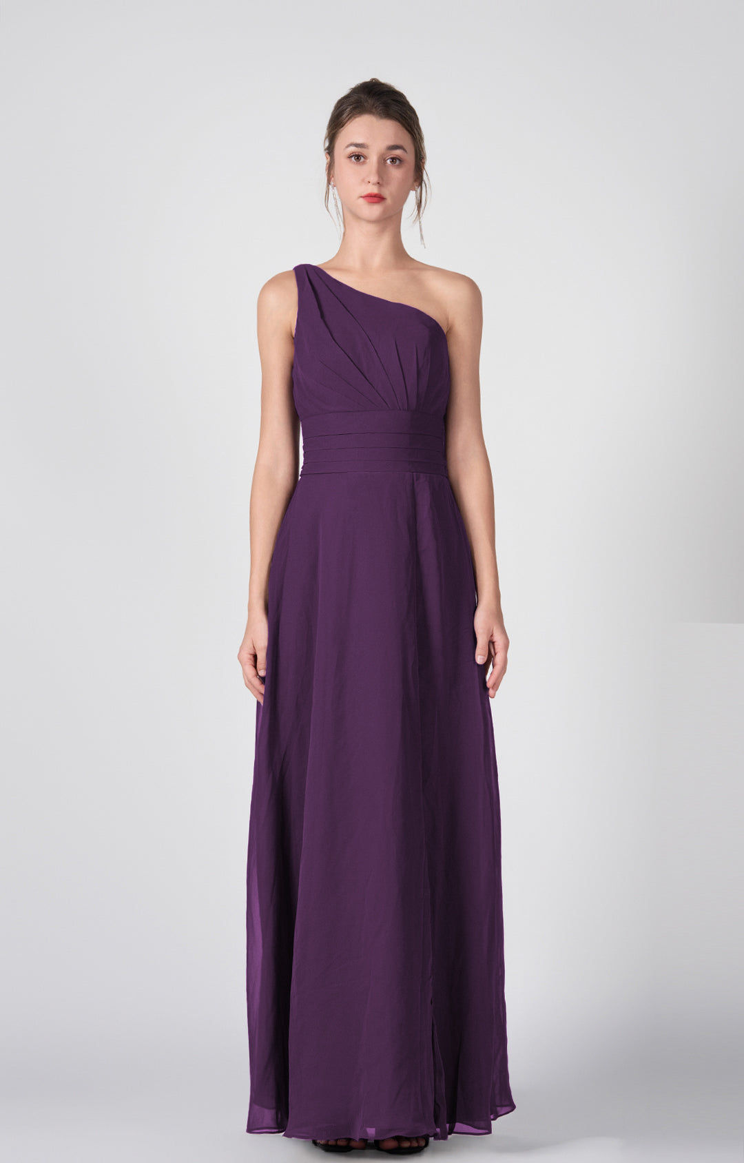 The chiffon dress features a lightweight, sheer fabric with a delicate drape, creating an elegant and flowy silhouette.