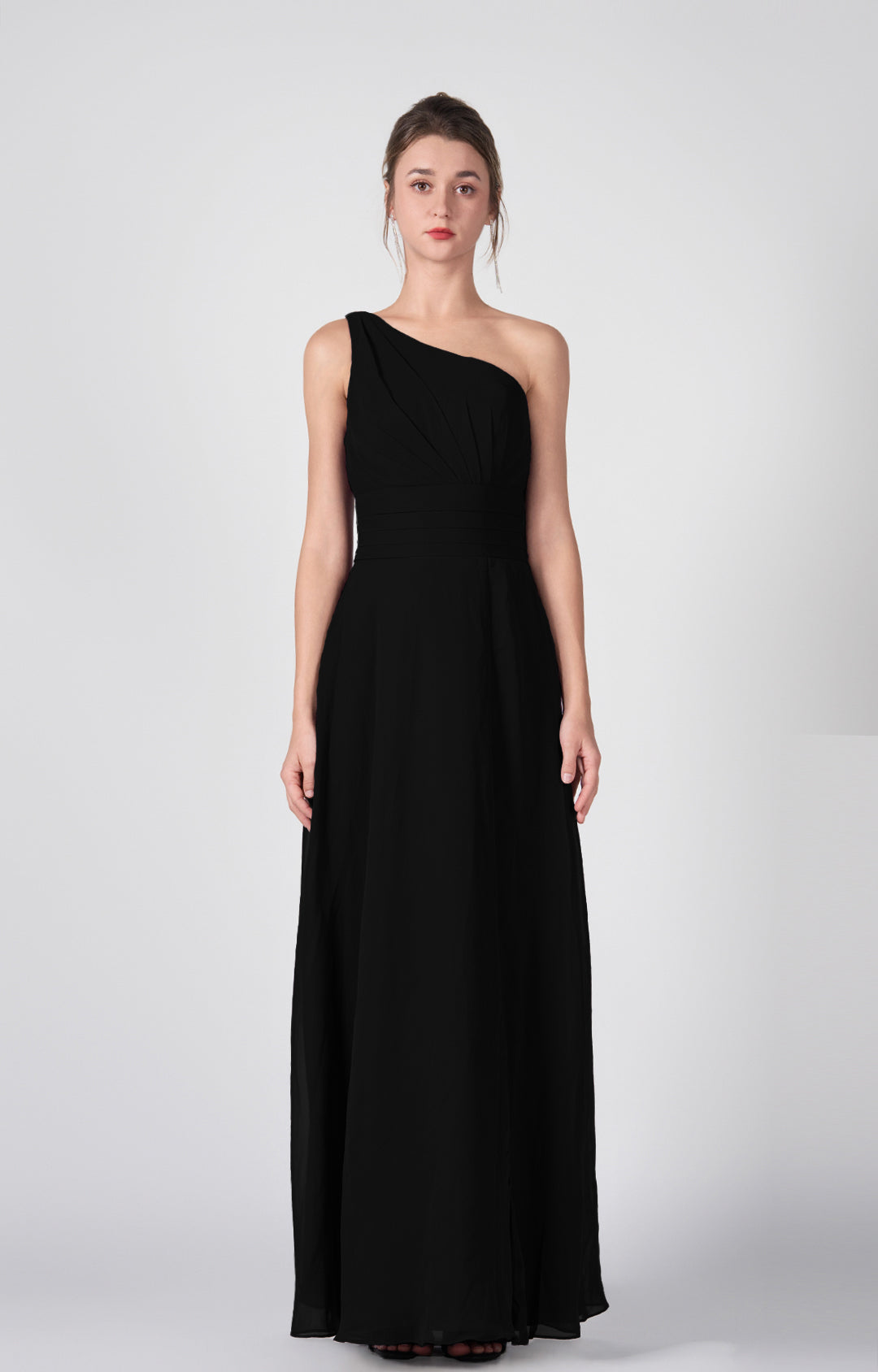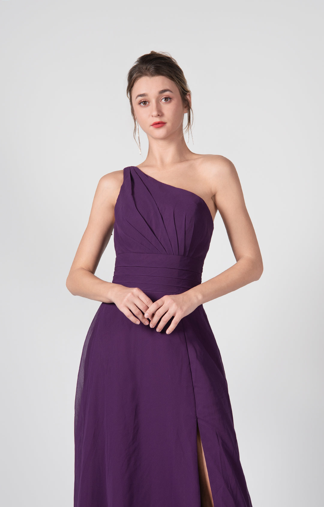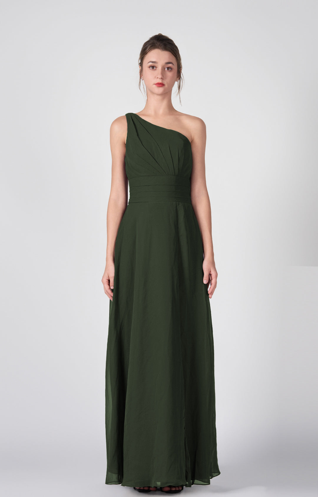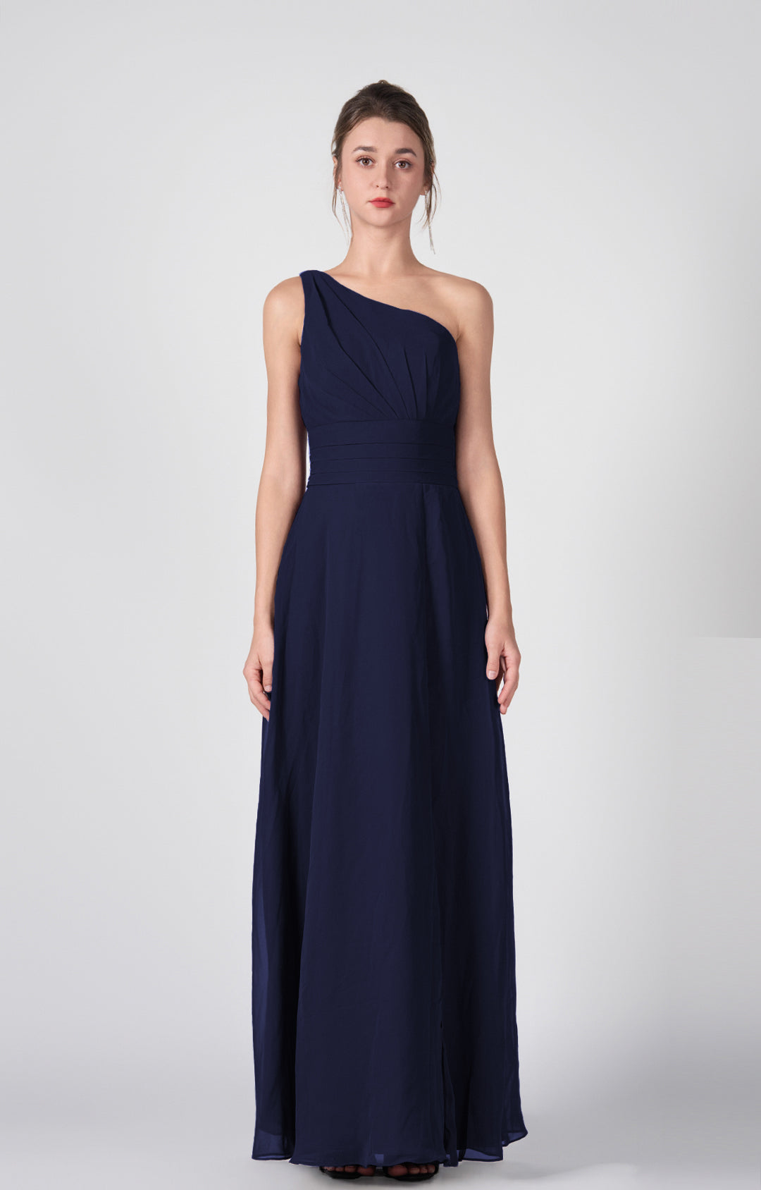 The chiffon dress features a lightweight, sheer fabric with a delicate drape, creating an elegant and flowy silhouette.