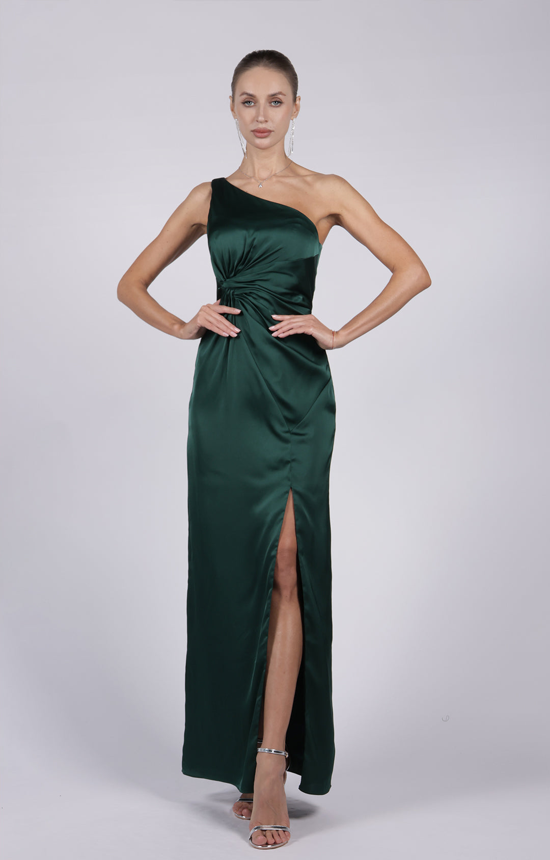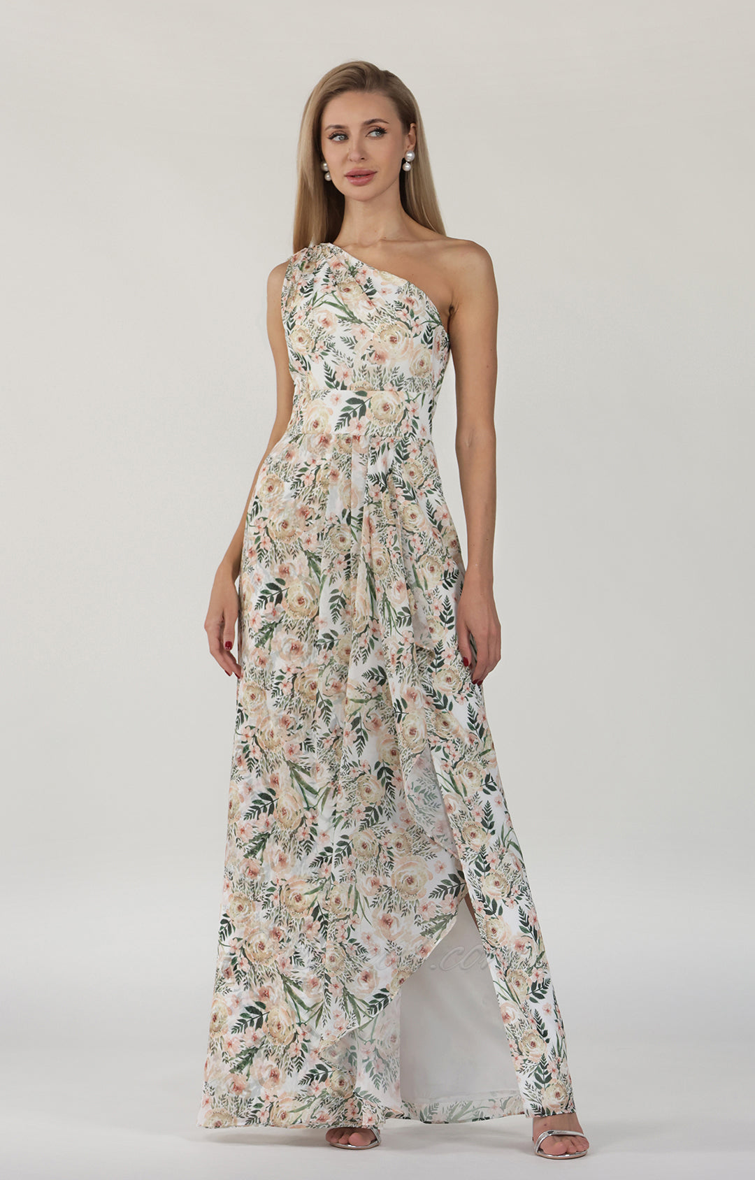 One-Shoulder Lace-Up Back Pleated A-Line Dresses