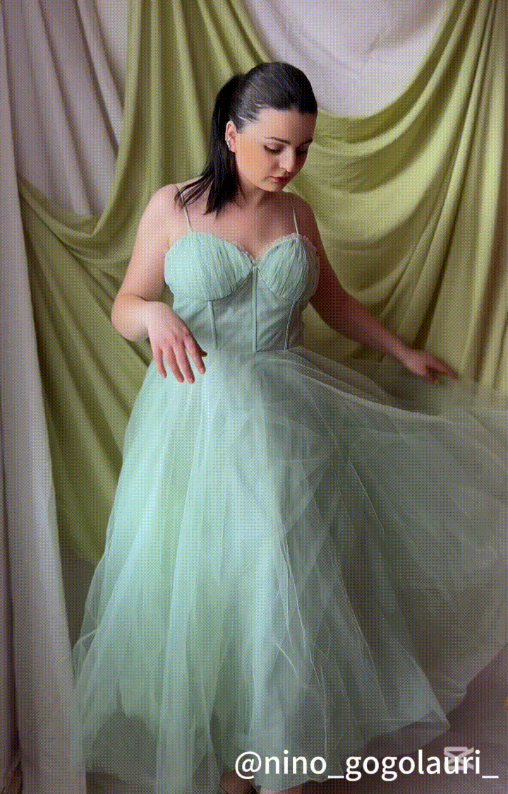 Long Sheer Sleeves V-Back Pleated Slit Dresses
