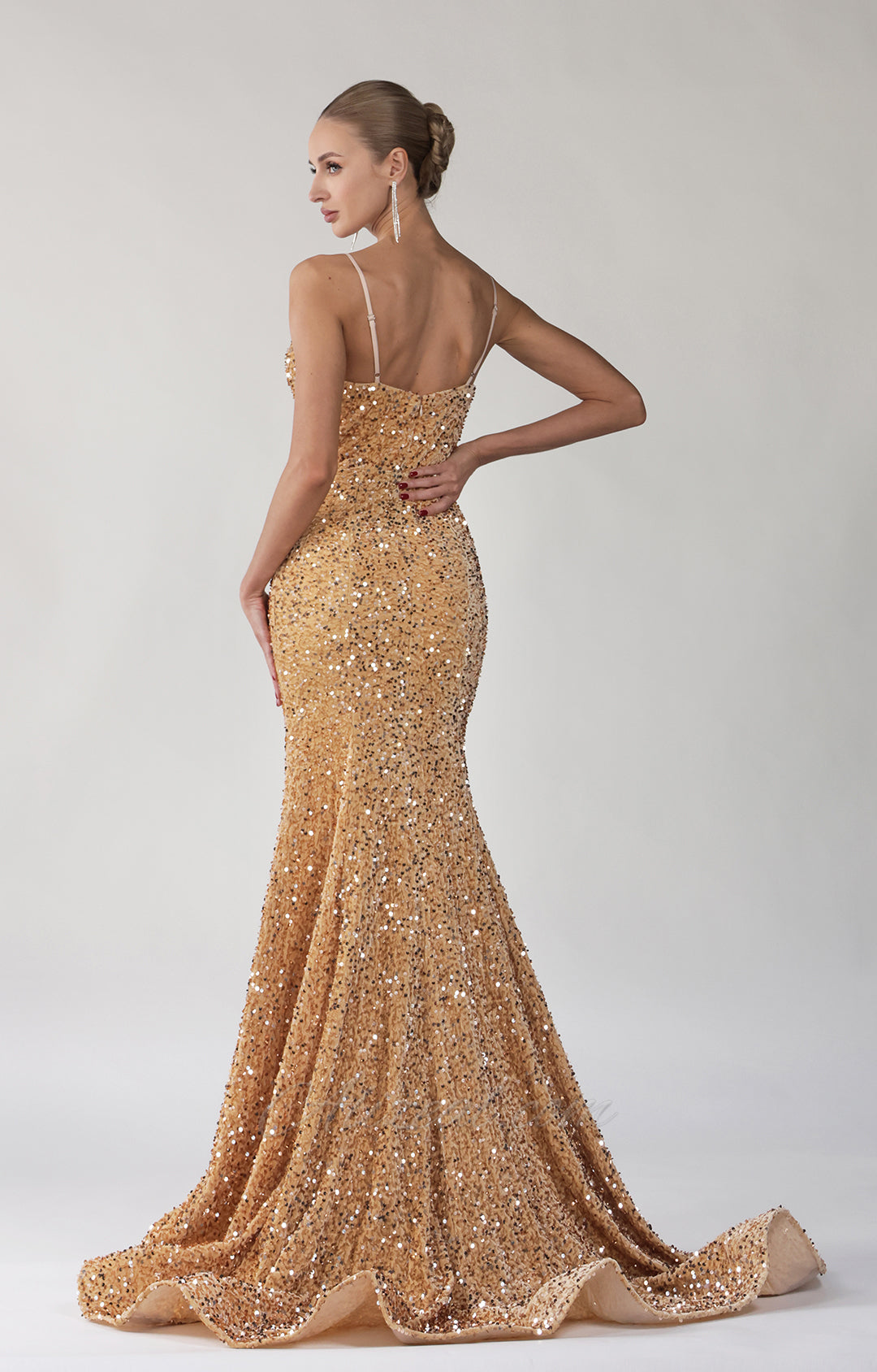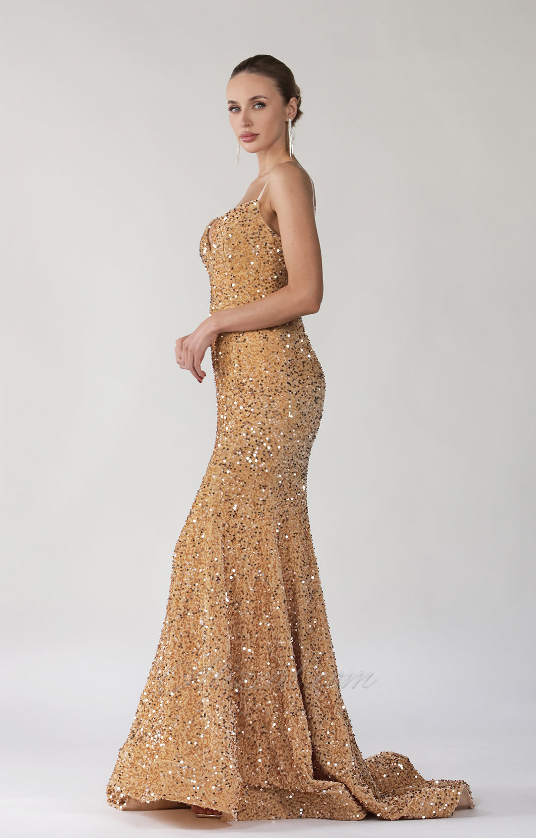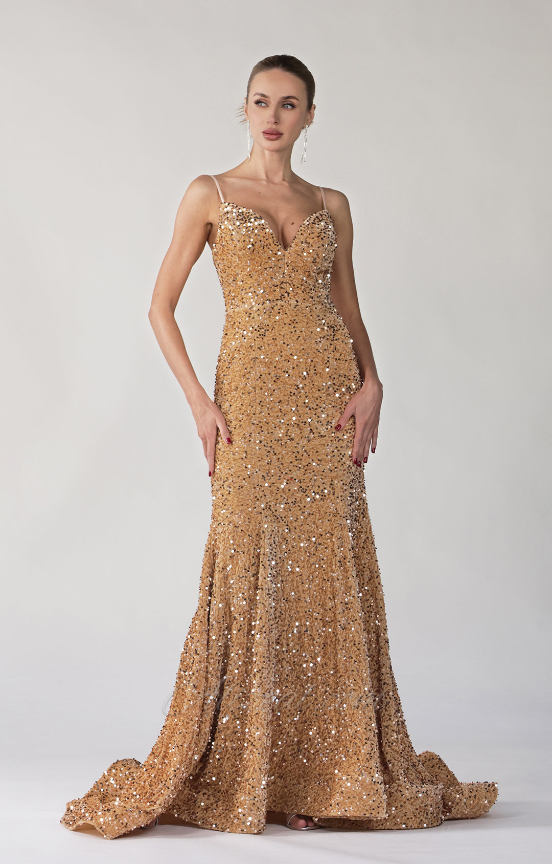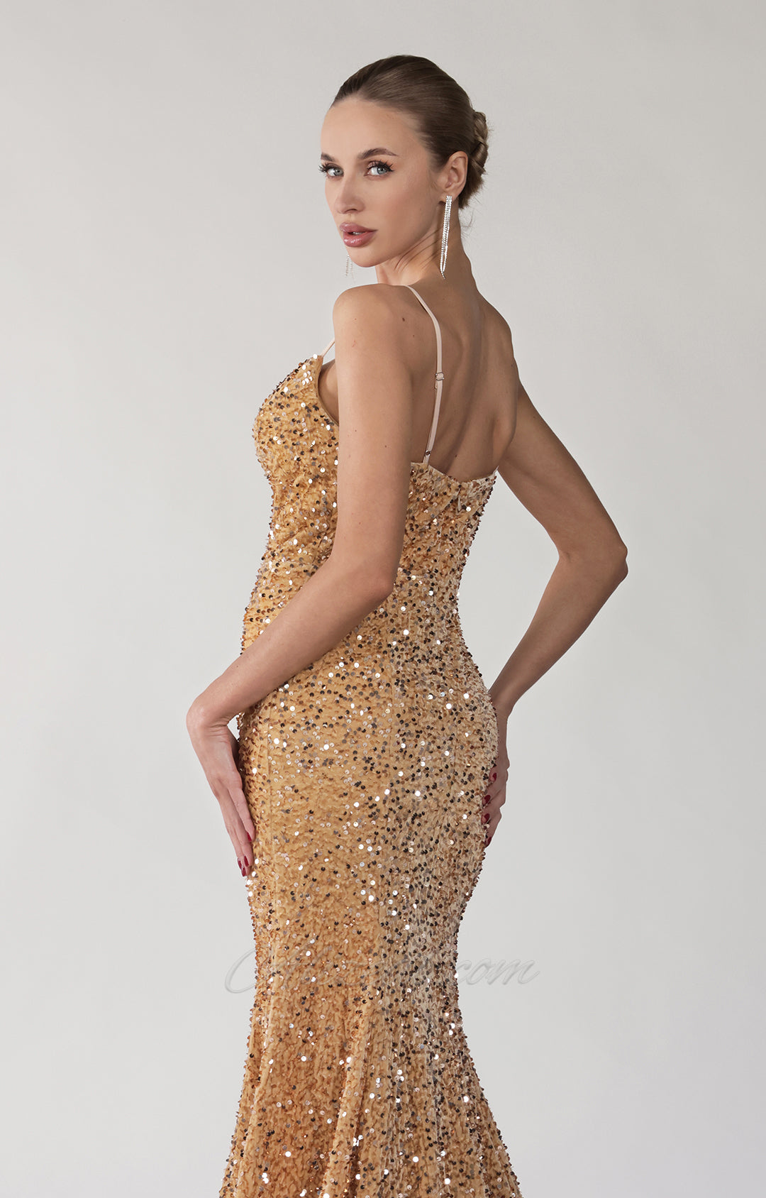 Crafted from premium sequin, this dazzling gown is designed to hug your figure, shiny and elegant.