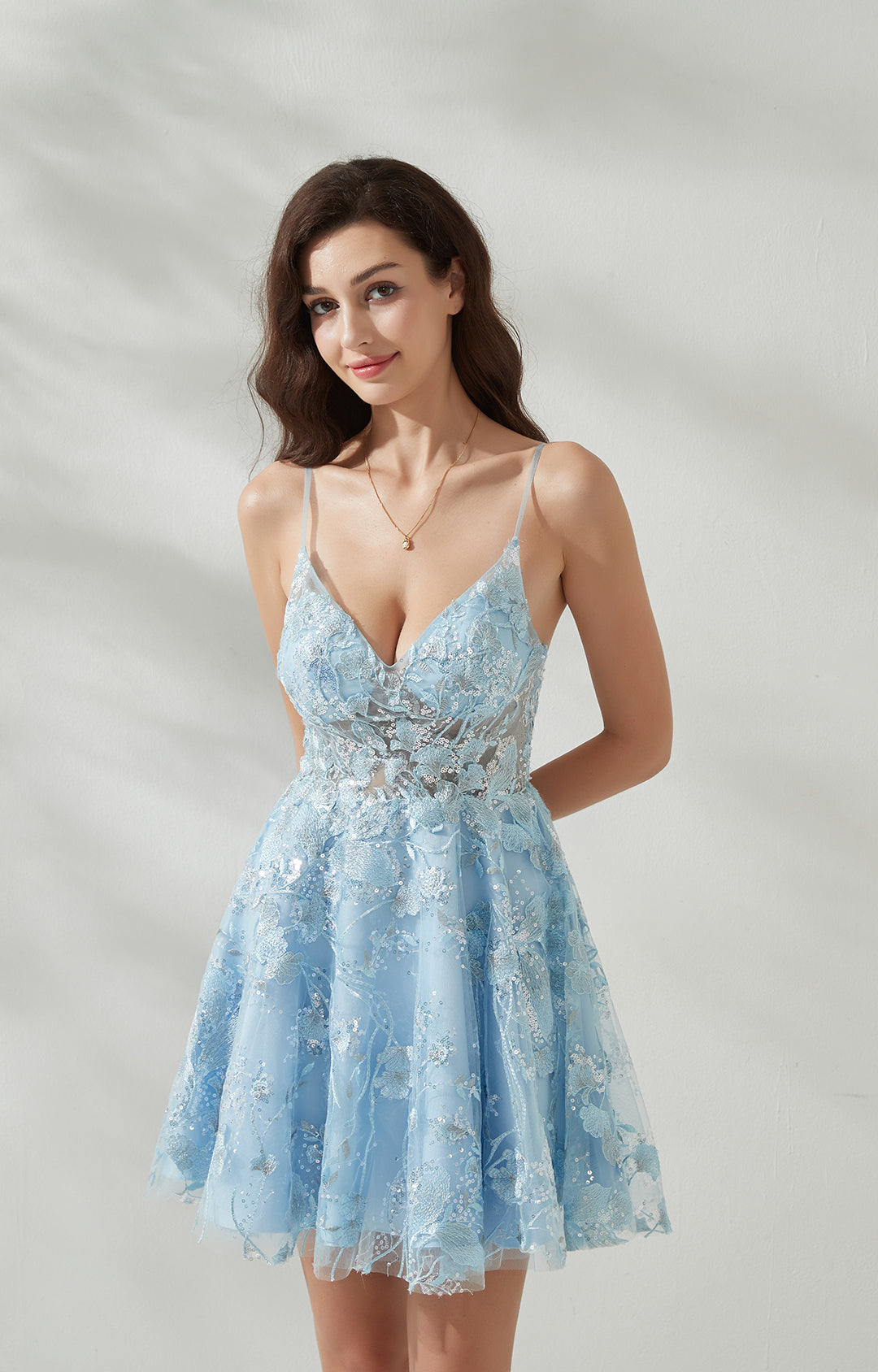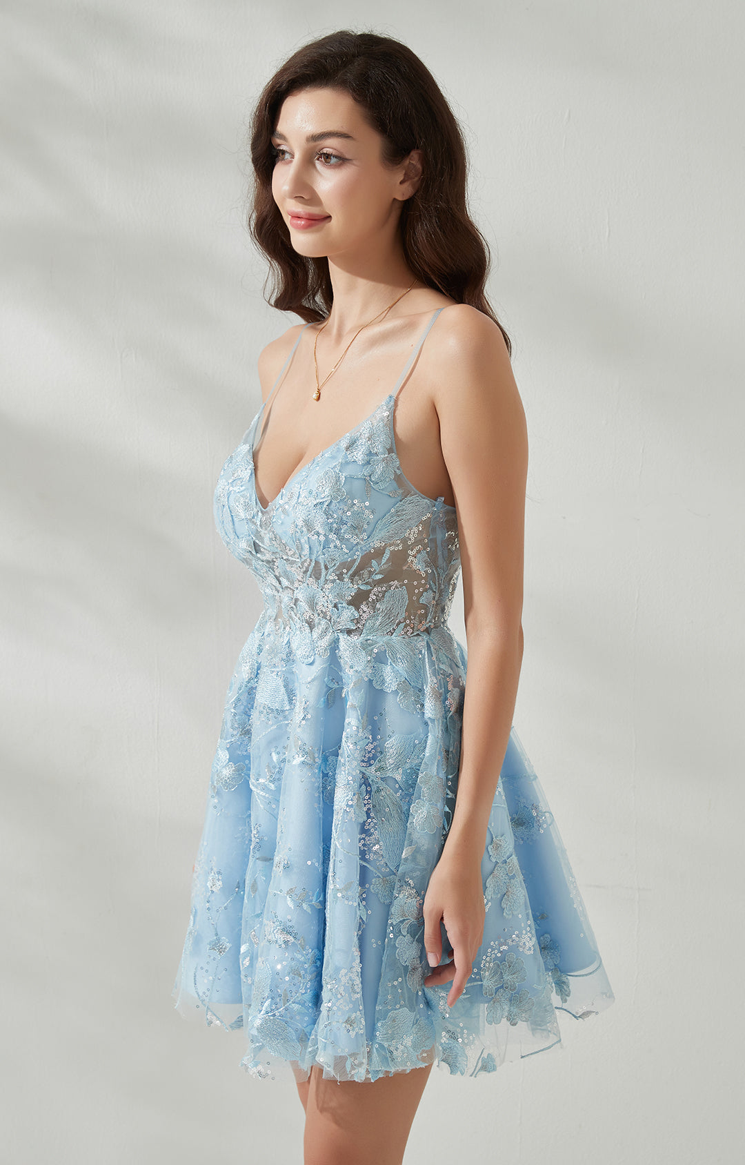 A-line V-Neck Spaghetti Straps Back Zipper Homecoming Mini Dress