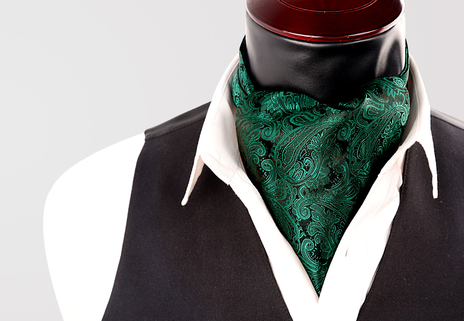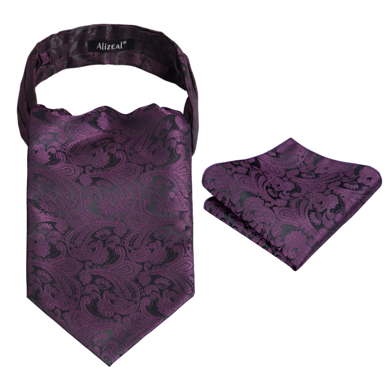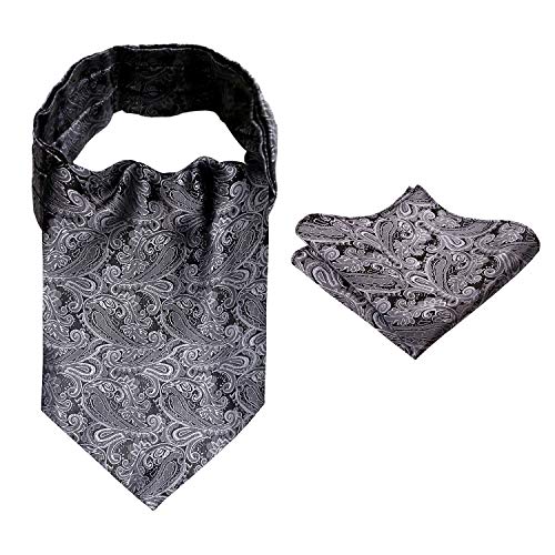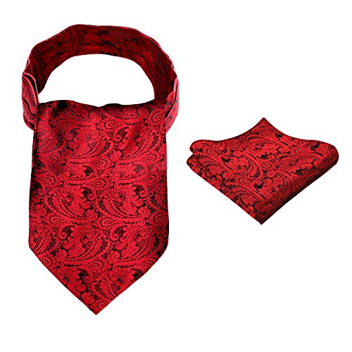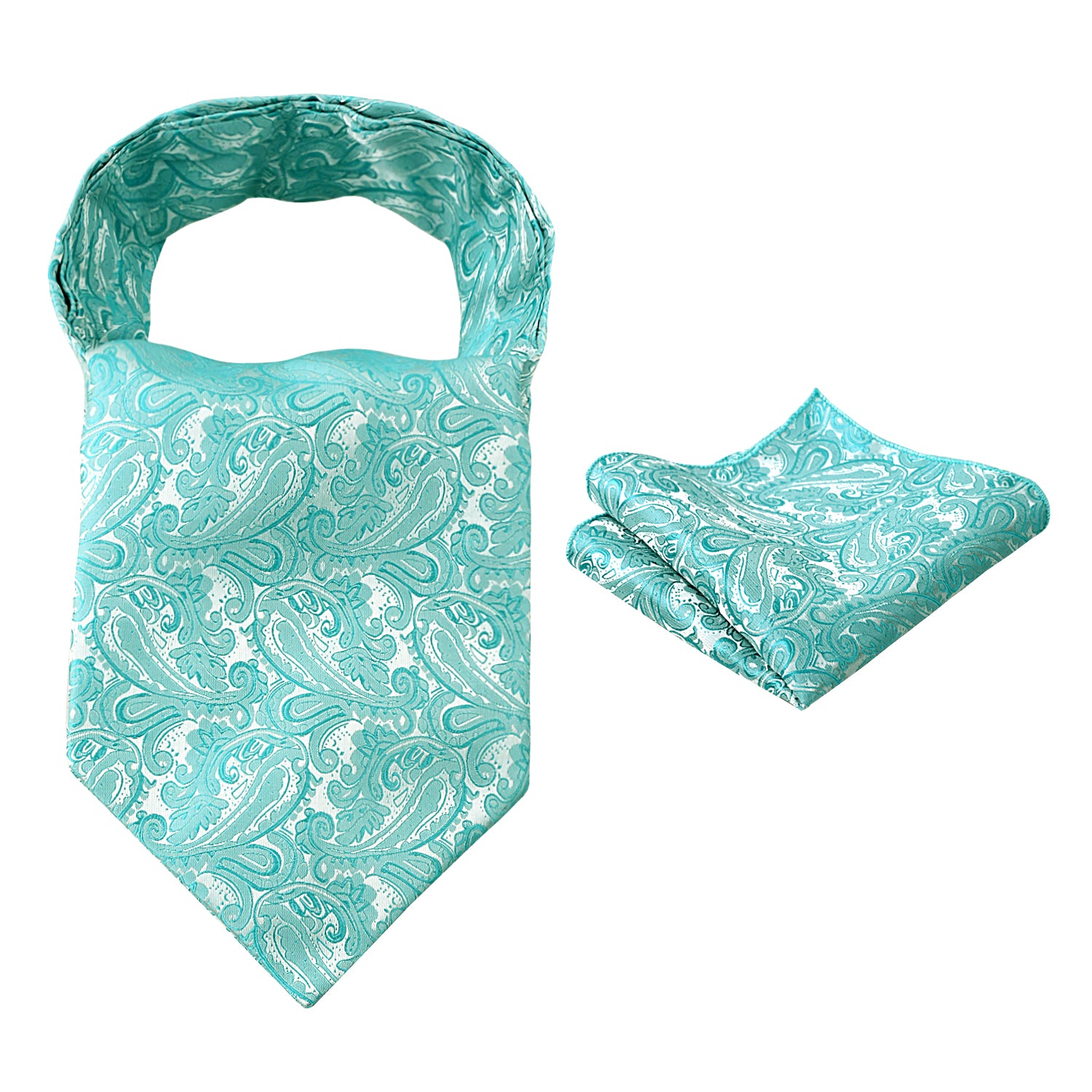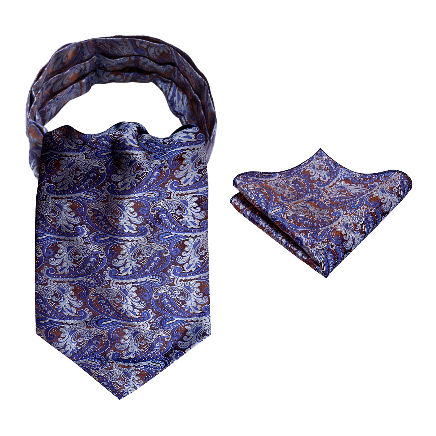 Men's Paisley Ascot Tie Cravat Satin Self Tie and Handkerchief Set, 139