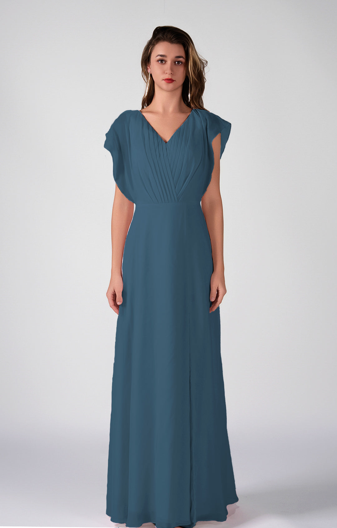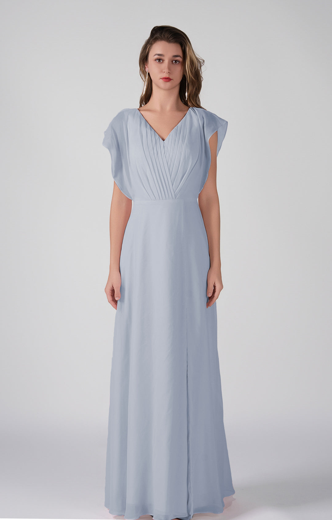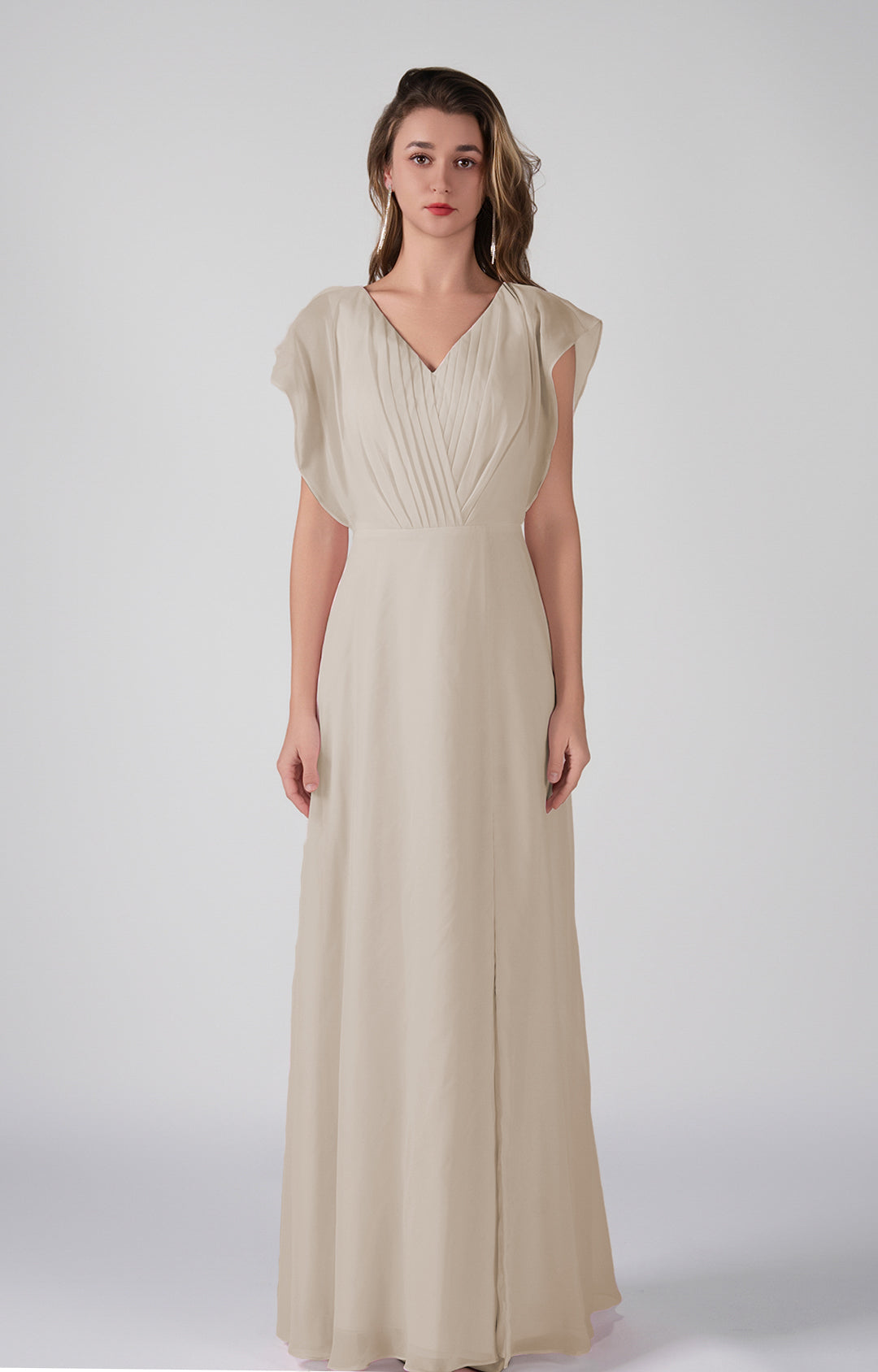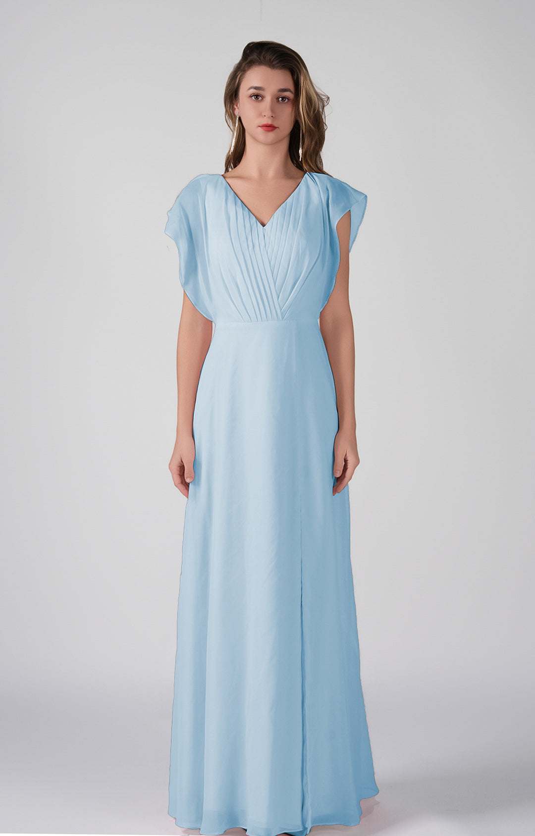 V-Neck Flutter Sleeves Pleats A-Line Maxi Dress
