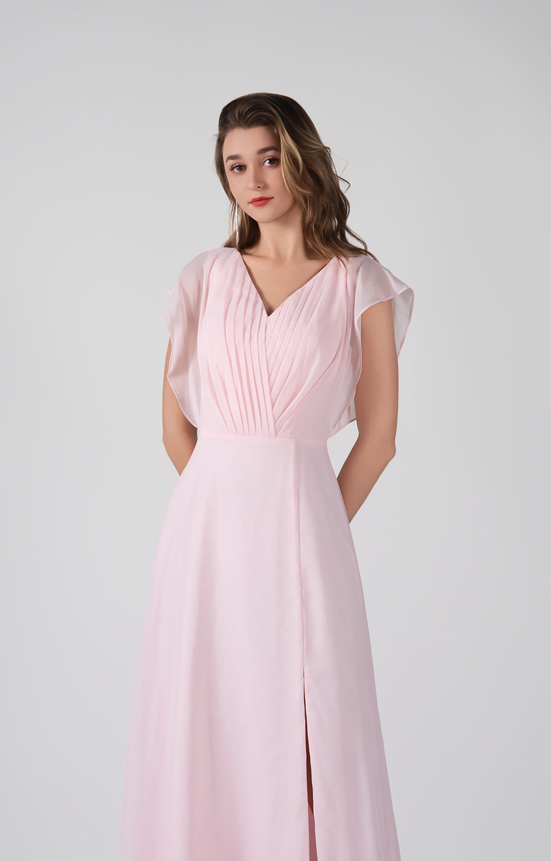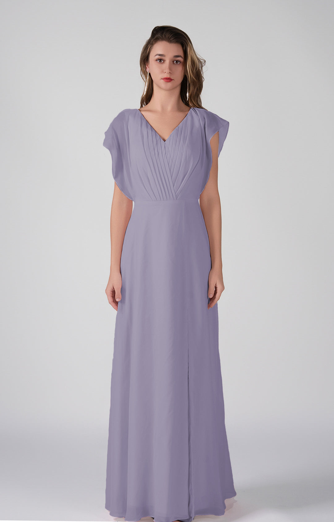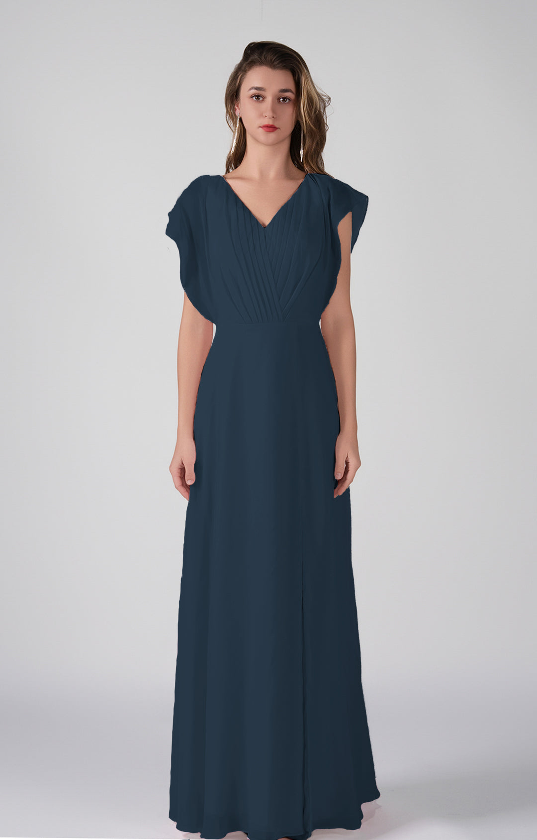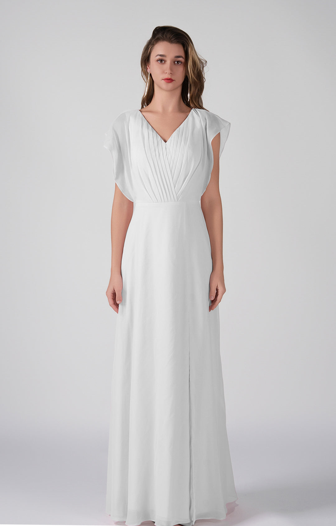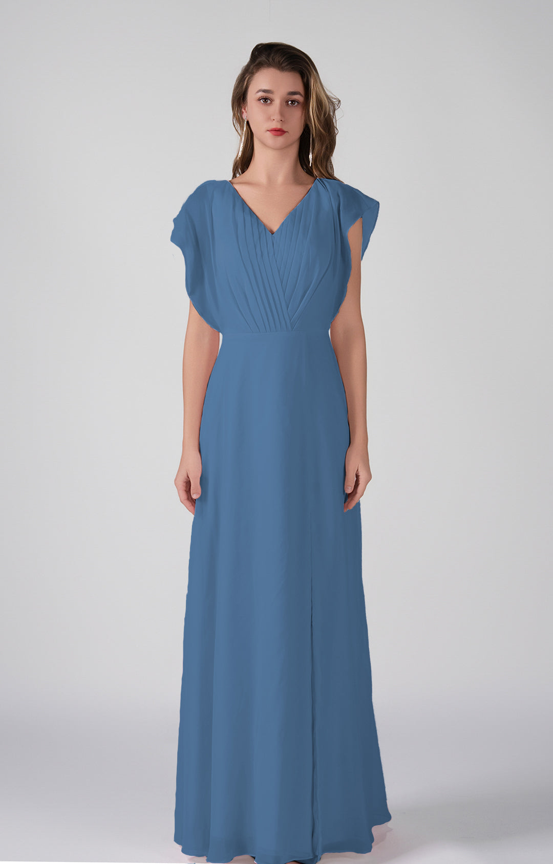 V-Neck Flutter Sleeves Pleats A-Line Maxi Dress