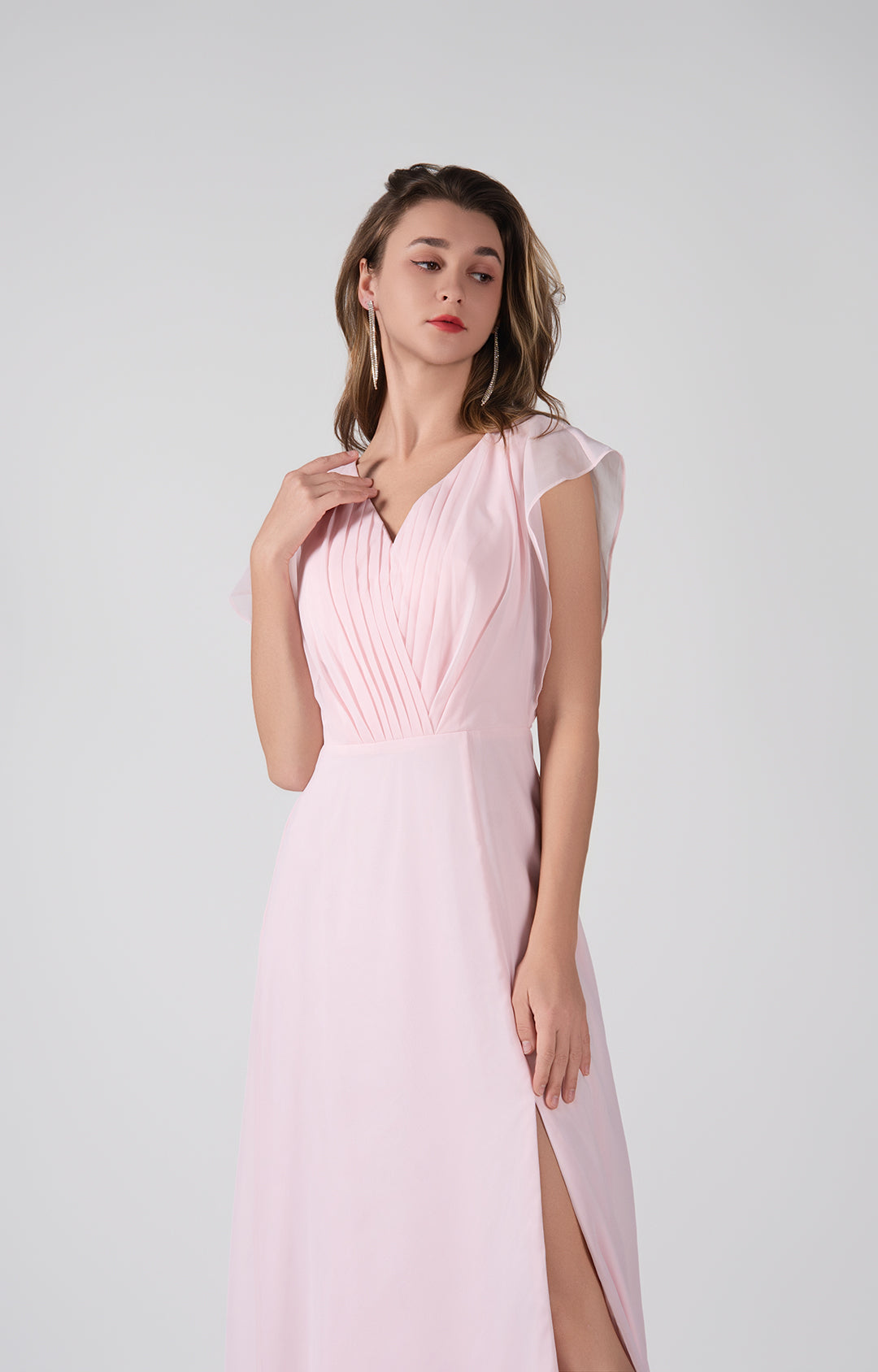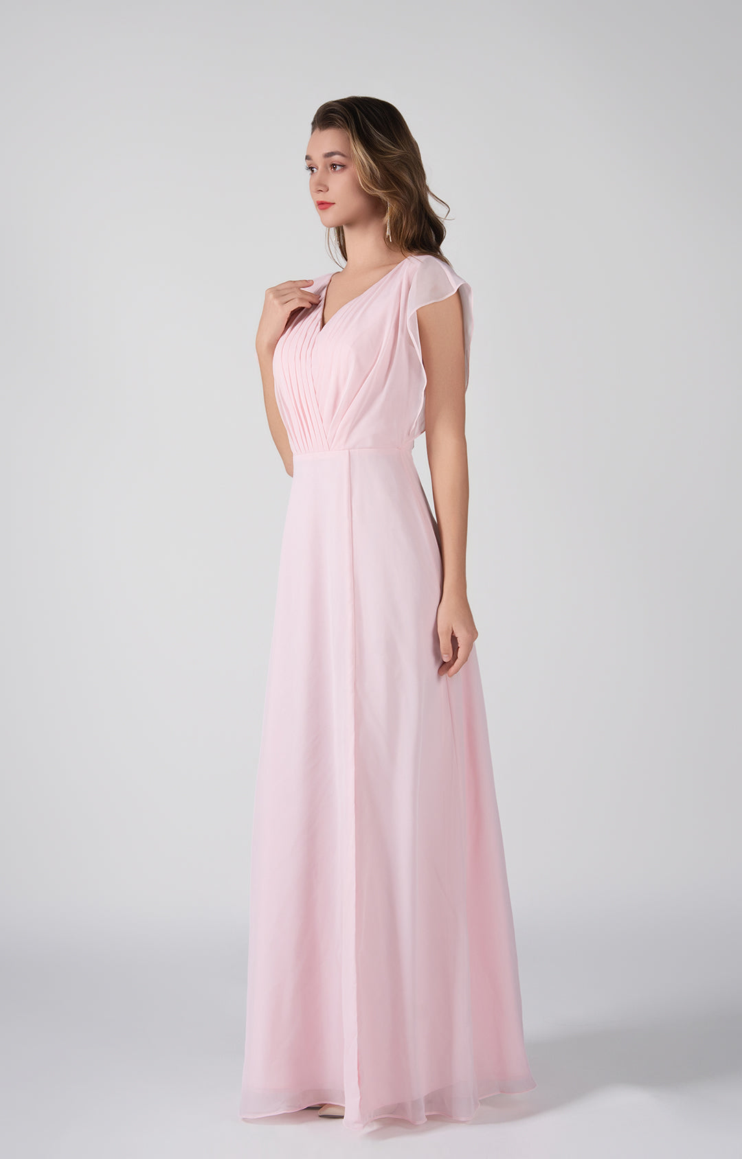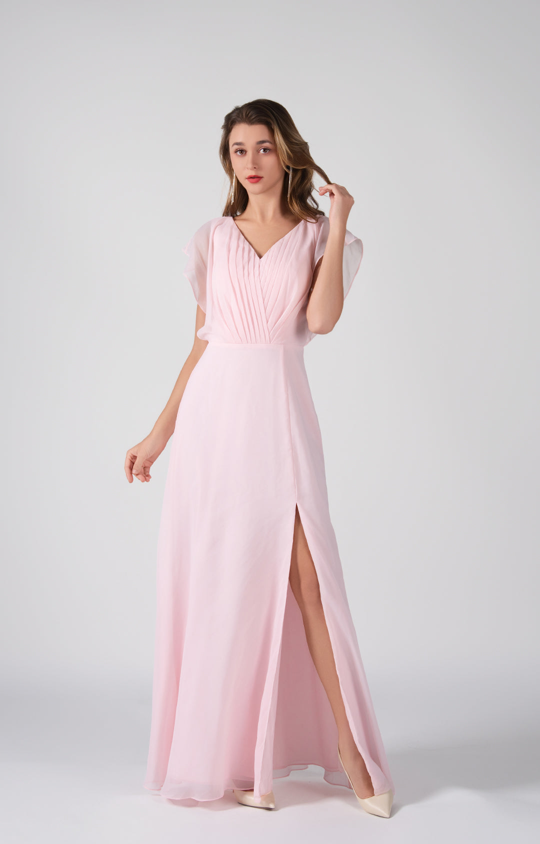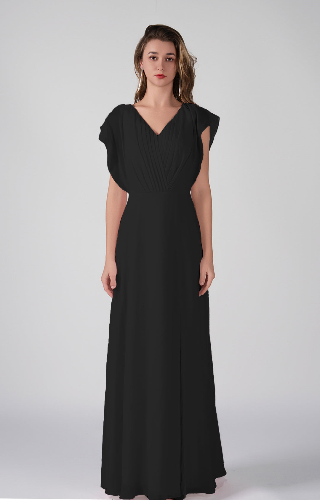 V-Neck Flutter Sleeves Pleats A-Line Maxi Dress