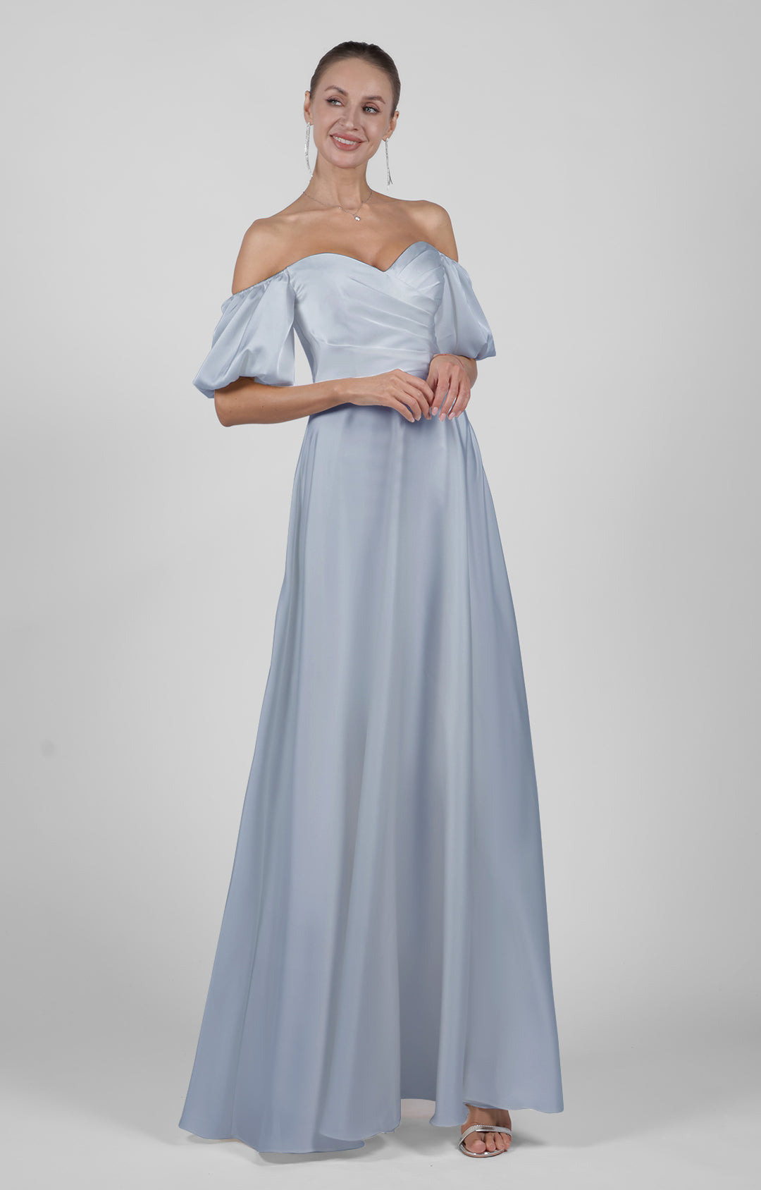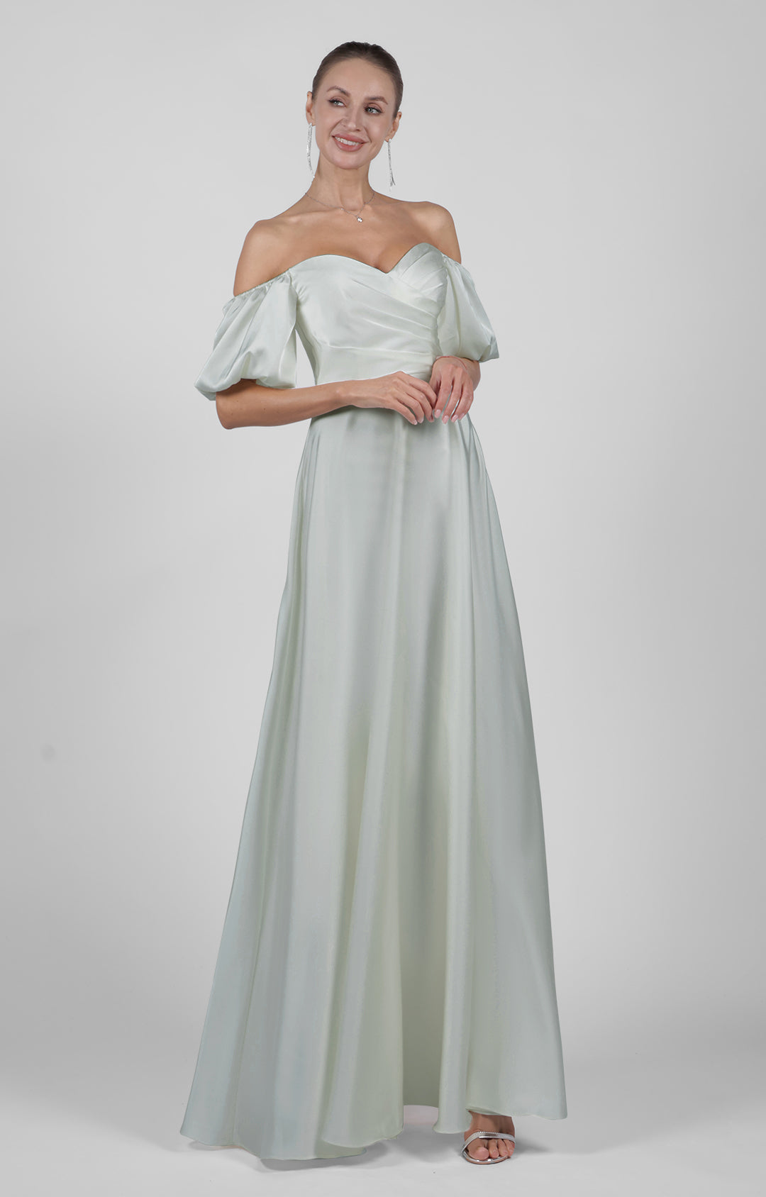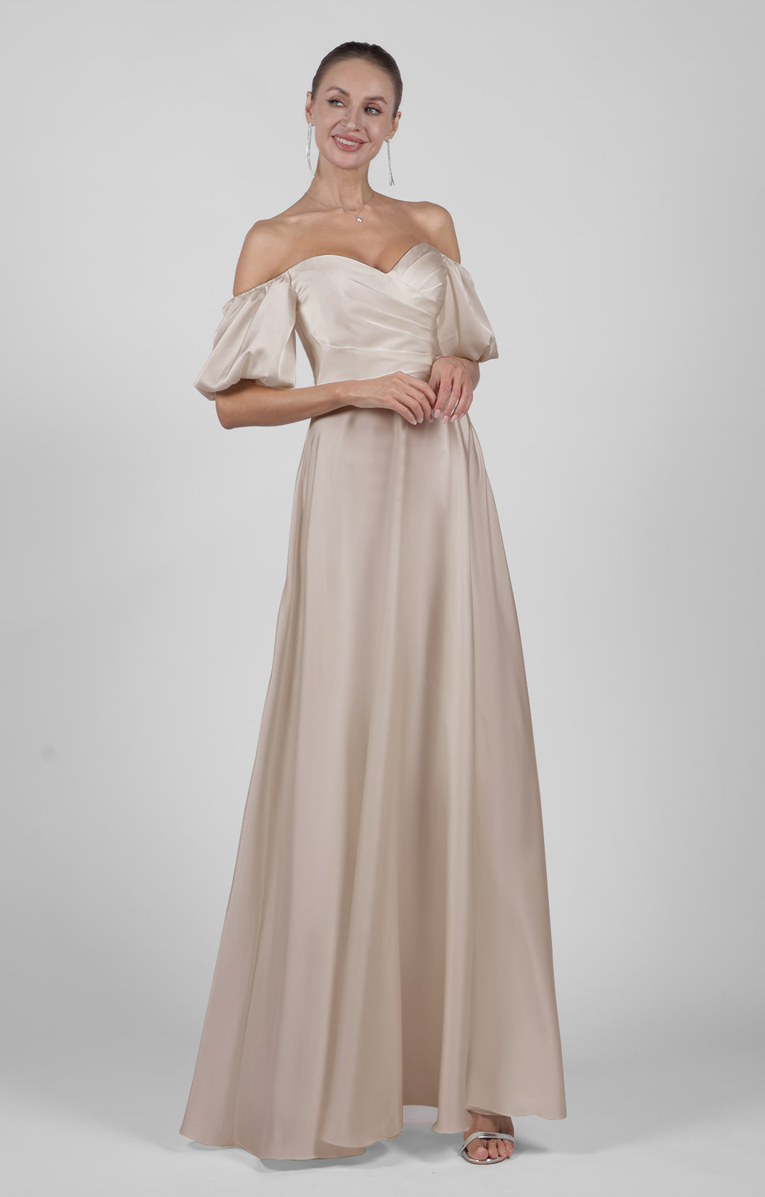 Off-Shoulder Puffy Sleeve Bridesmaid Maxi Dress