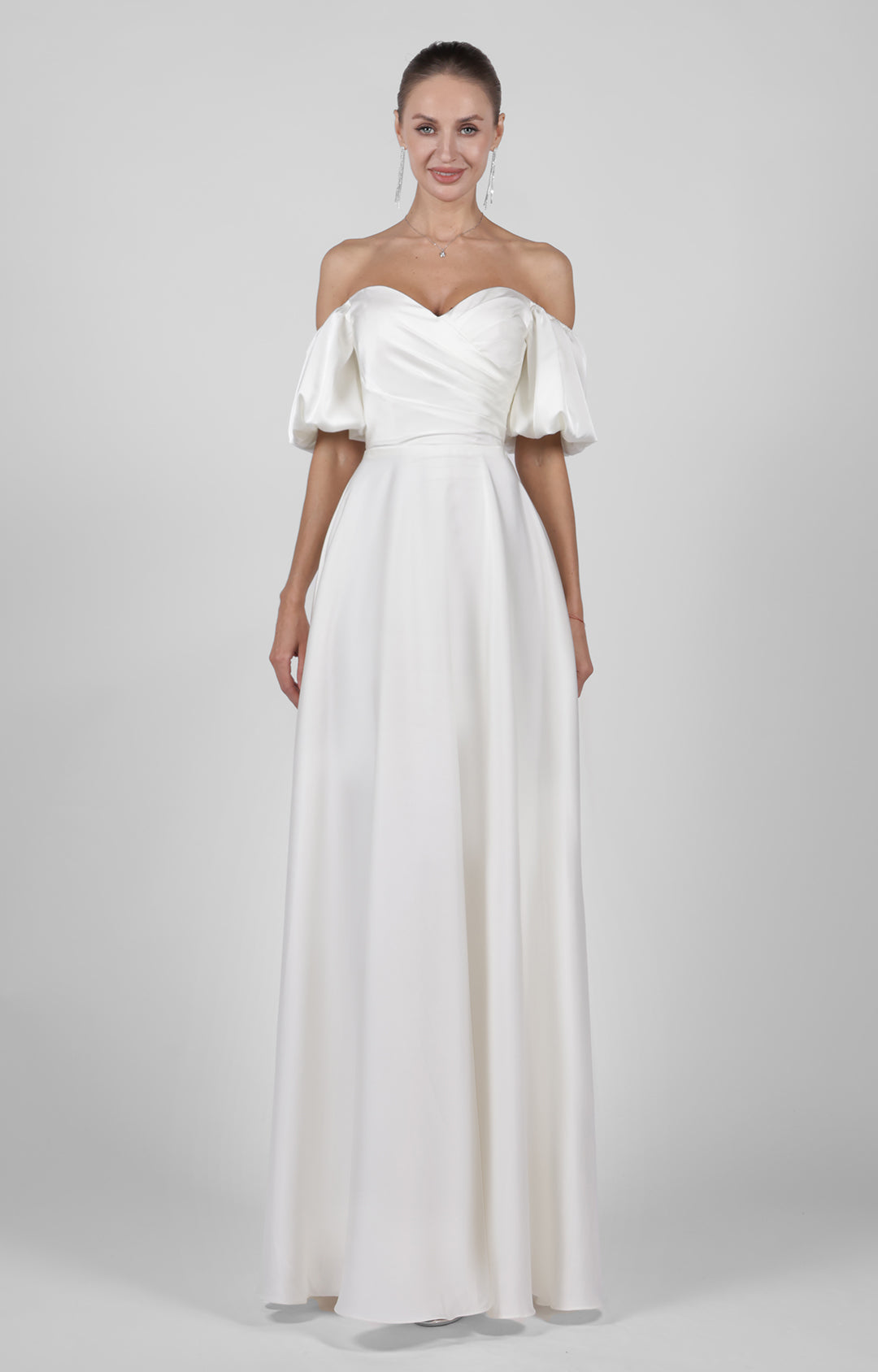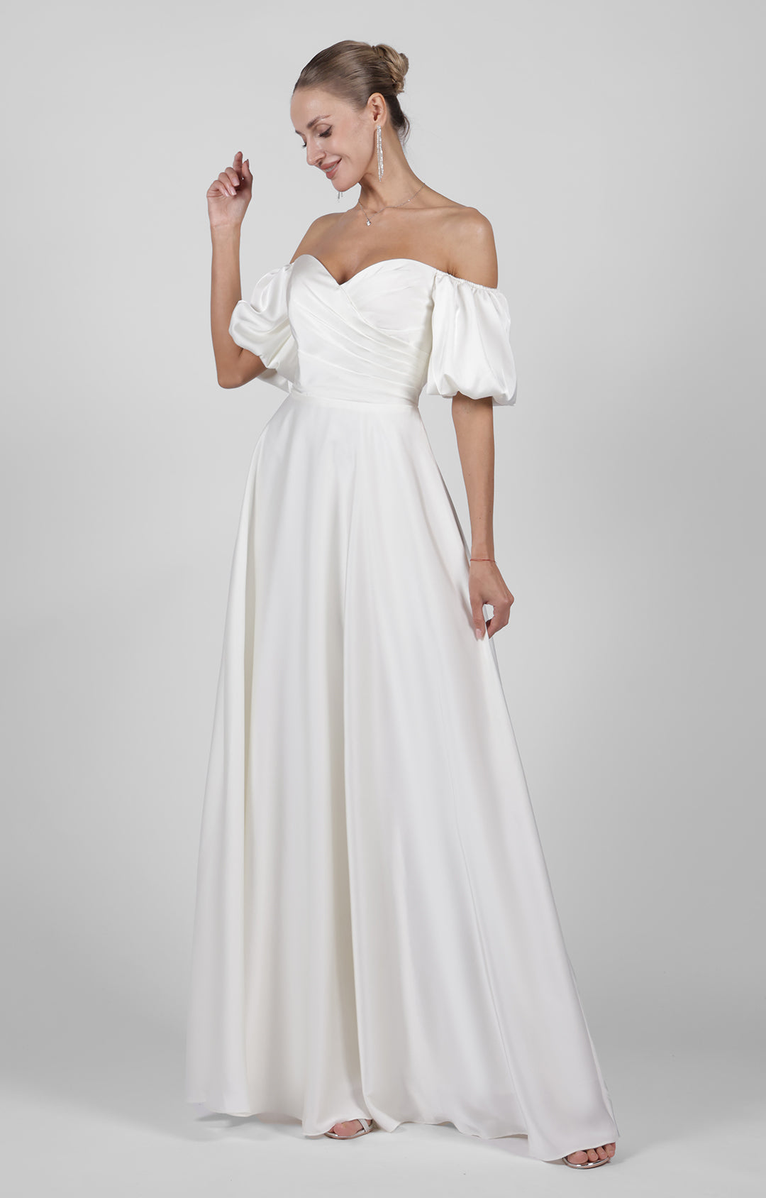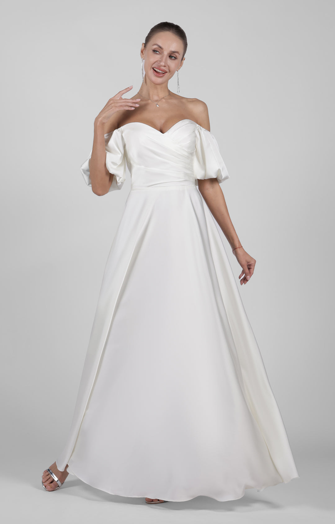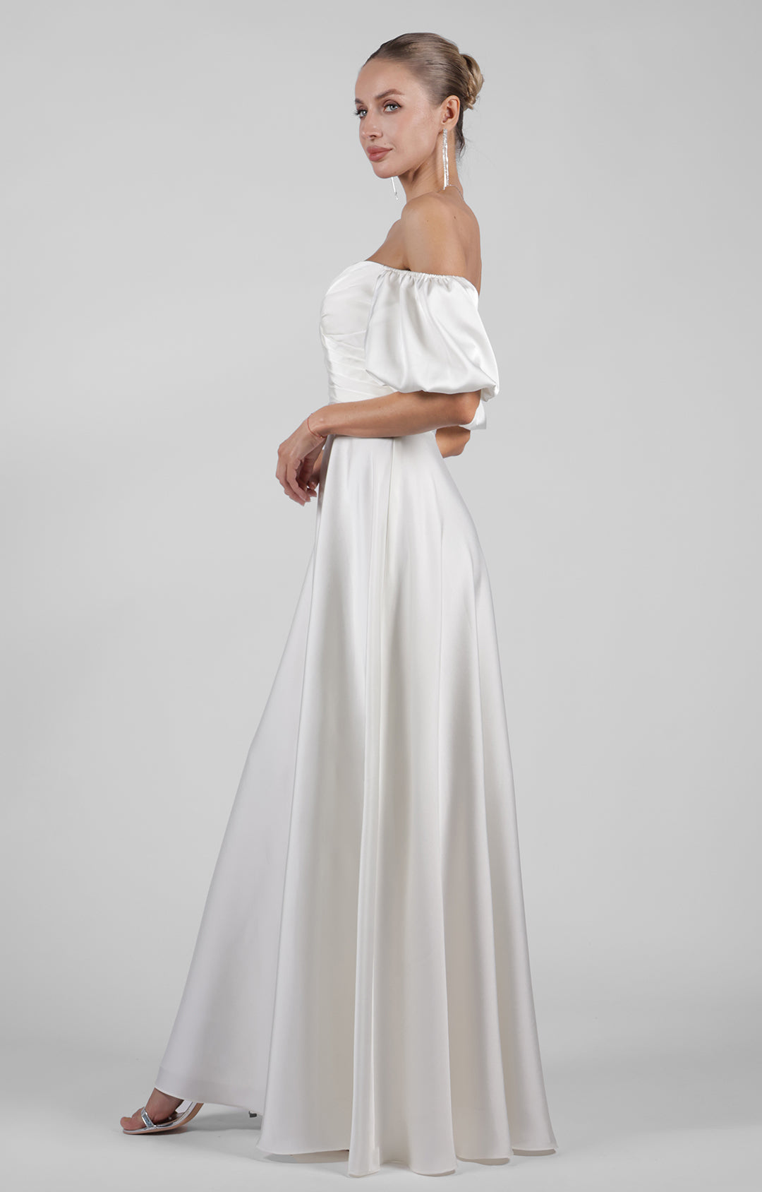 Off-Shoulder Puffy Sleeve Bridesmaid Maxi Dress