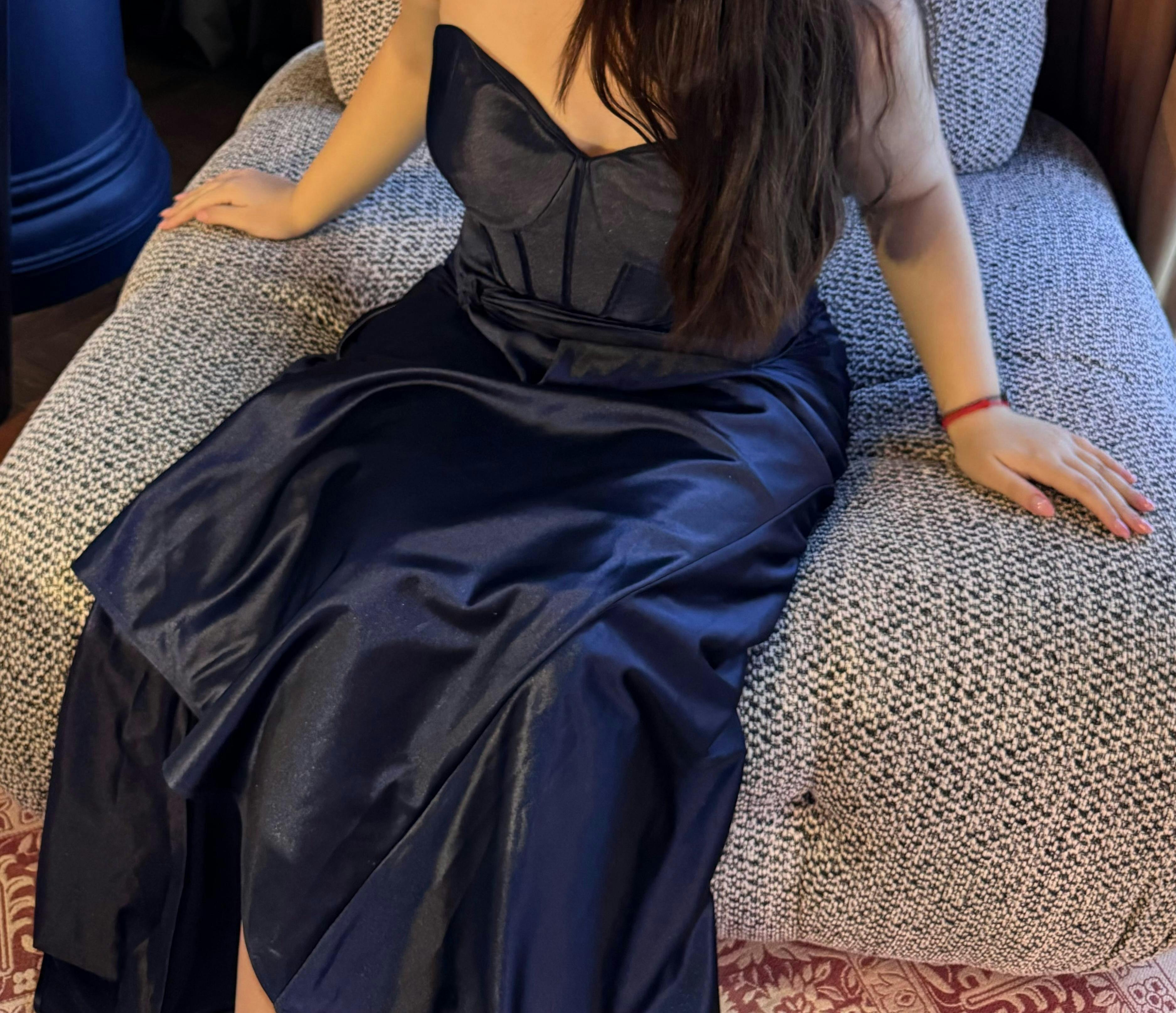 Strapless Corset Gathered Waist High Split Trailing Dress