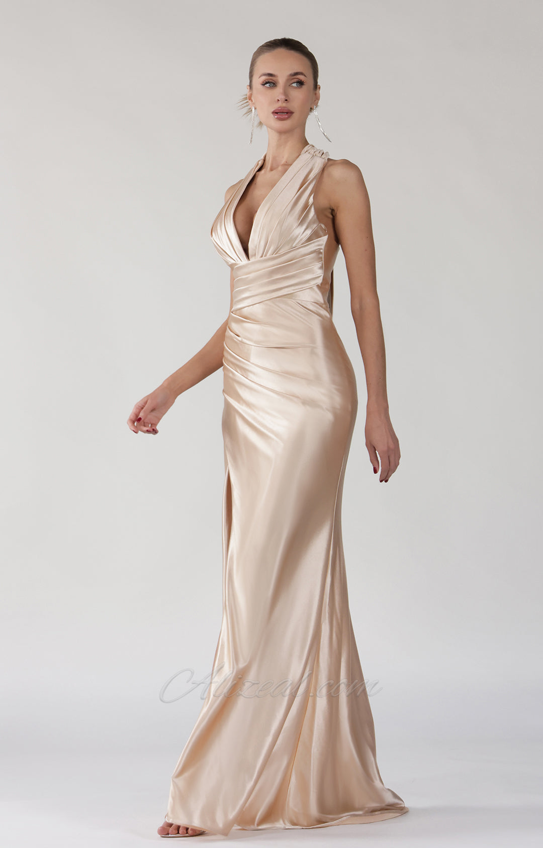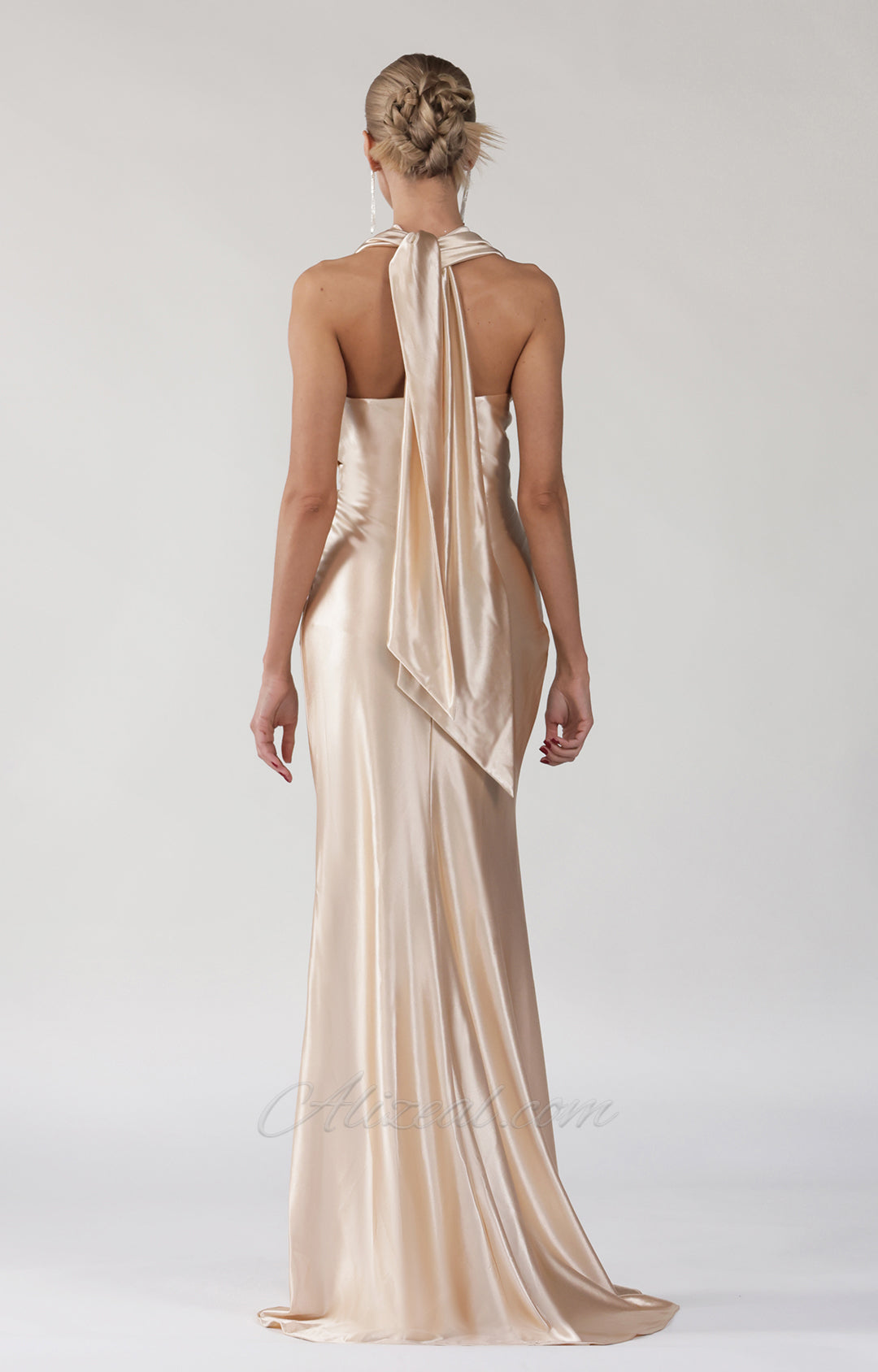 V-Neck Halter Tie Sweep Train Evening Dress