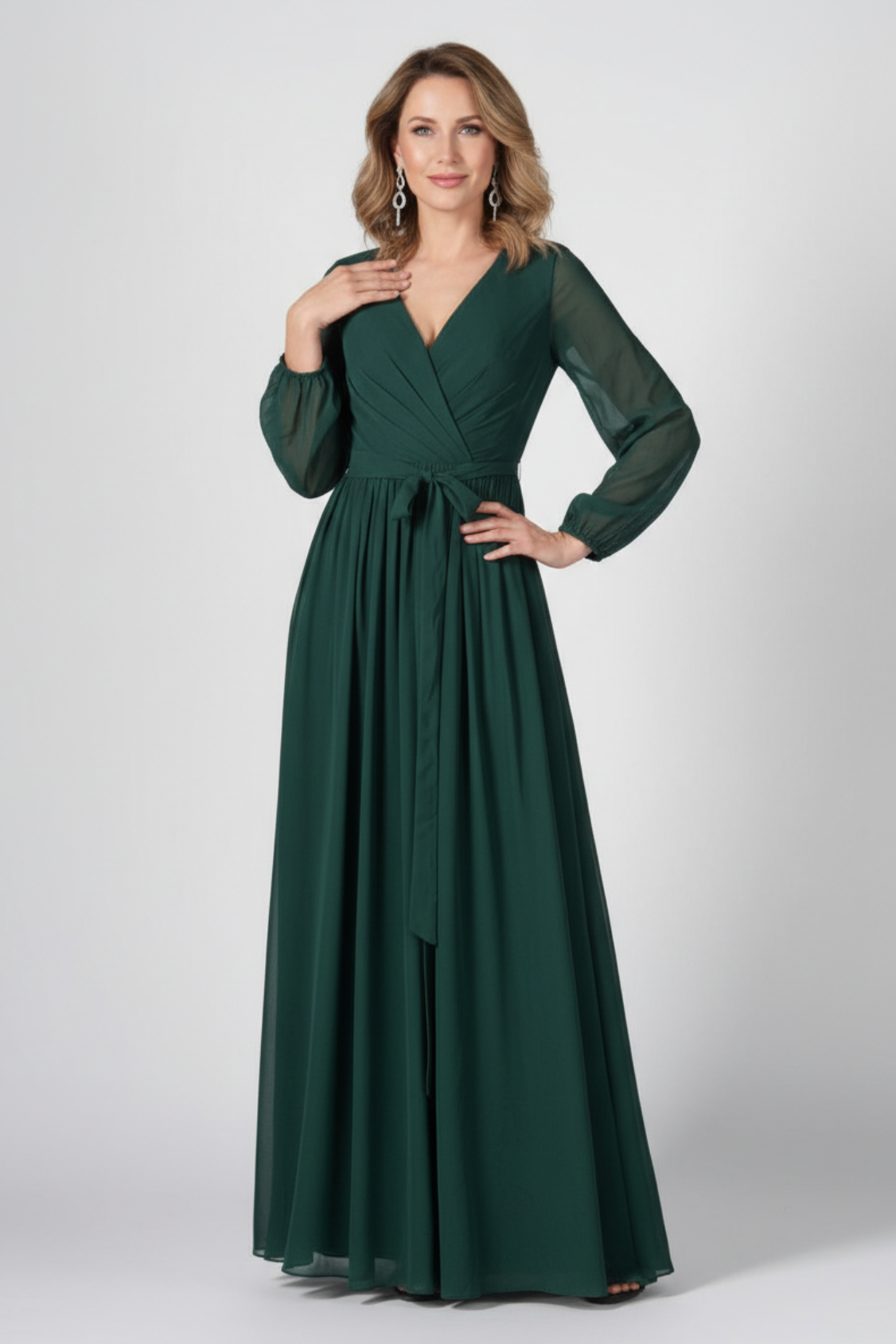 8 reviewsRuched V-Neck Long Sleeve Split Maxi Dresses with Tie