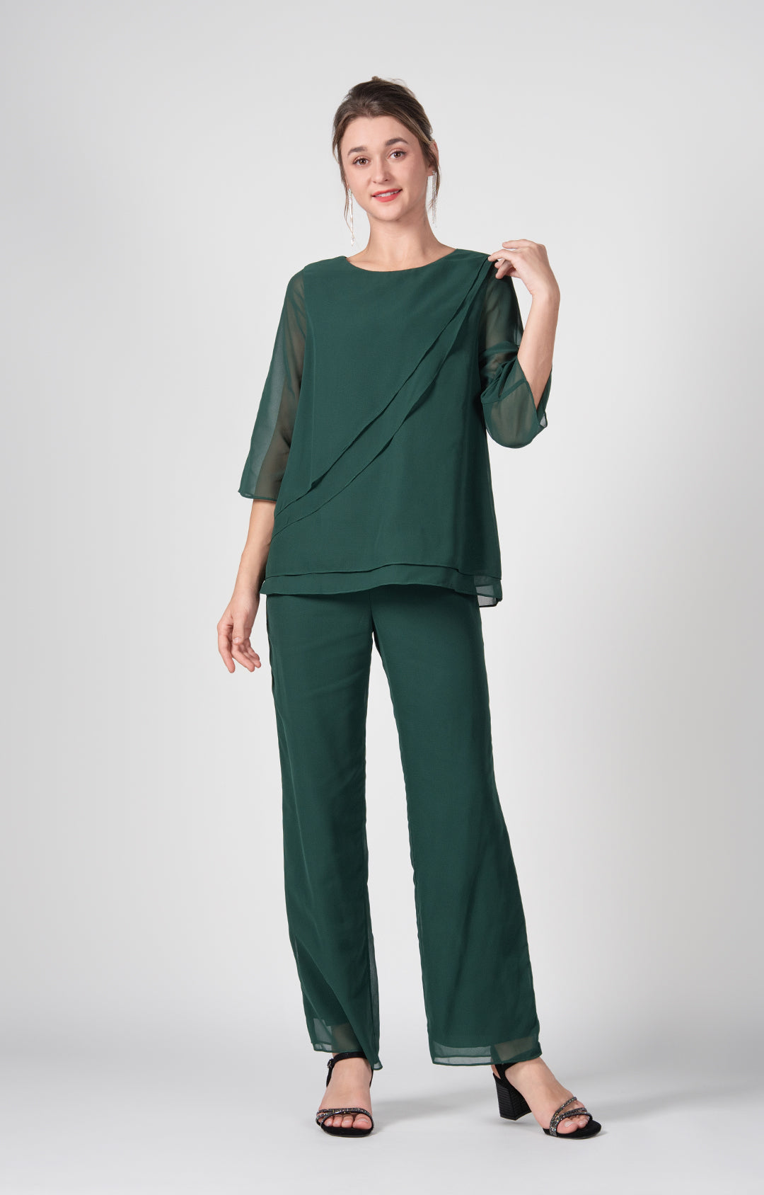 2-Piece Mother of the Bride Sheer Sleeve Pant Suits