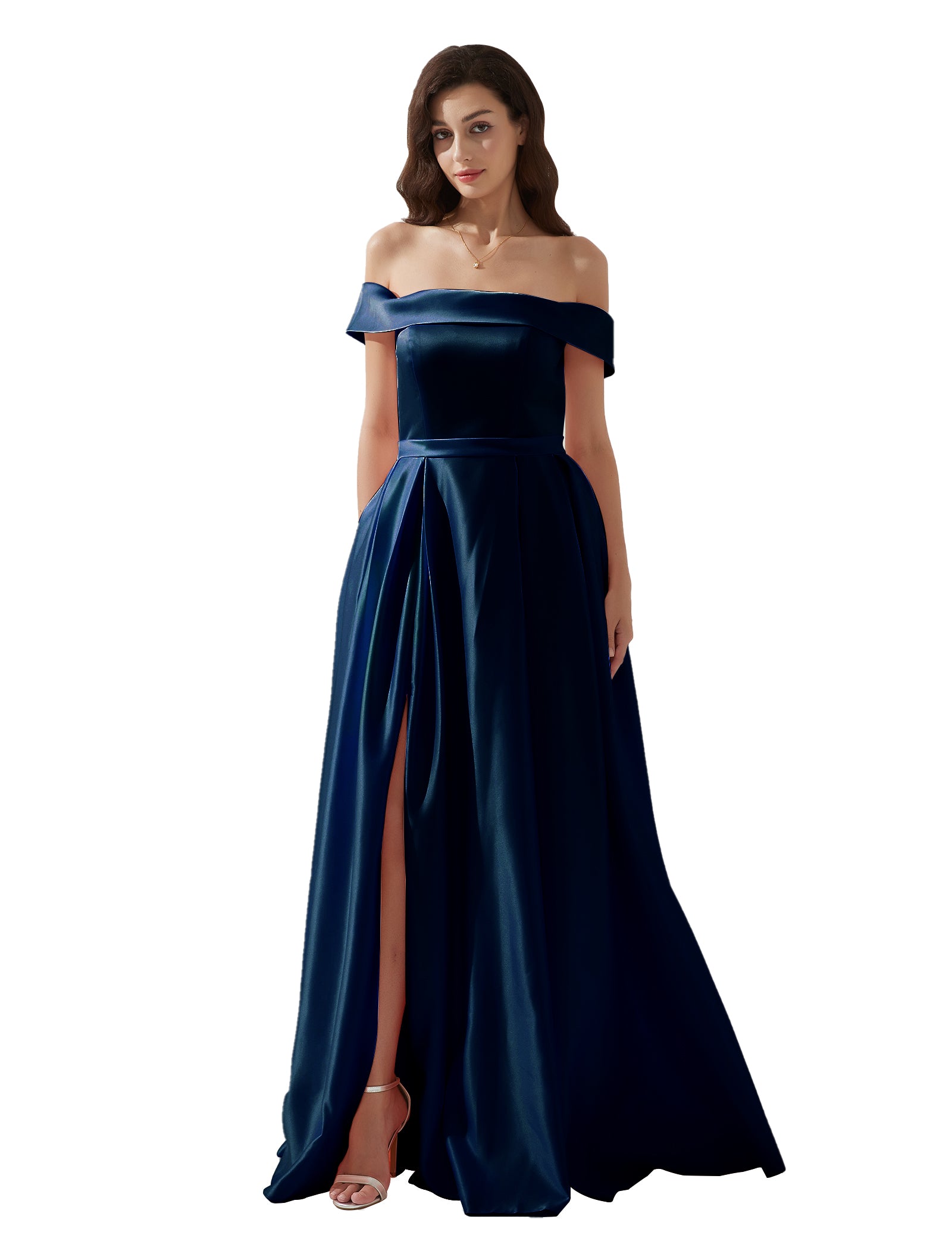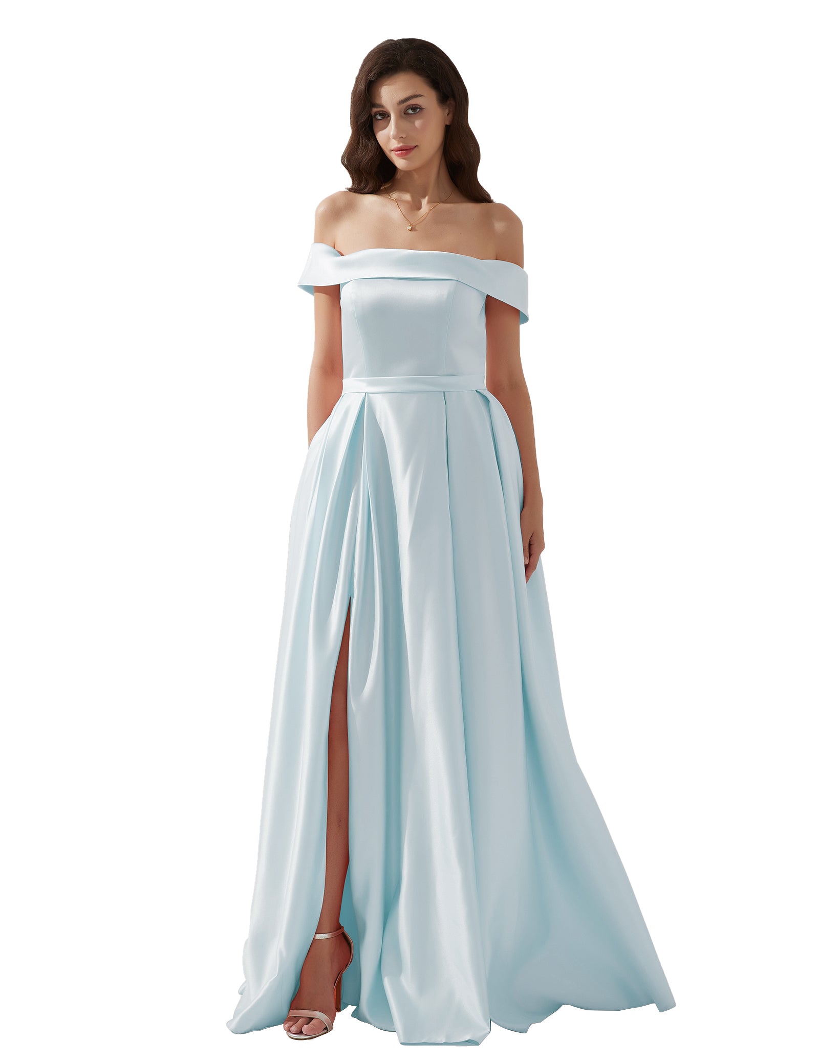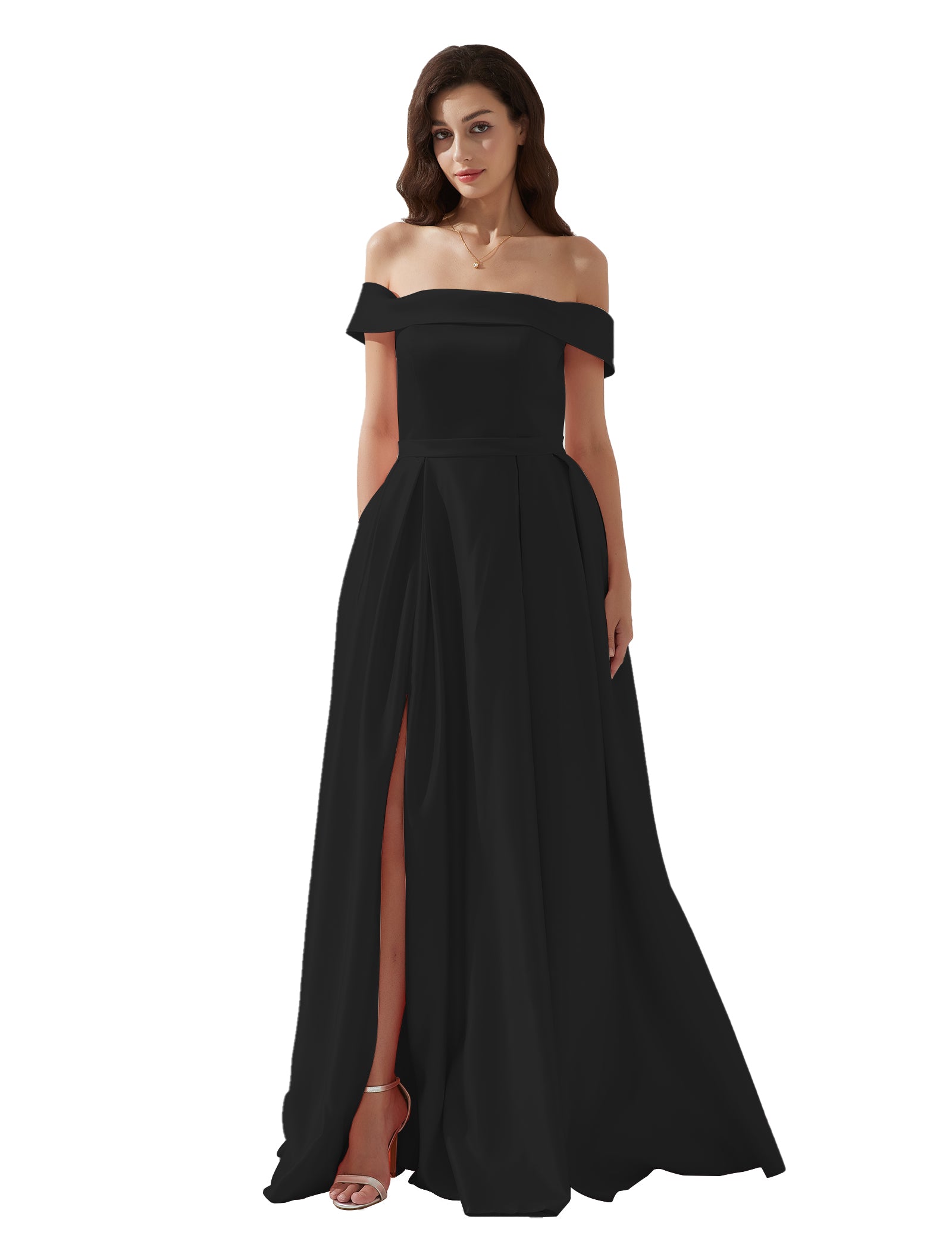 Off-shoulder Back Zipper Floor-length Evening Dress with Pockets