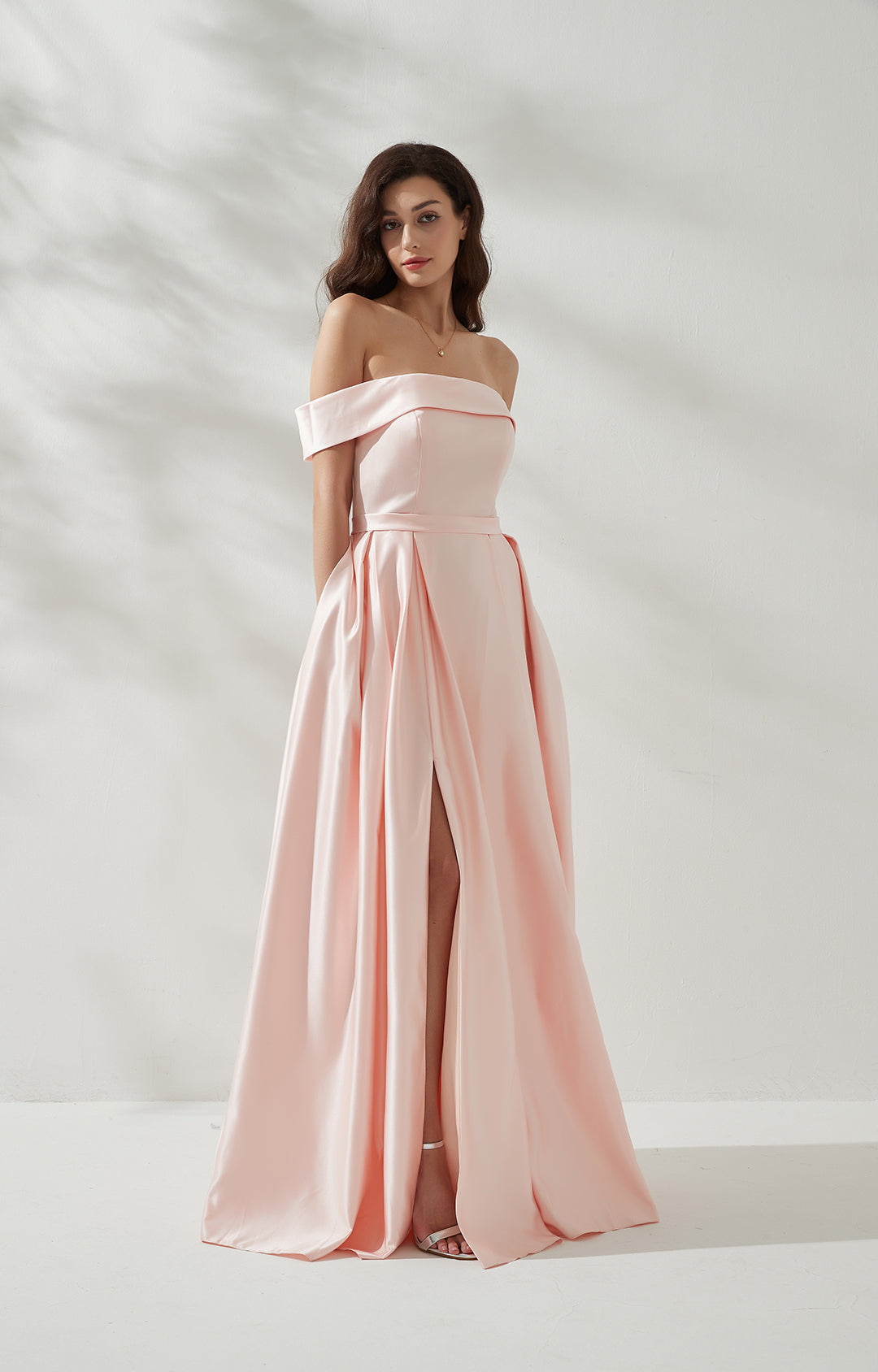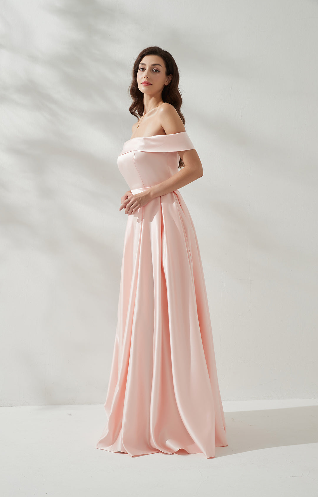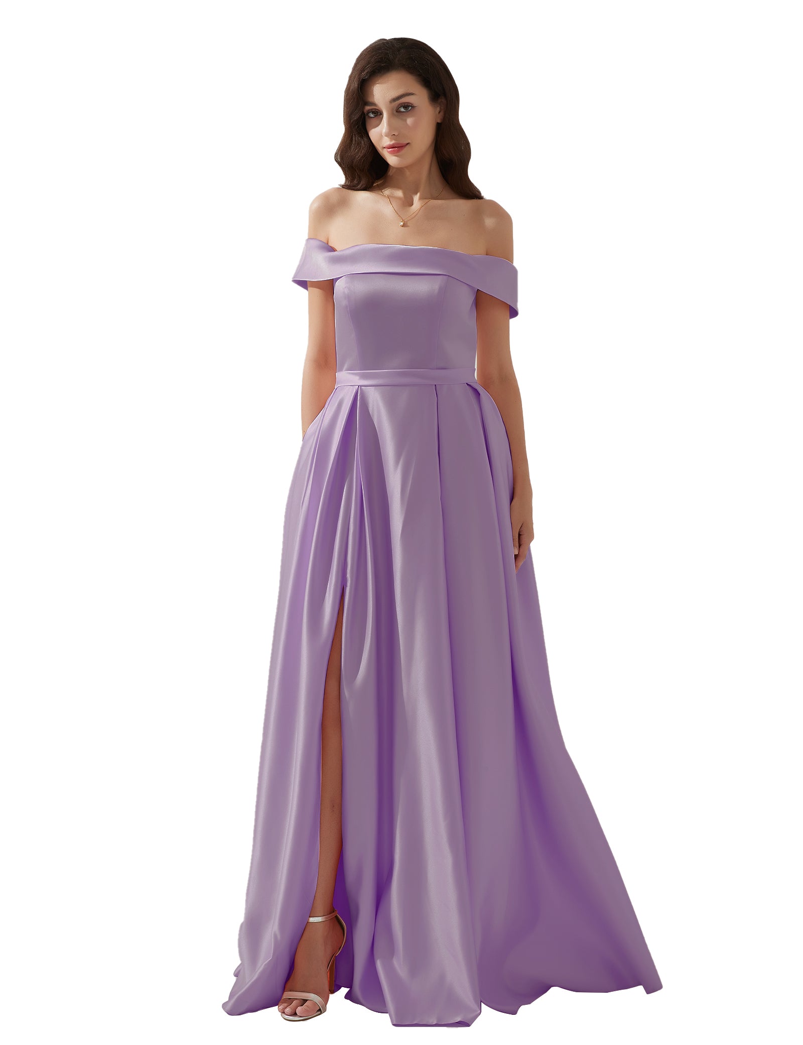 Off-shoulder Back Zipper Floor-length Evening Dress with Pockets