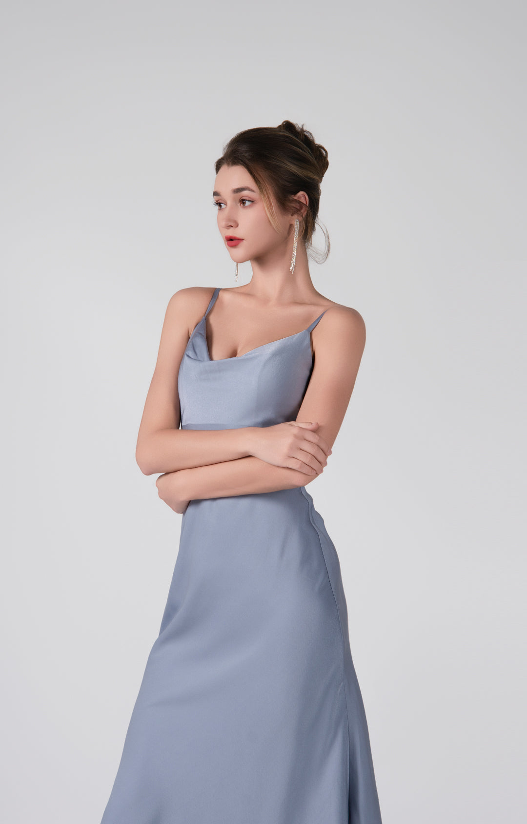 This matte acetate dress is perfect for cocktail parties, evening galas, formal dinners, or any celebration where you want to exude effortless elegance. Its timeless design ensures that you'll make a lasting impression wherever you go.