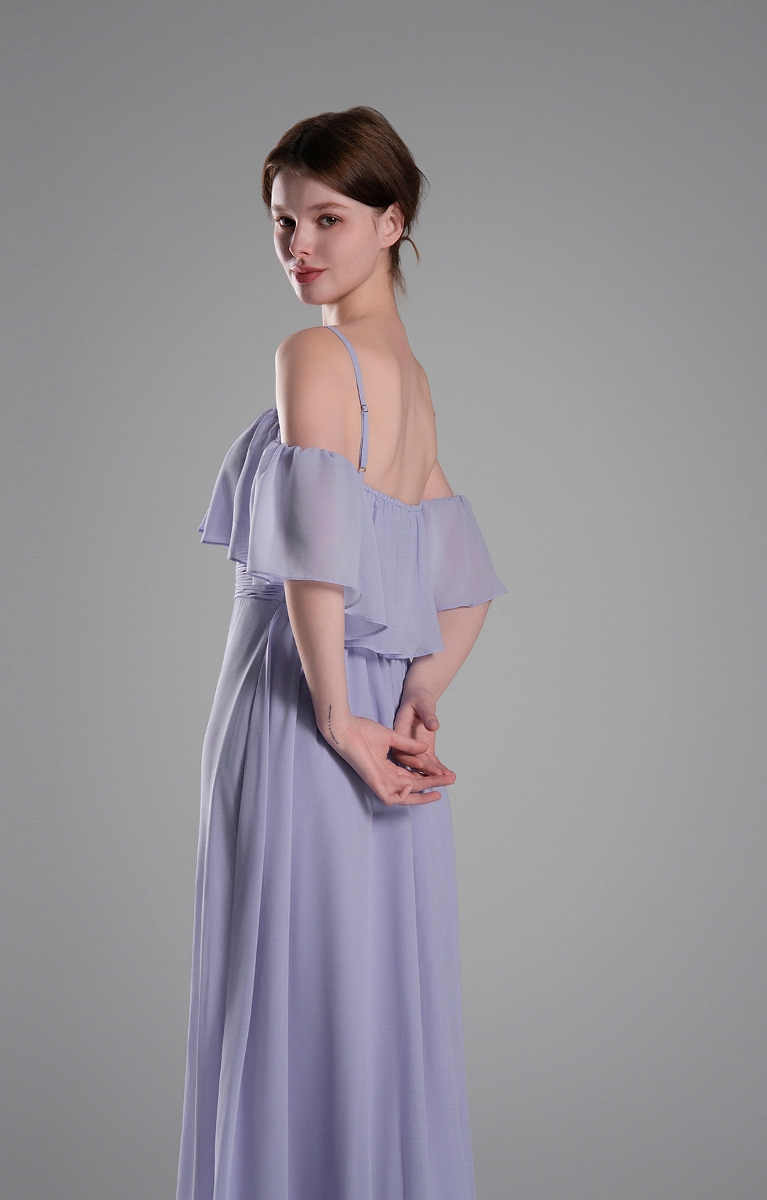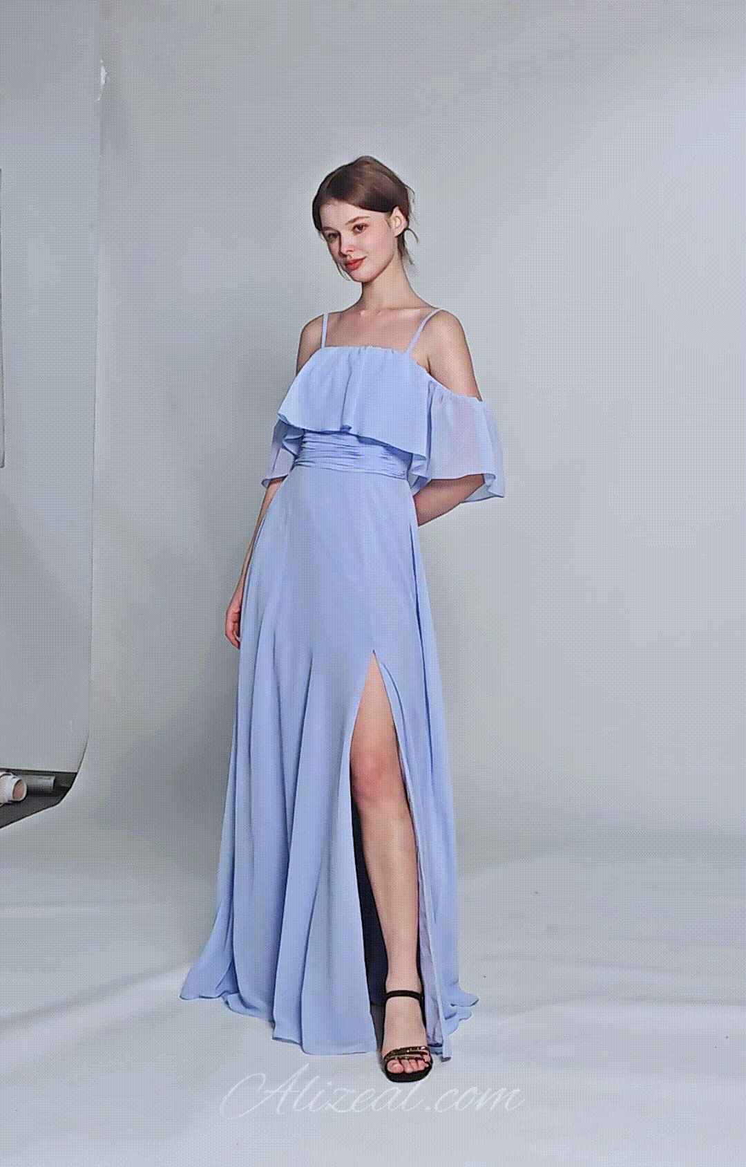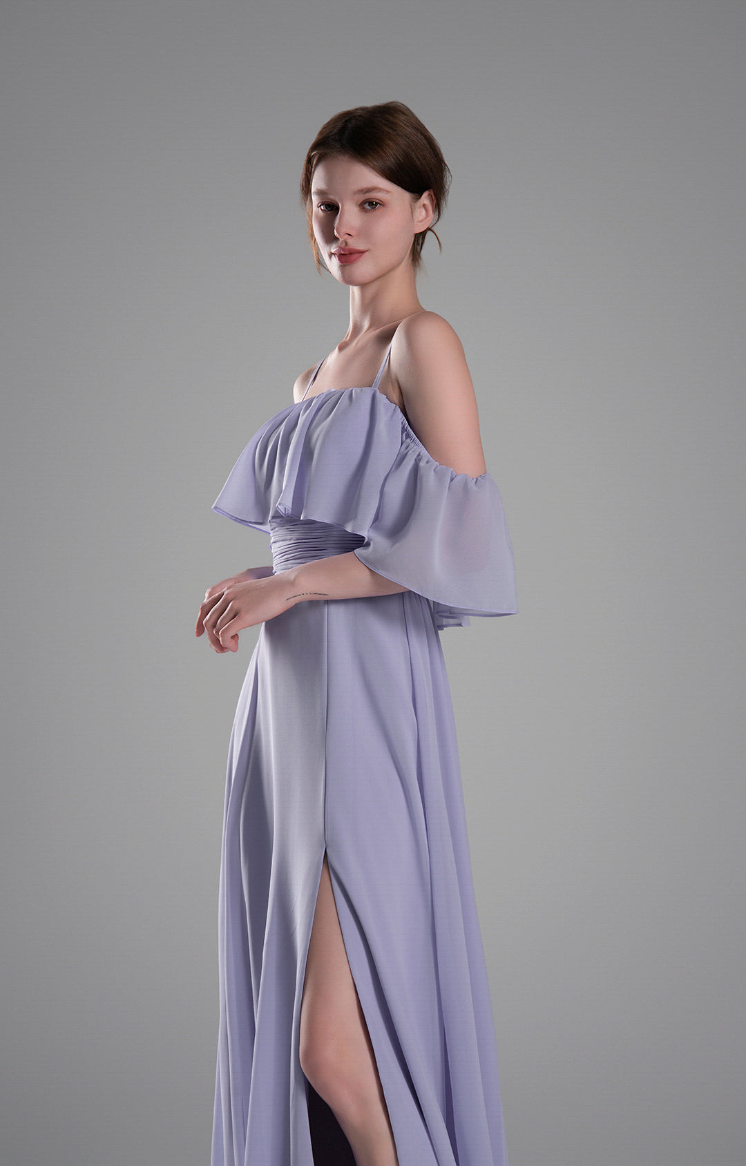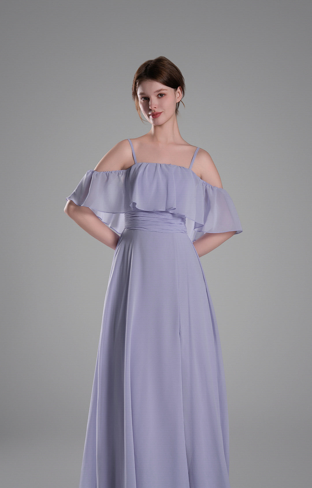 Perfect for summer parties, evening events, and beach weddings. This chiffon dress exudes lightness and charm, ideal for those looking to combine elegance with a casual flair.