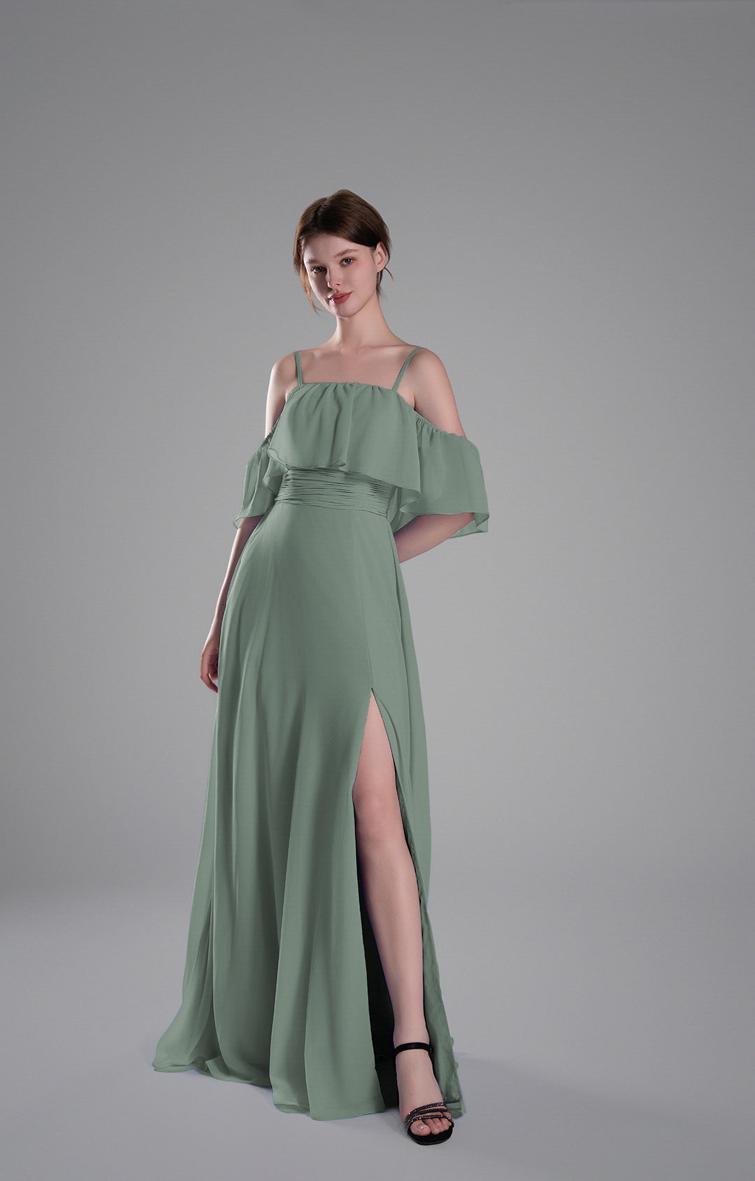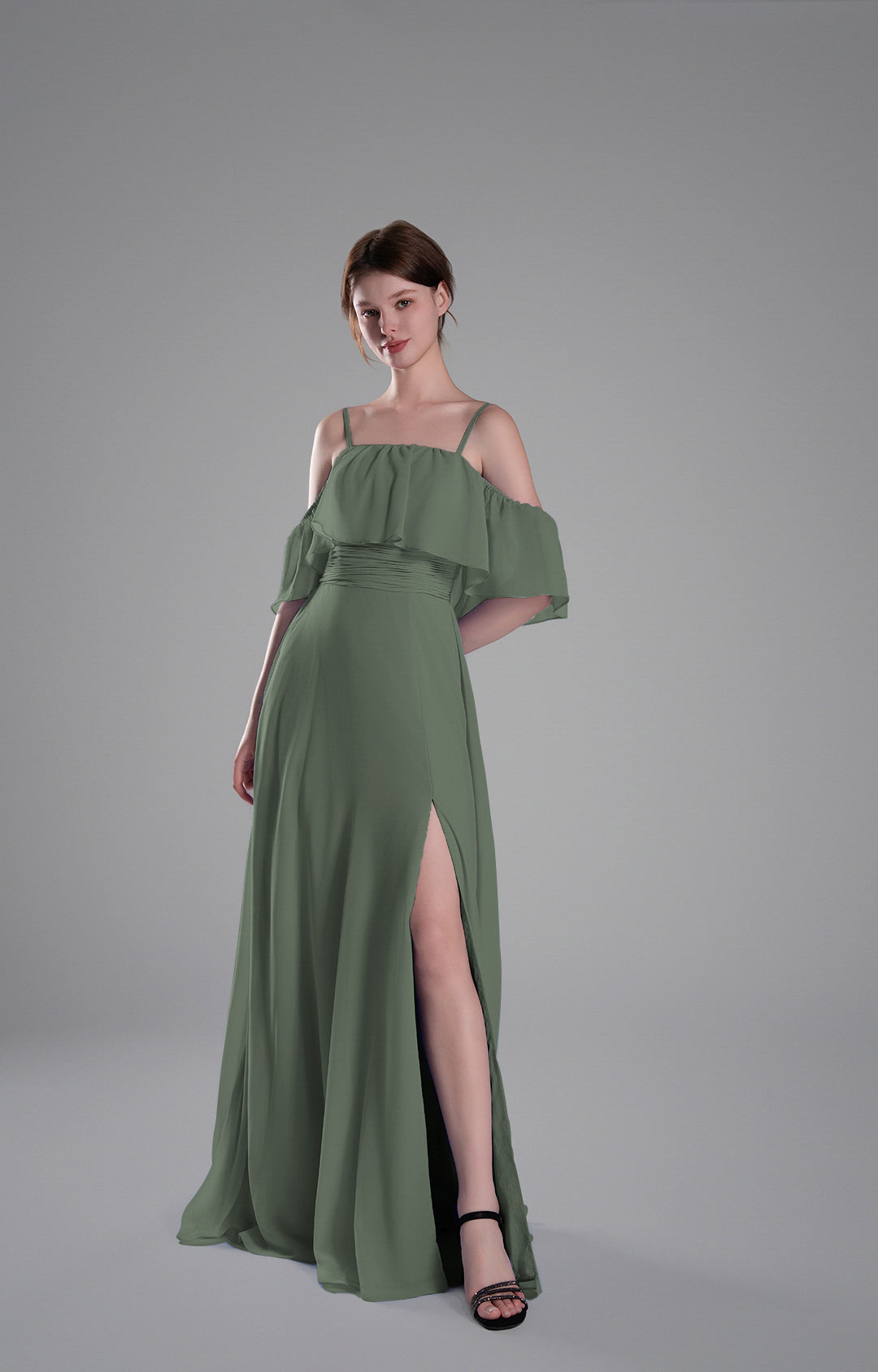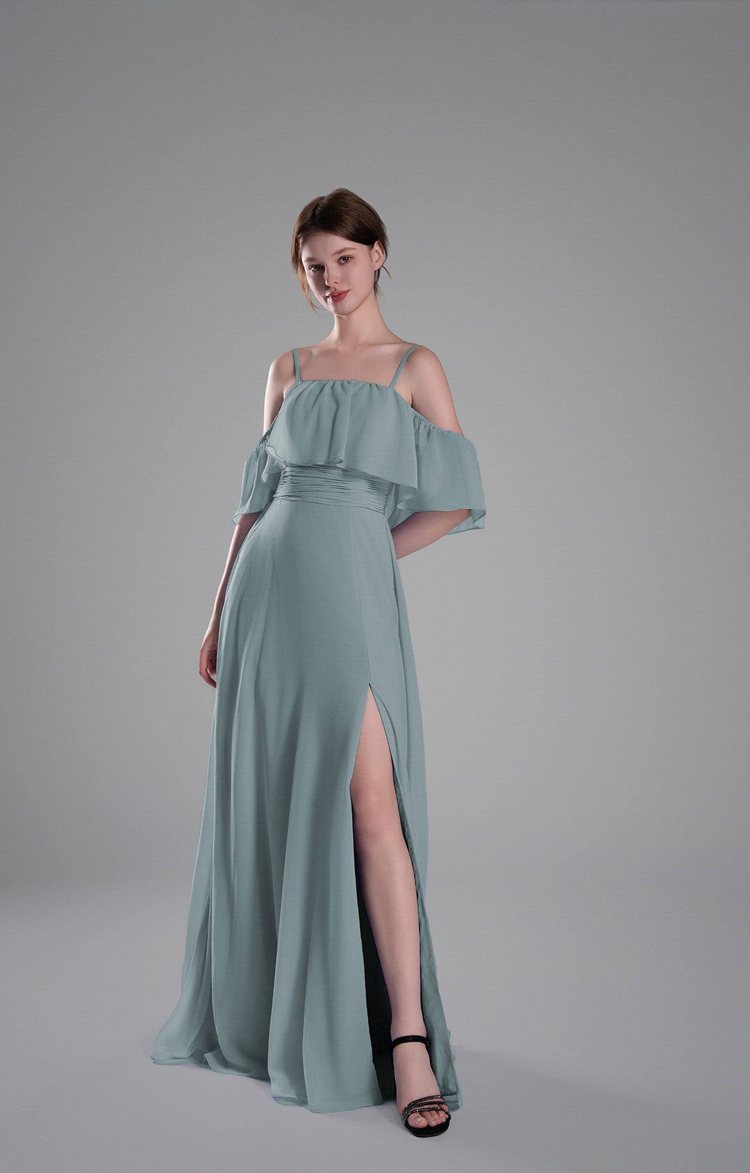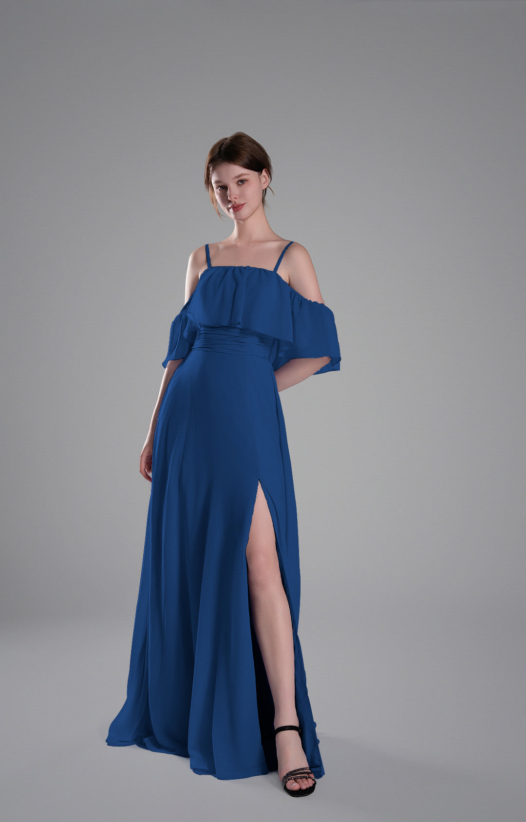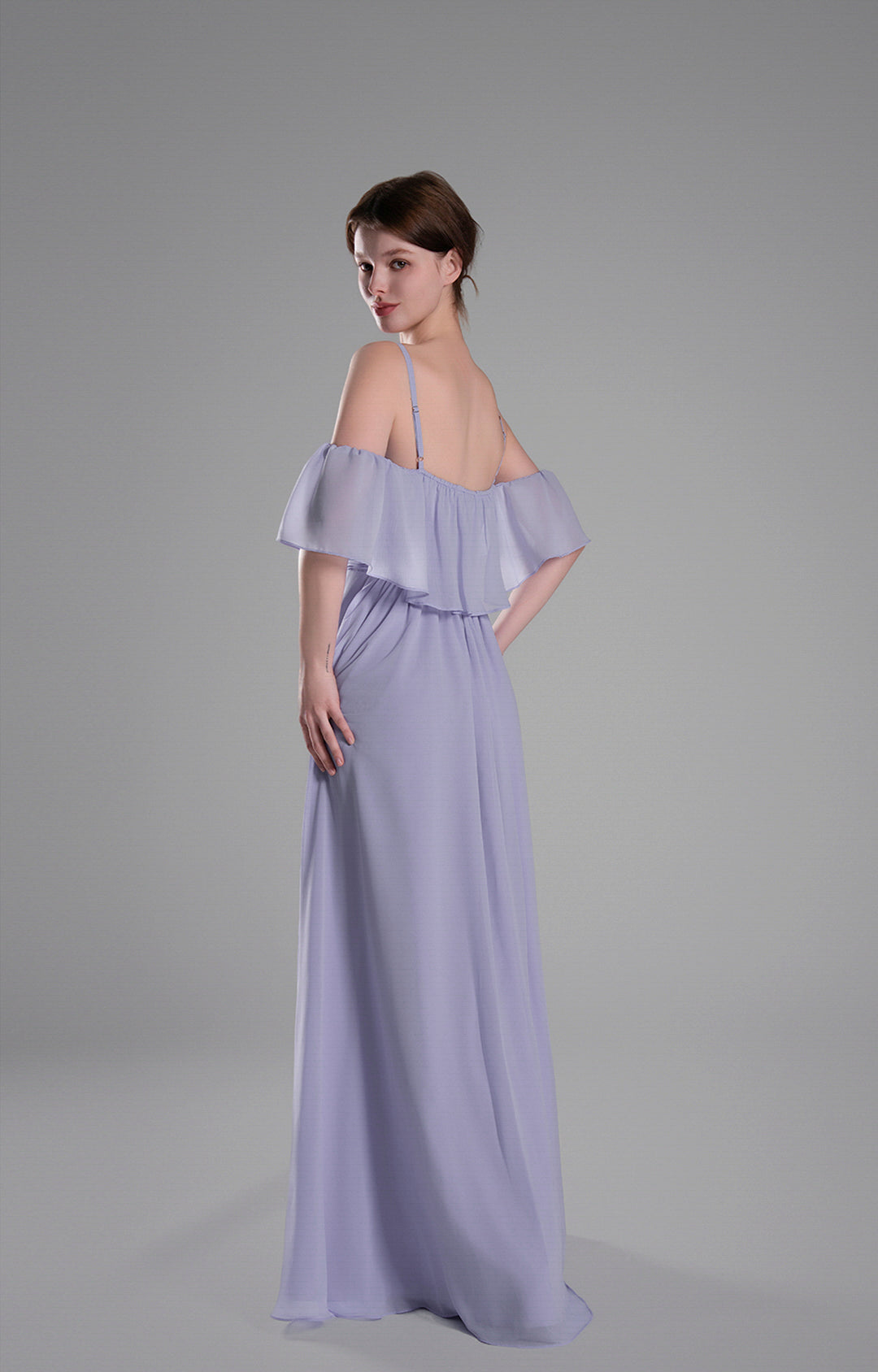 Perfect for summer parties, evening events, and beach weddings. This chiffon dress exudes lightness and charm, ideal for those looking to combine elegance with a casual flair.