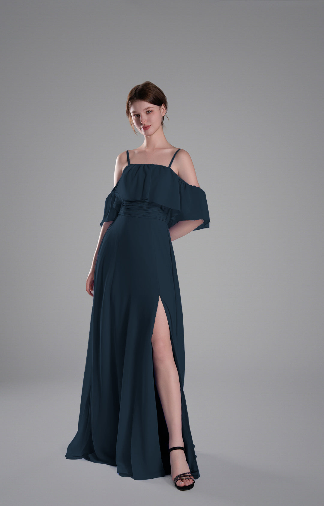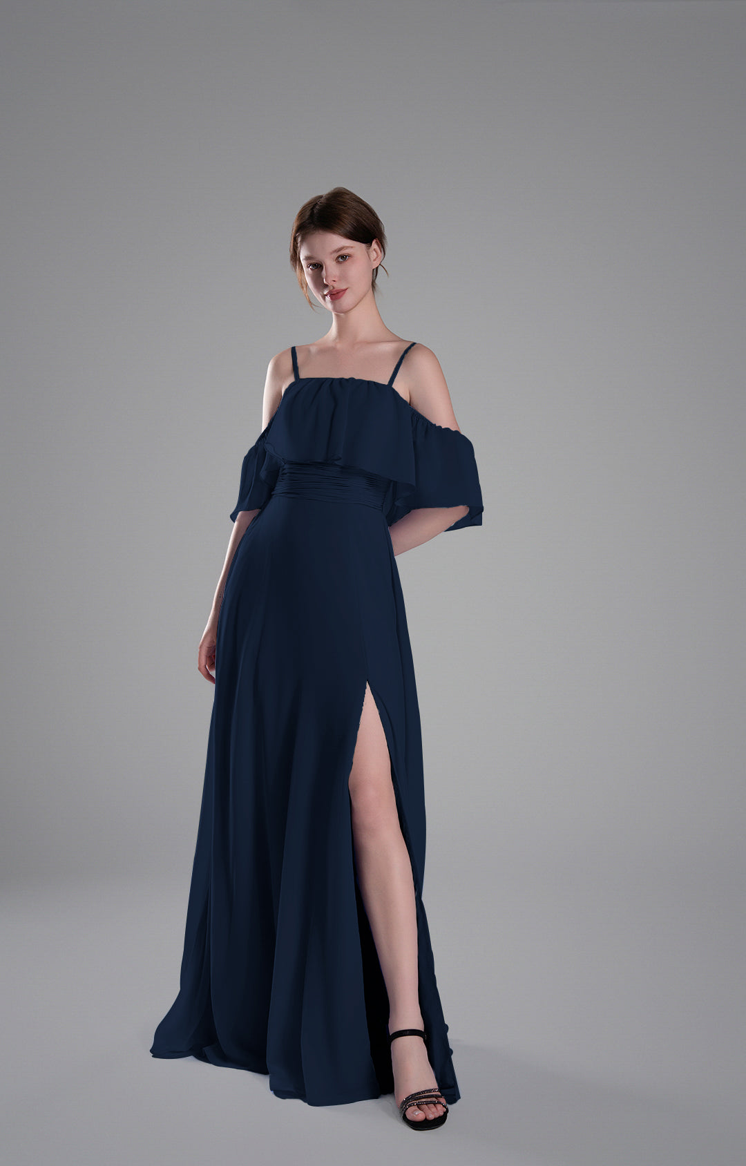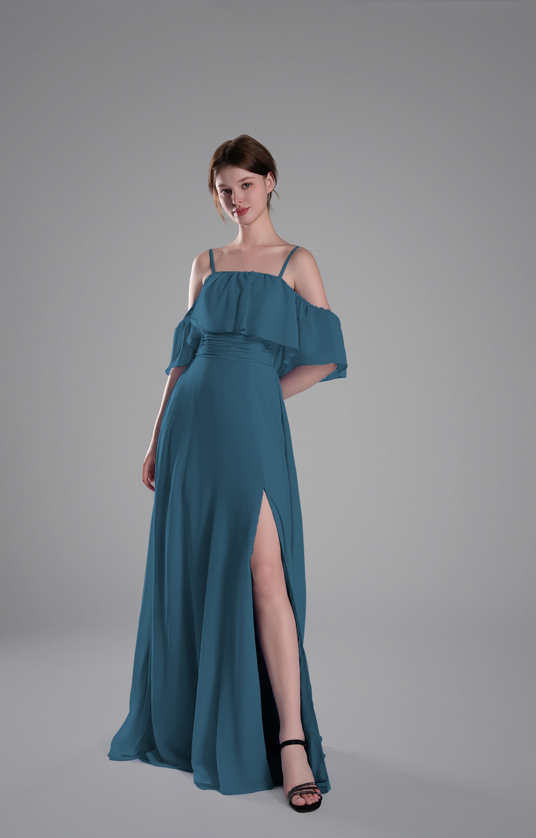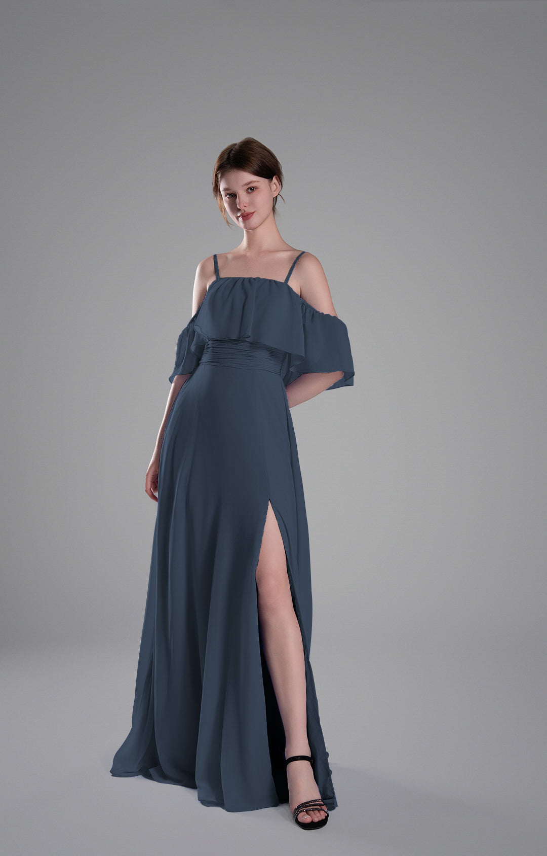Perfect for summer parties, evening events, and beach weddings. This chiffon dress exudes lightness and charm, ideal for those looking to combine elegance with a casual flair.