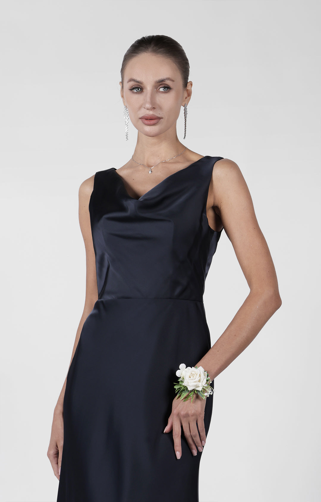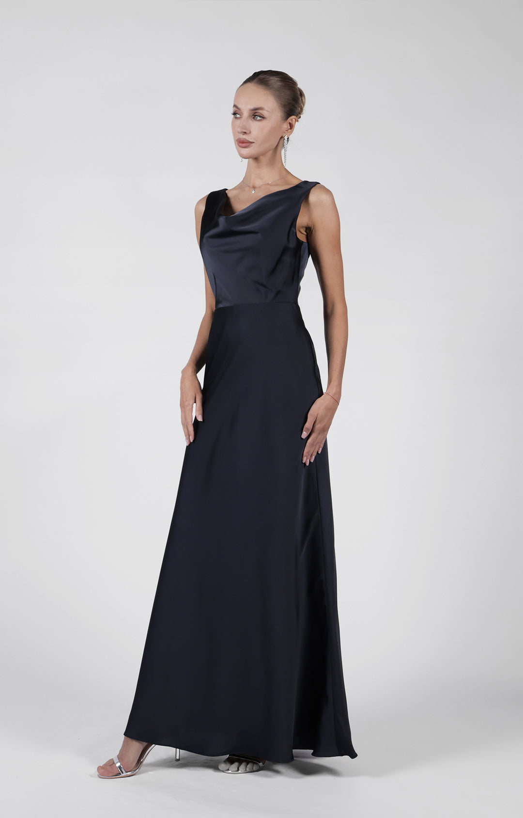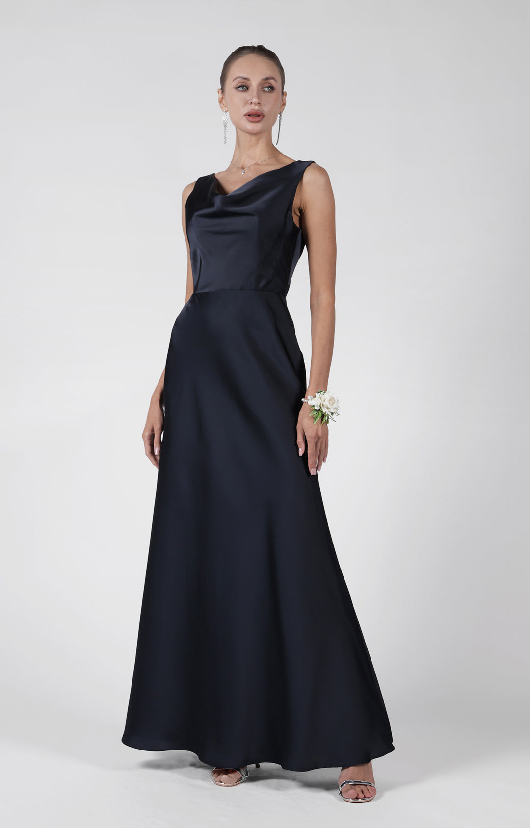 Cowl Neck Fluted Hem Bridesmaid Maxi Dress