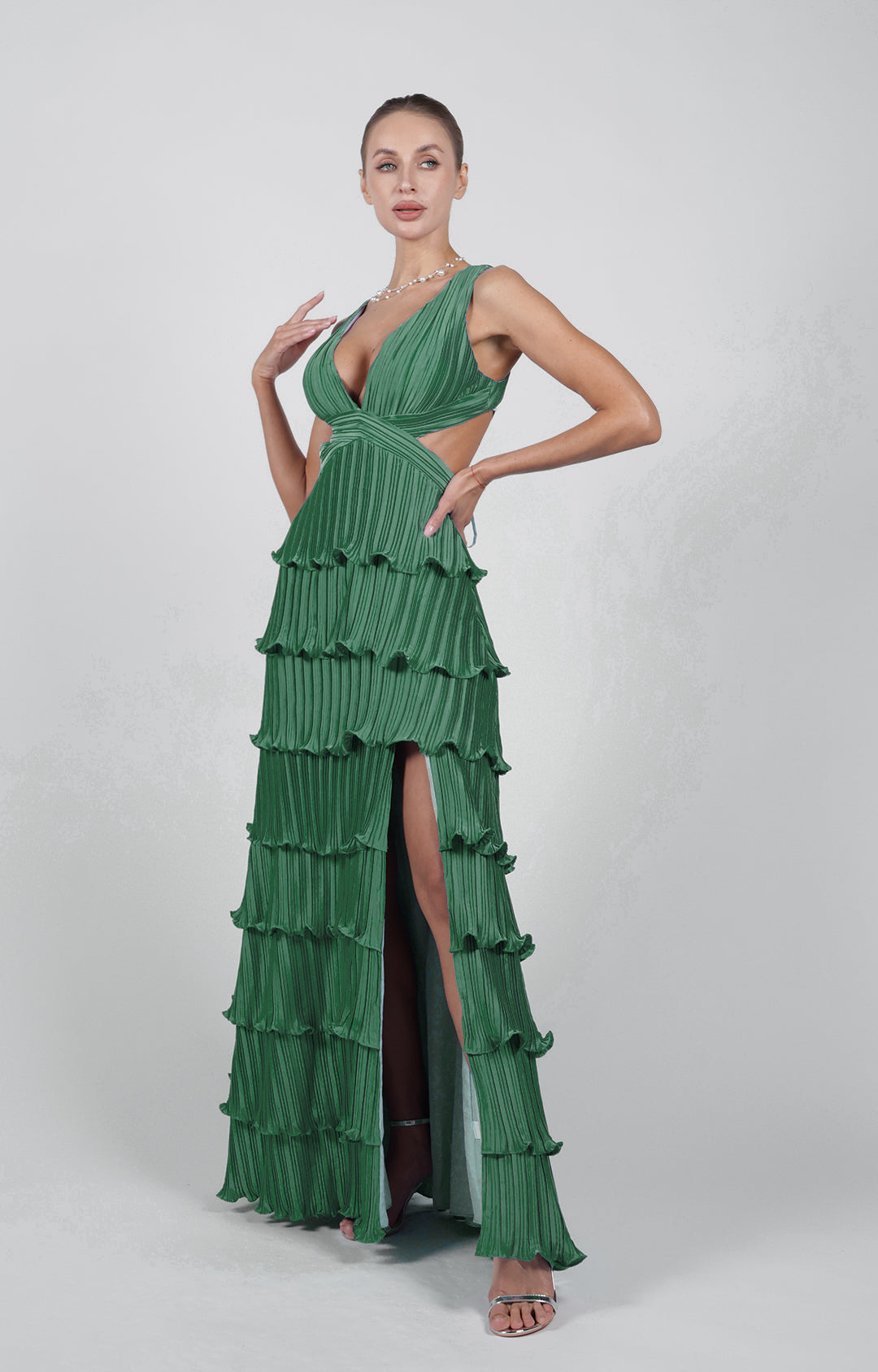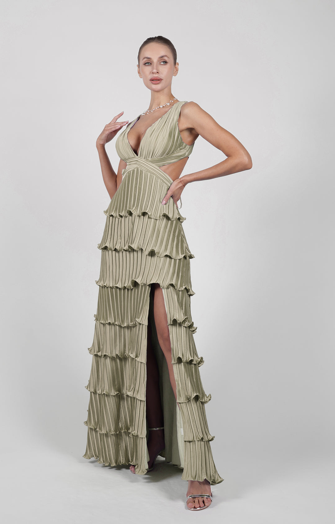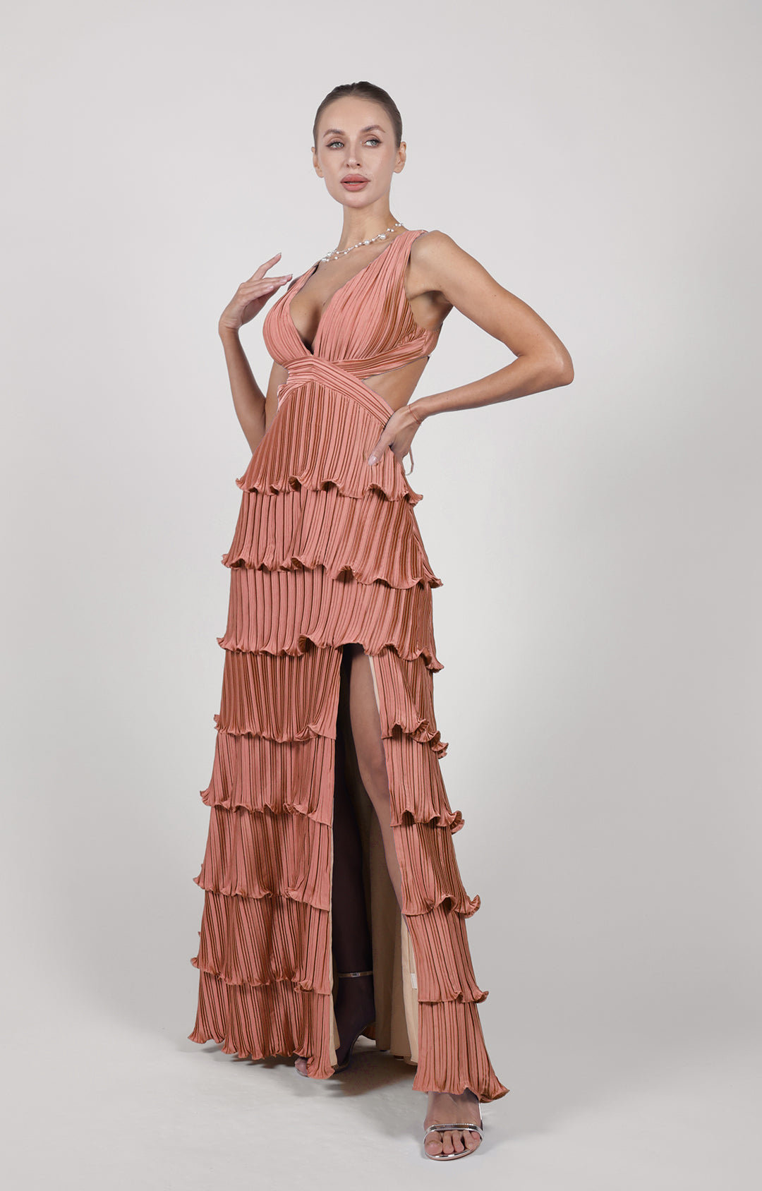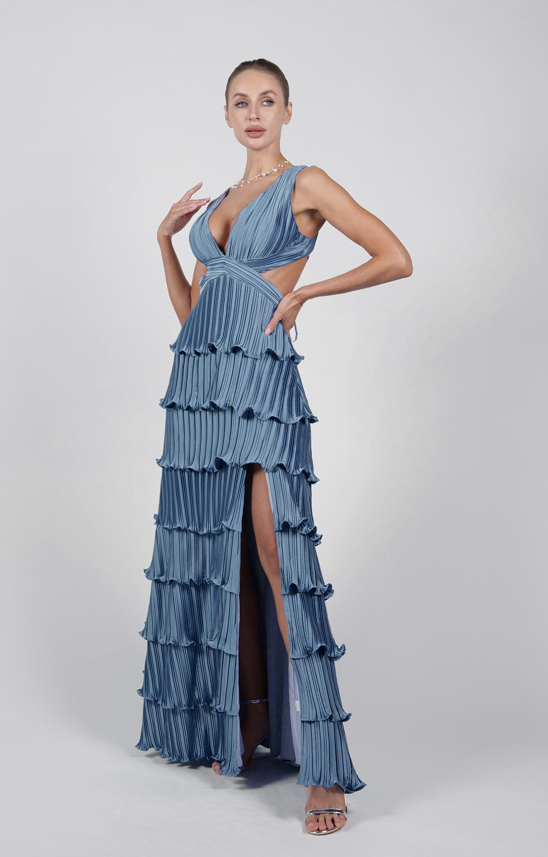V-Neck Wide Straps Cutout Pleated Side Split Prom Dresses
