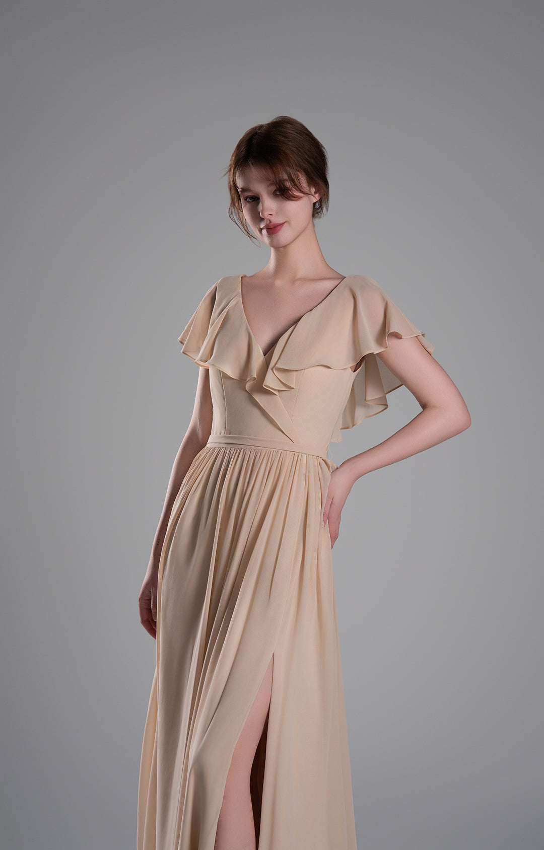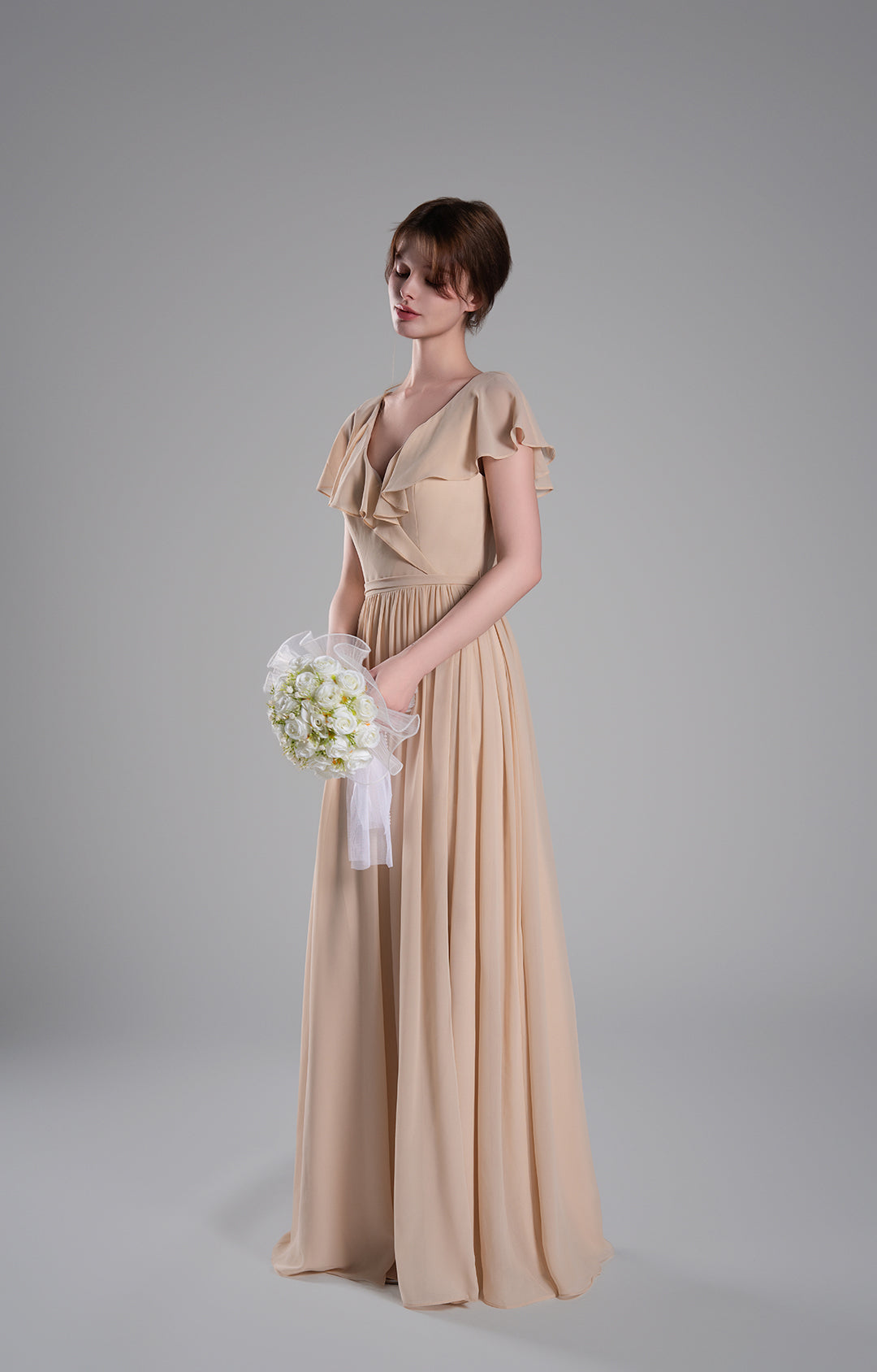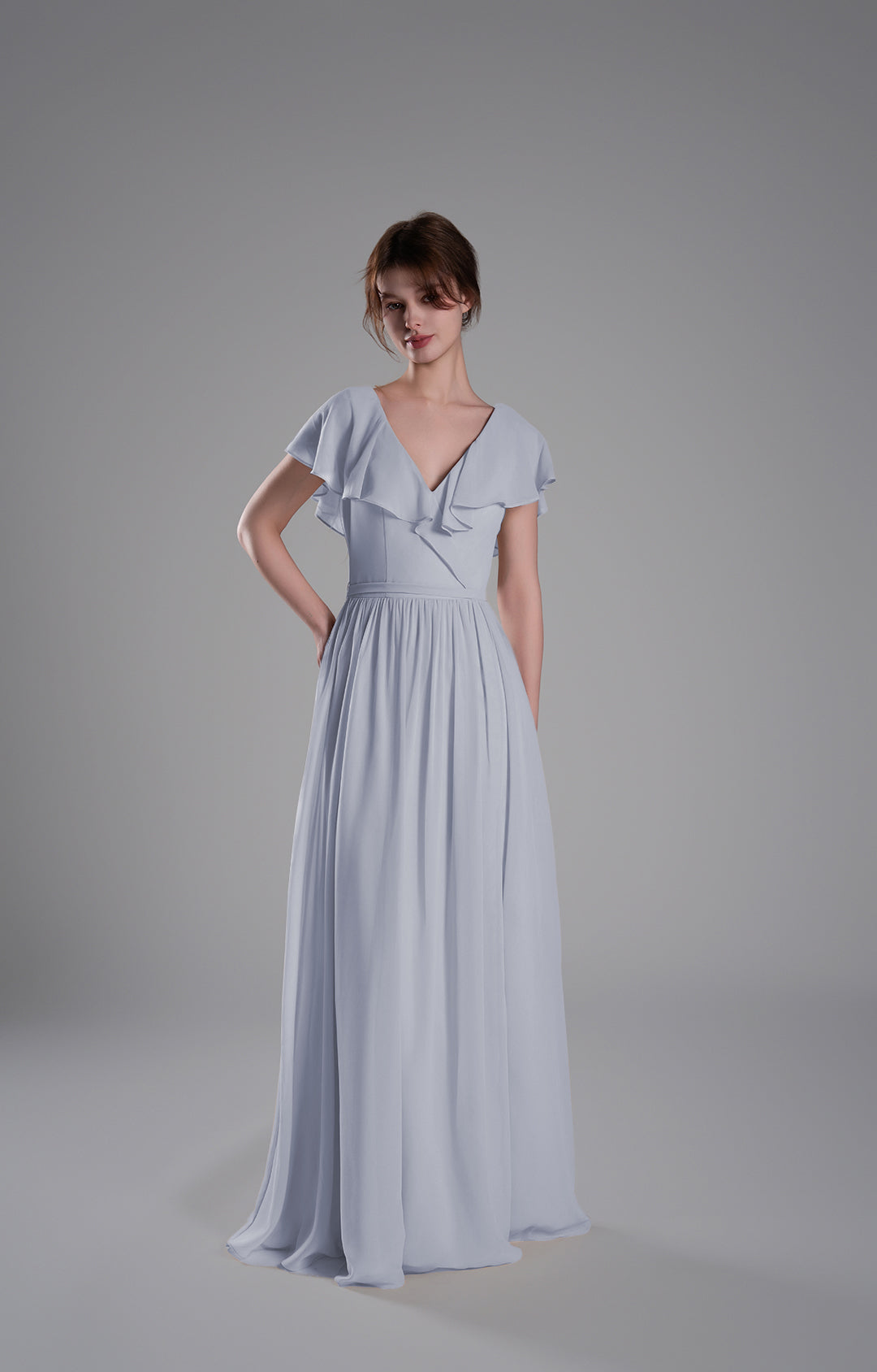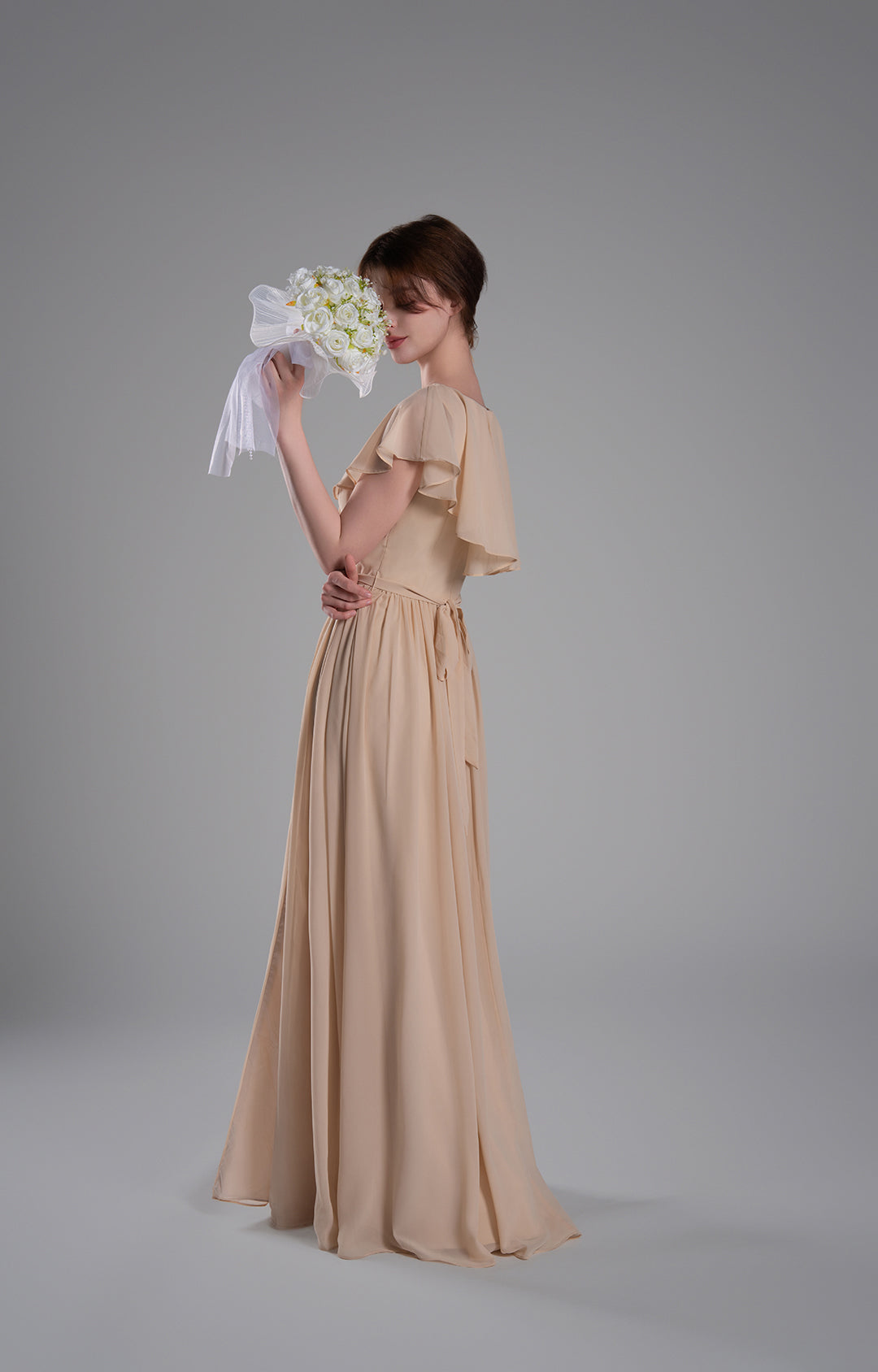 Ideal for bridesmaids, weddings, evening galas, formal dinners, proms, and garden parties, this chiffon gown radiates timeless sophistication and effortless charm. Whether you're walking down the aisle or attending a grand celebration, this dress ensures a stunning and memorable presence.