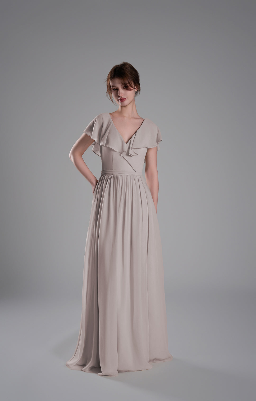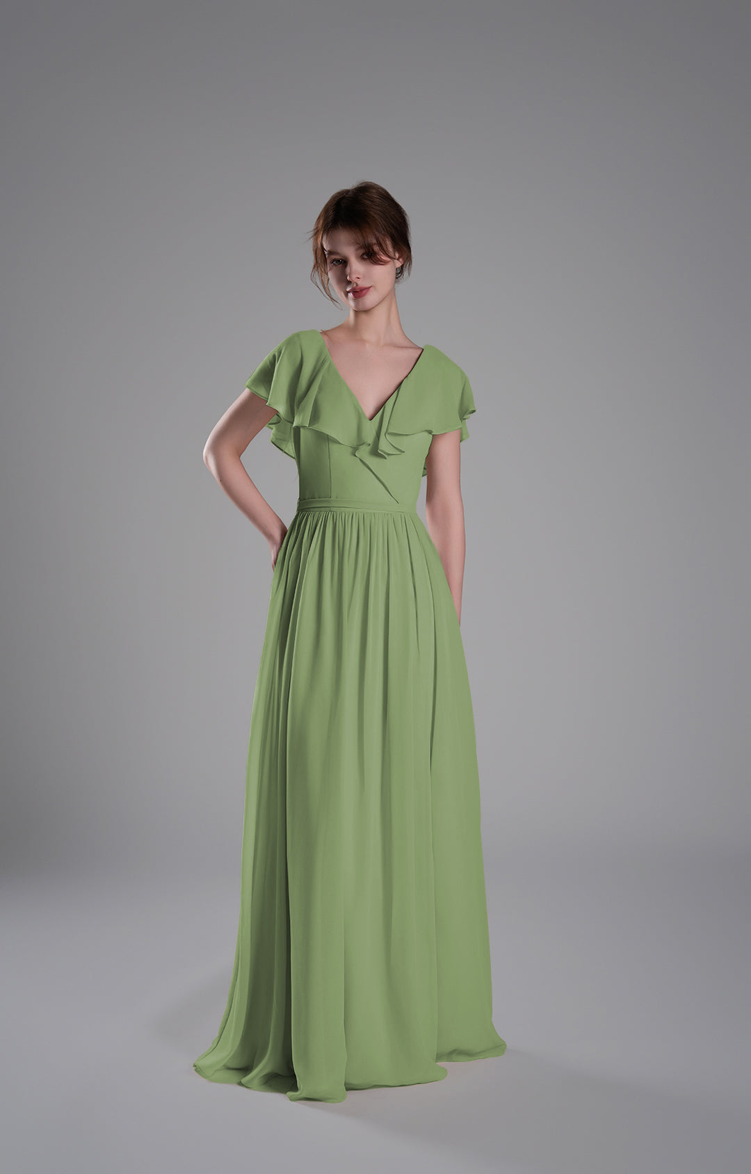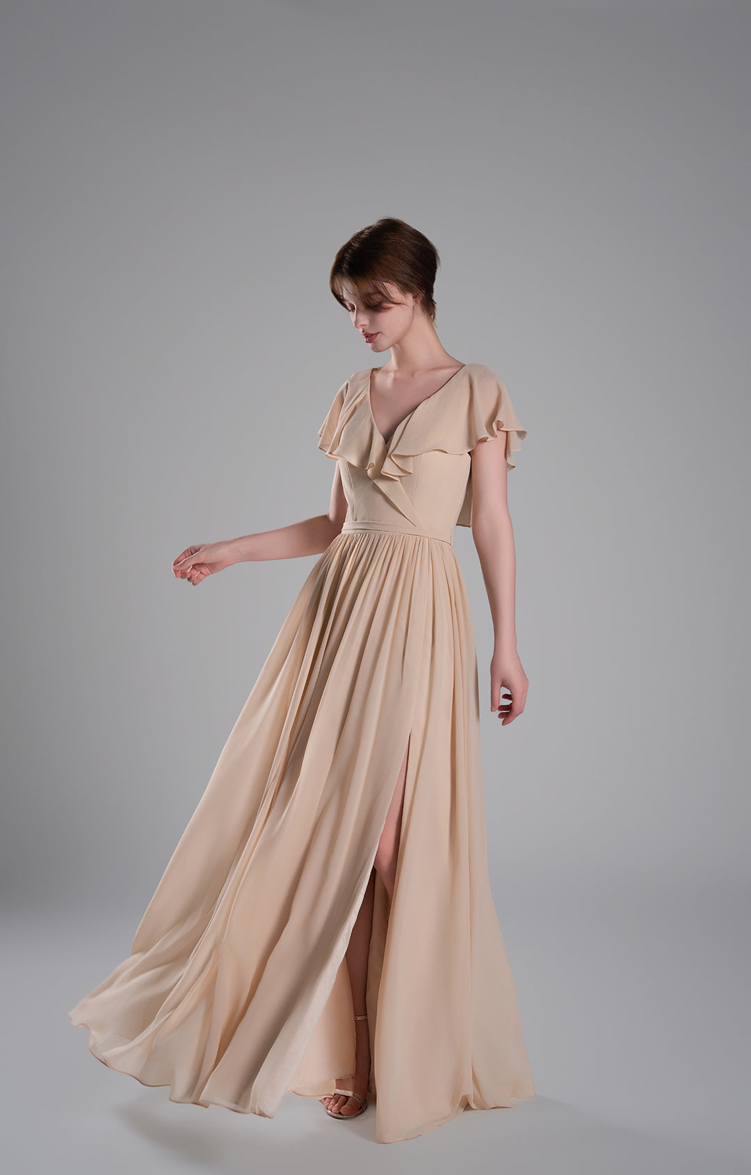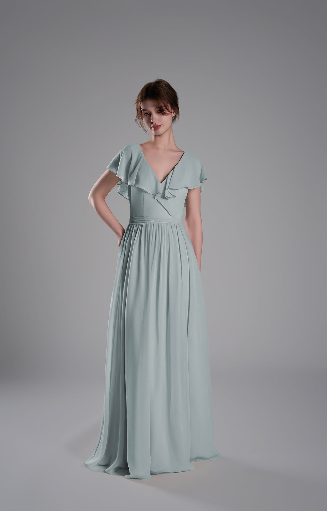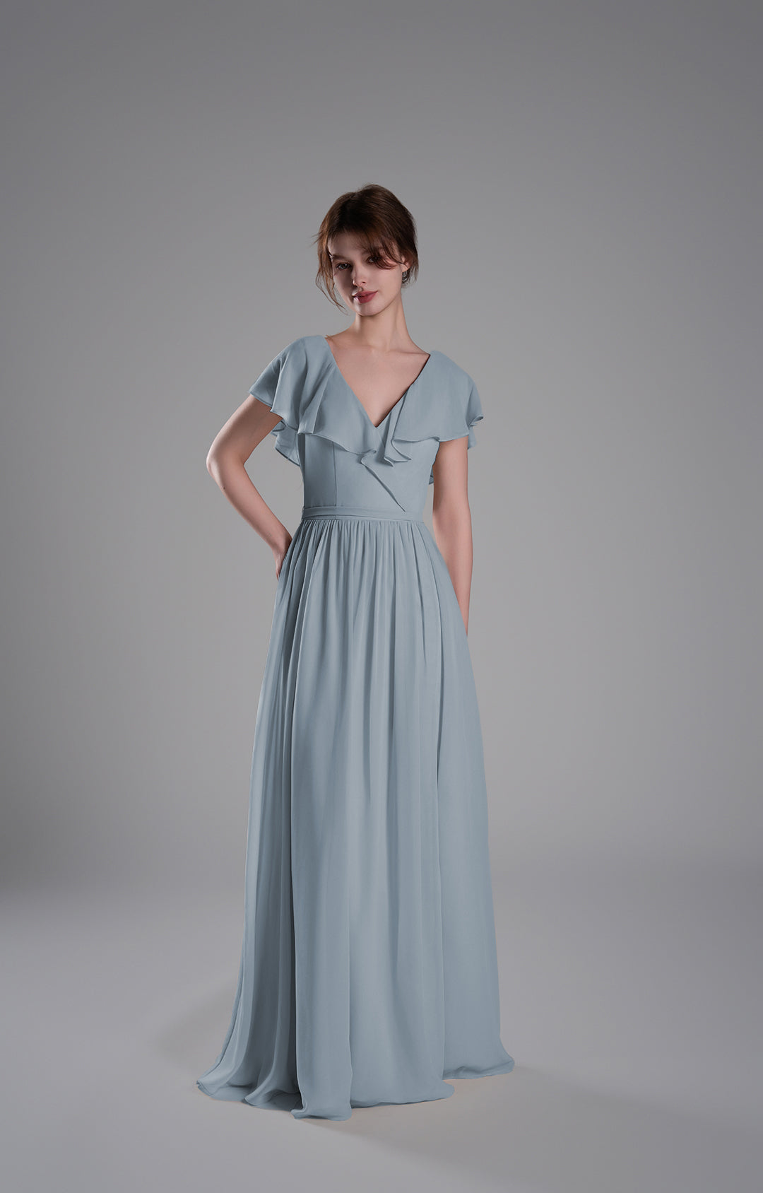 Ideal for bridesmaids, weddings, evening galas, formal dinners, proms, and garden parties, this chiffon gown radiates timeless sophistication and effortless charm. Whether you're walking down the aisle or attending a grand celebration, this dress ensures a stunning and memorable presence.