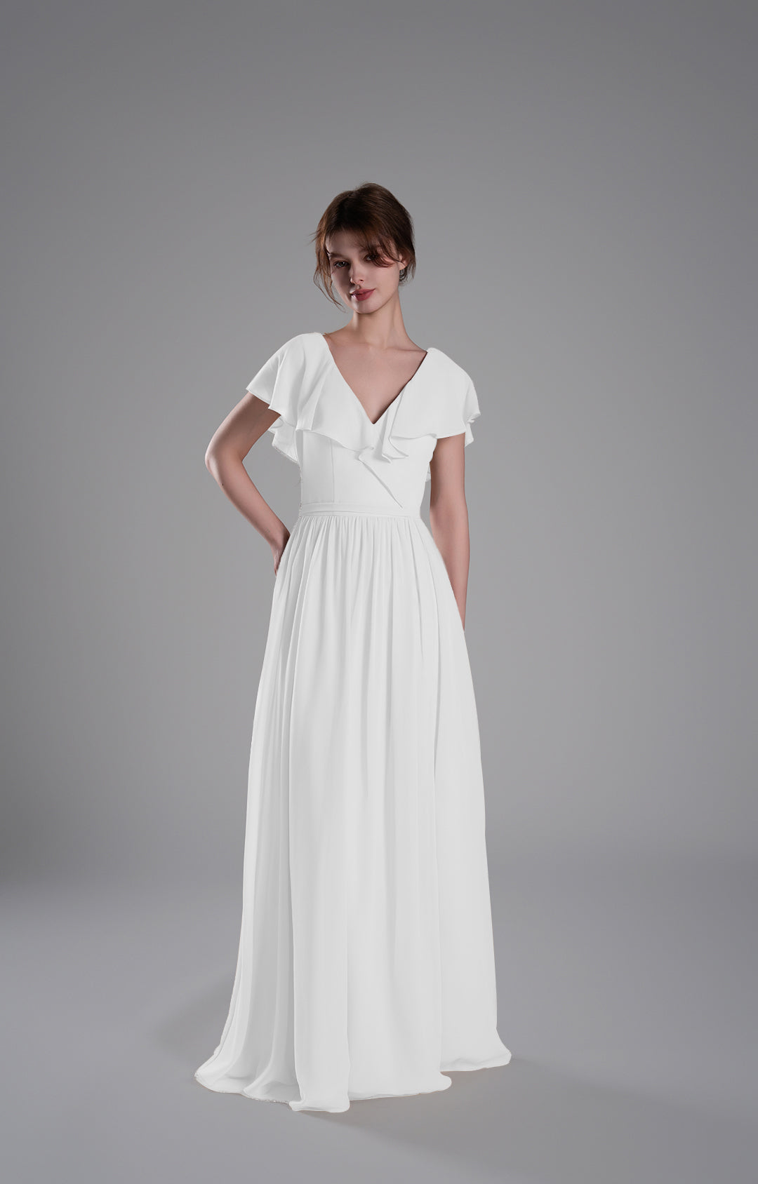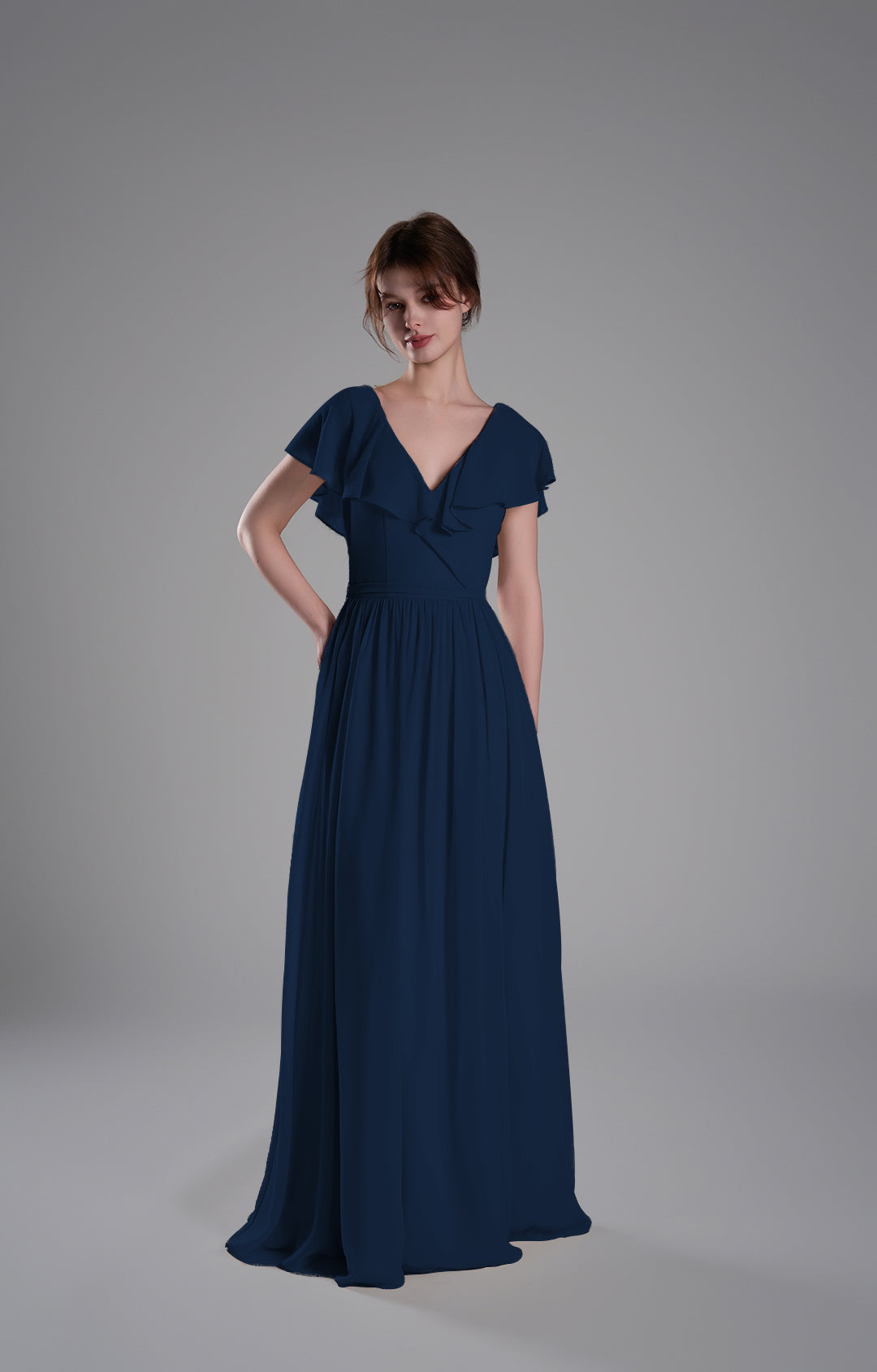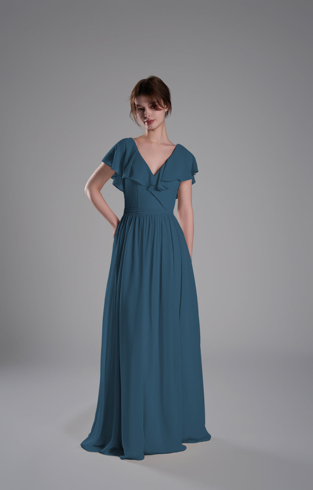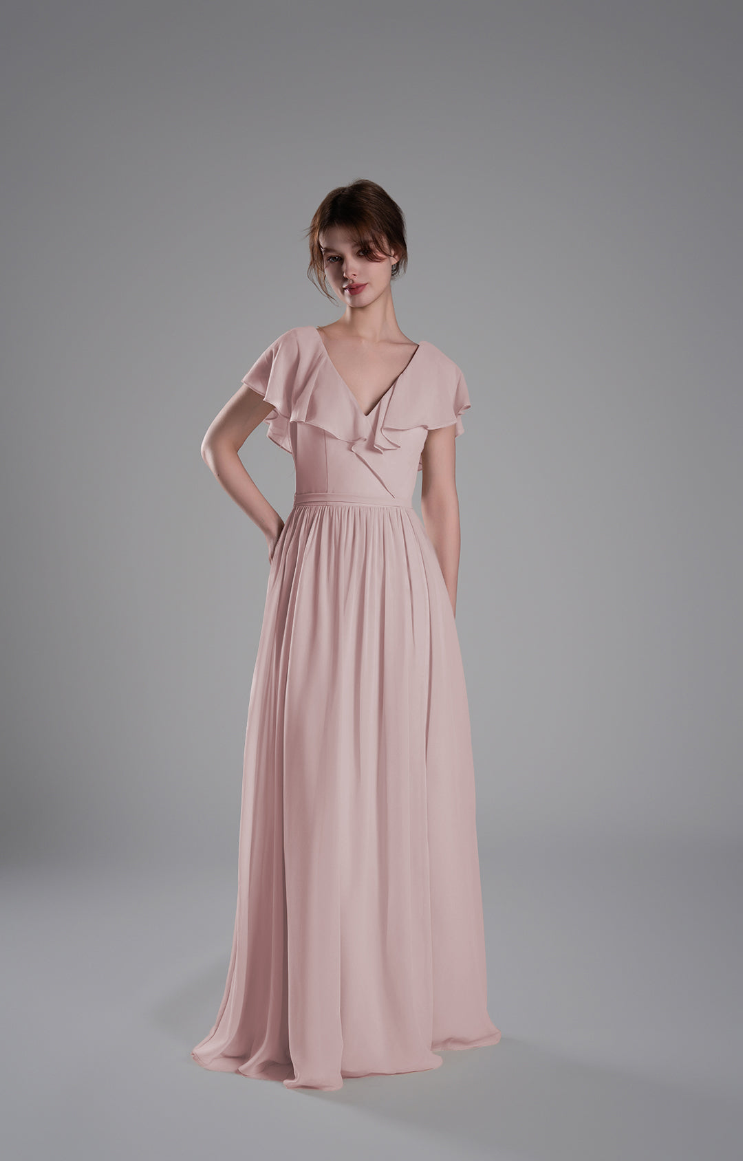 Ideal for bridesmaids, weddings, evening galas, formal dinners, proms, and garden parties, this chiffon gown radiates timeless sophistication and effortless charm. Whether you're walking down the aisle or attending a grand celebration, this dress ensures a stunning and memorable presence.