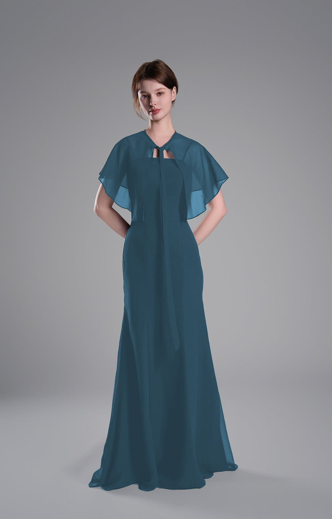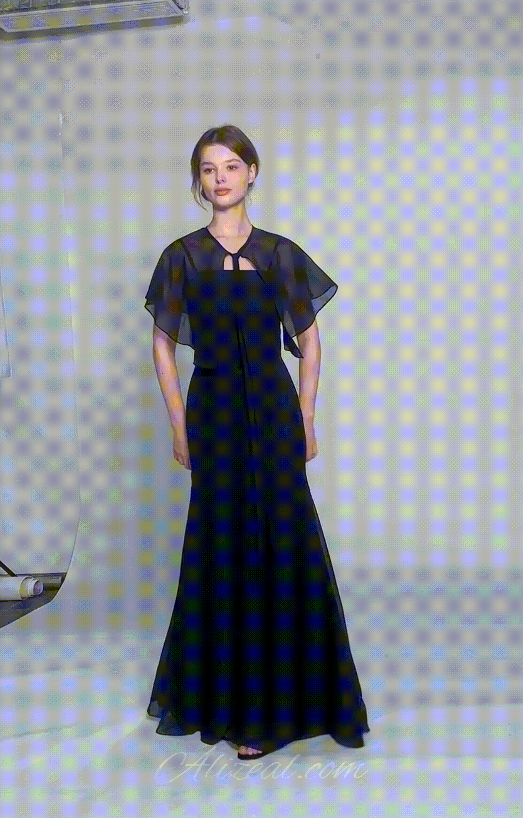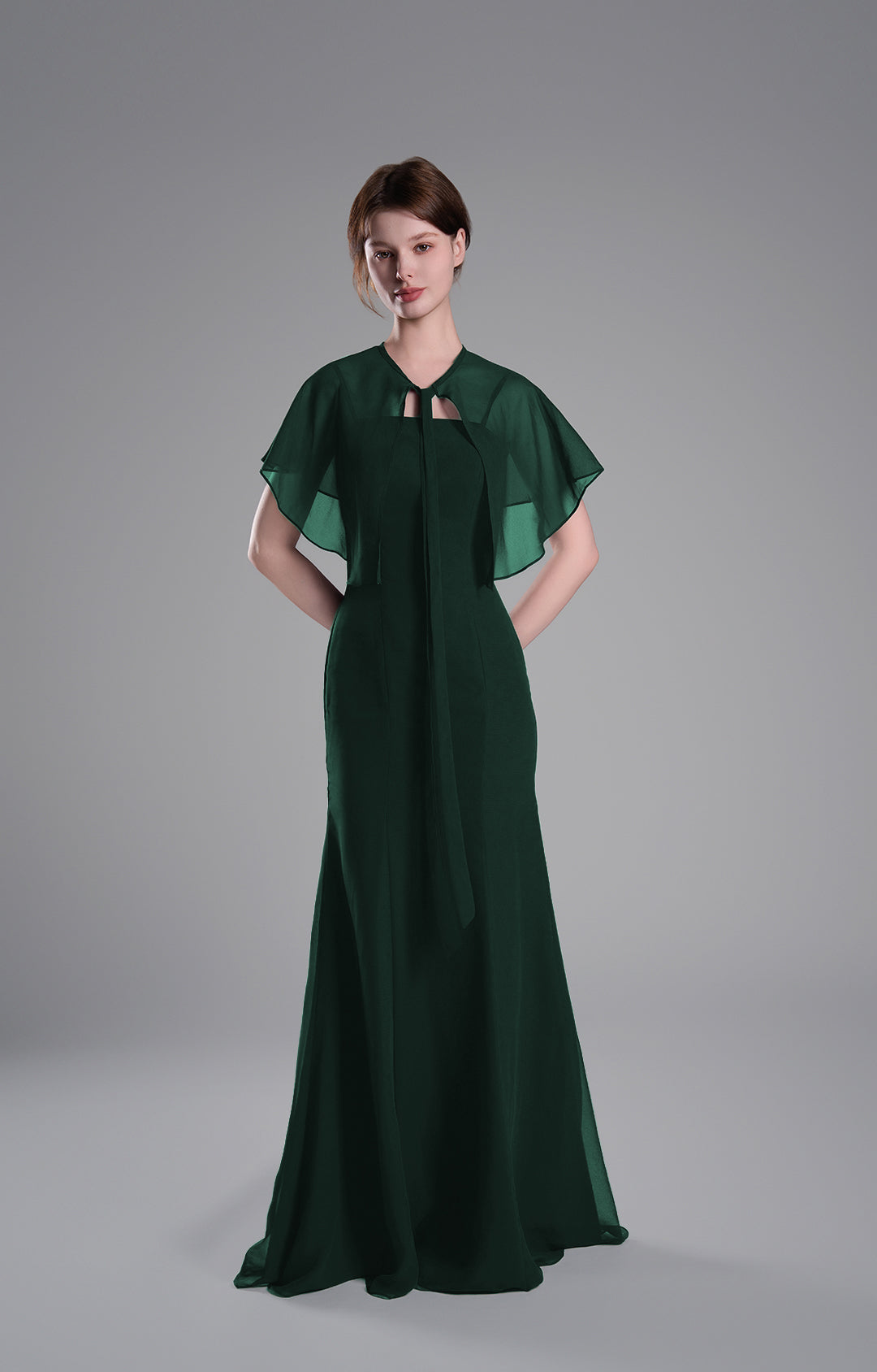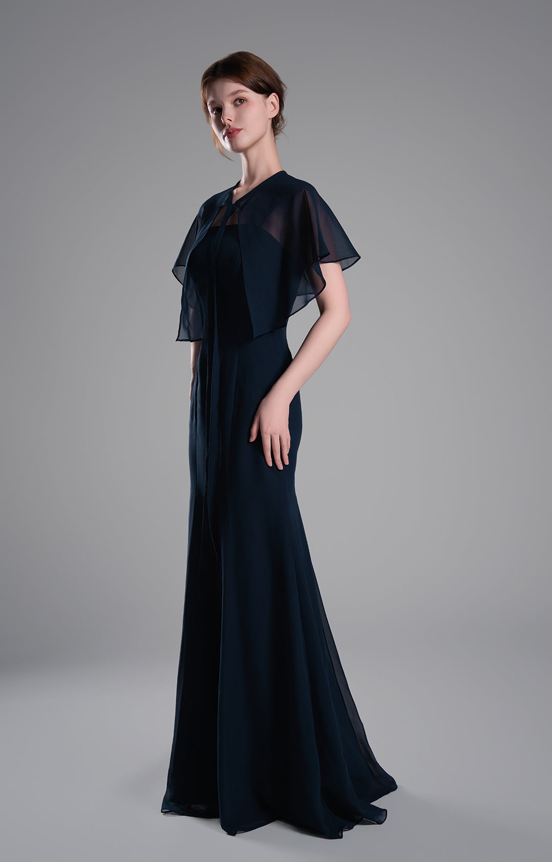 Detachable Chiffon Cape Floor-Length Mermaid Dresees