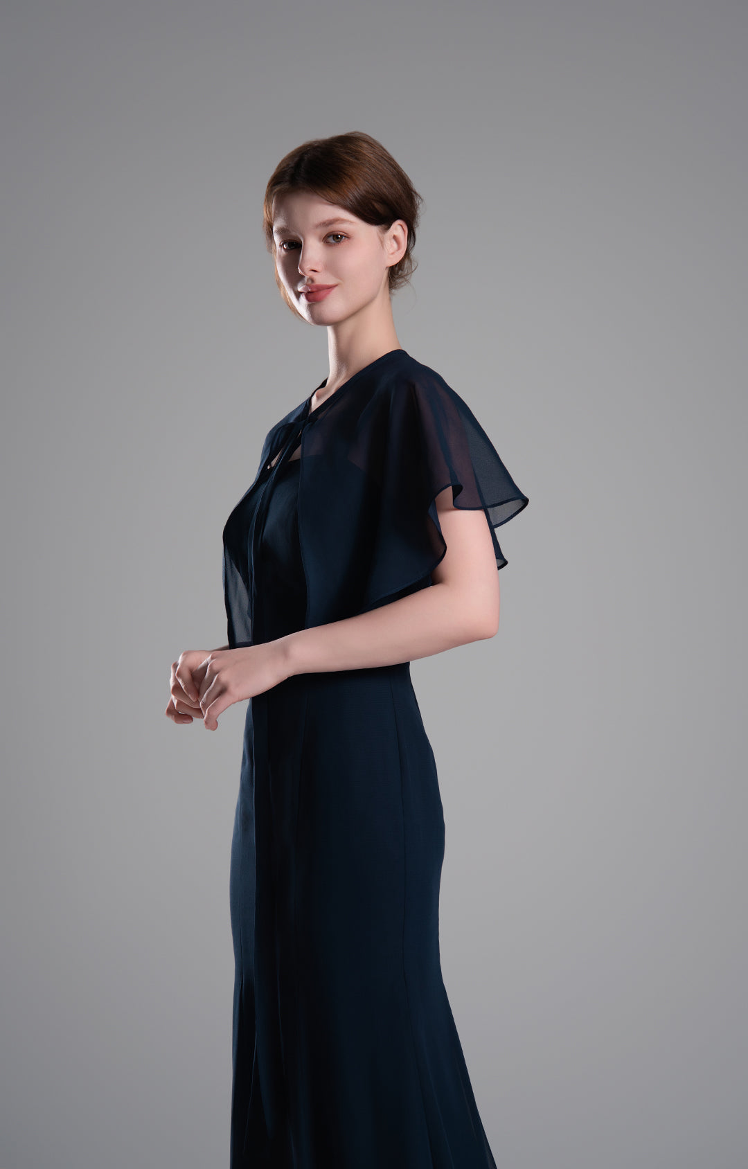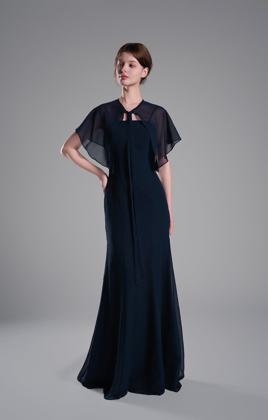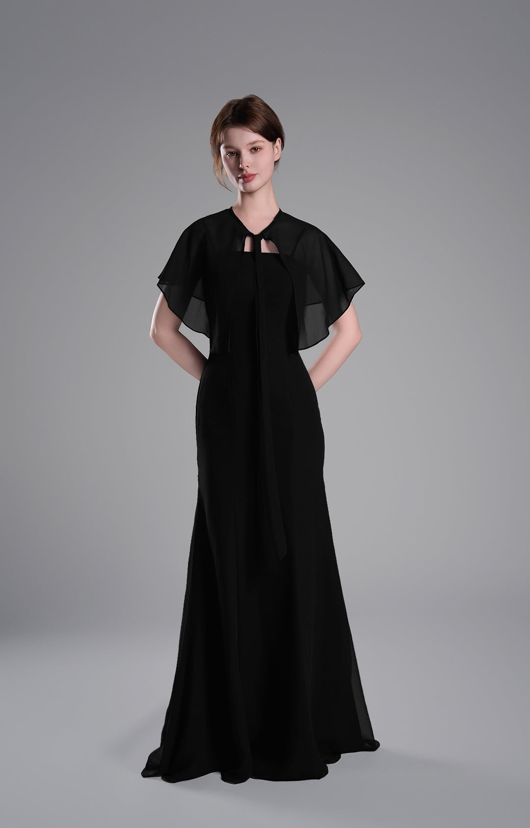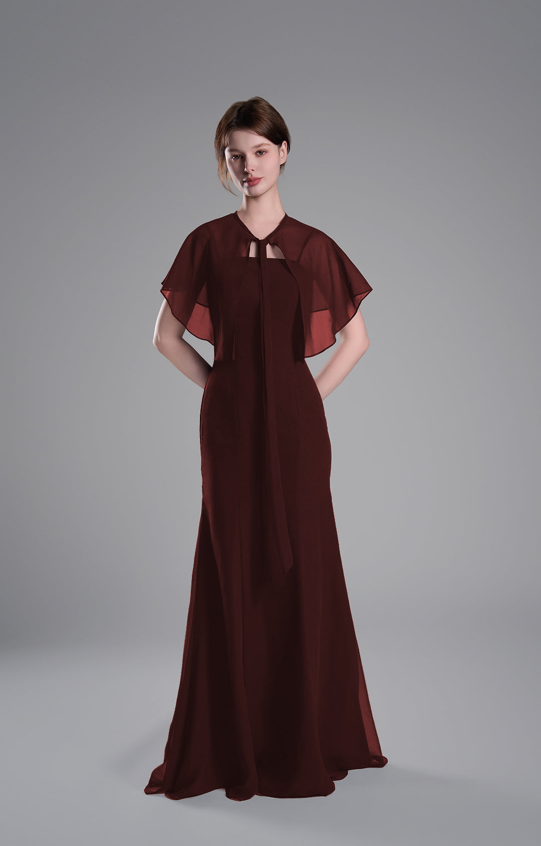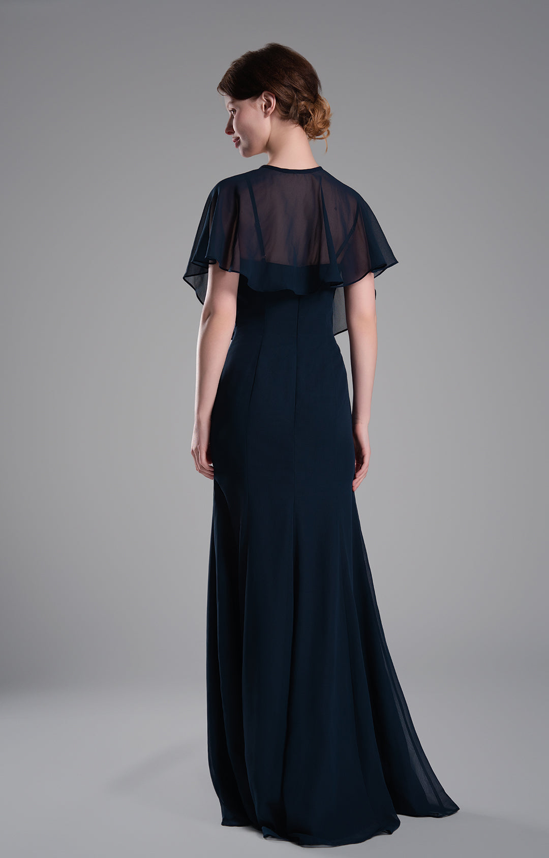 Detachable Chiffon Cape Floor-Length Mermaid Dresees