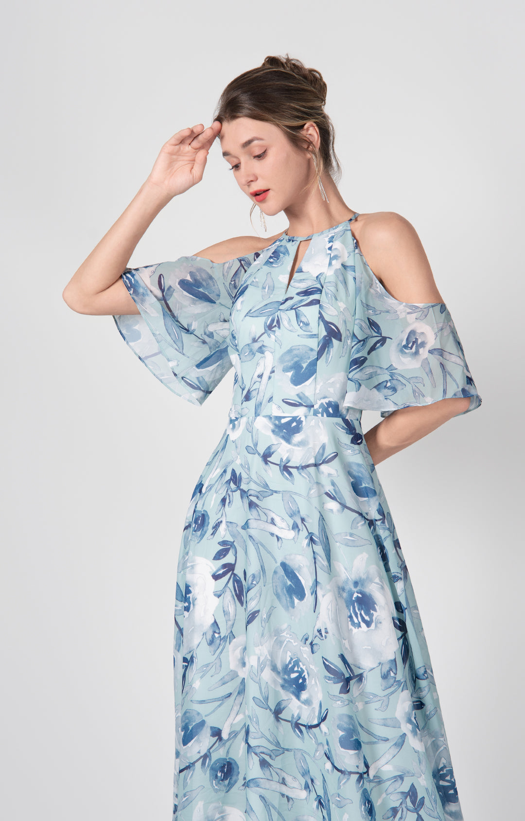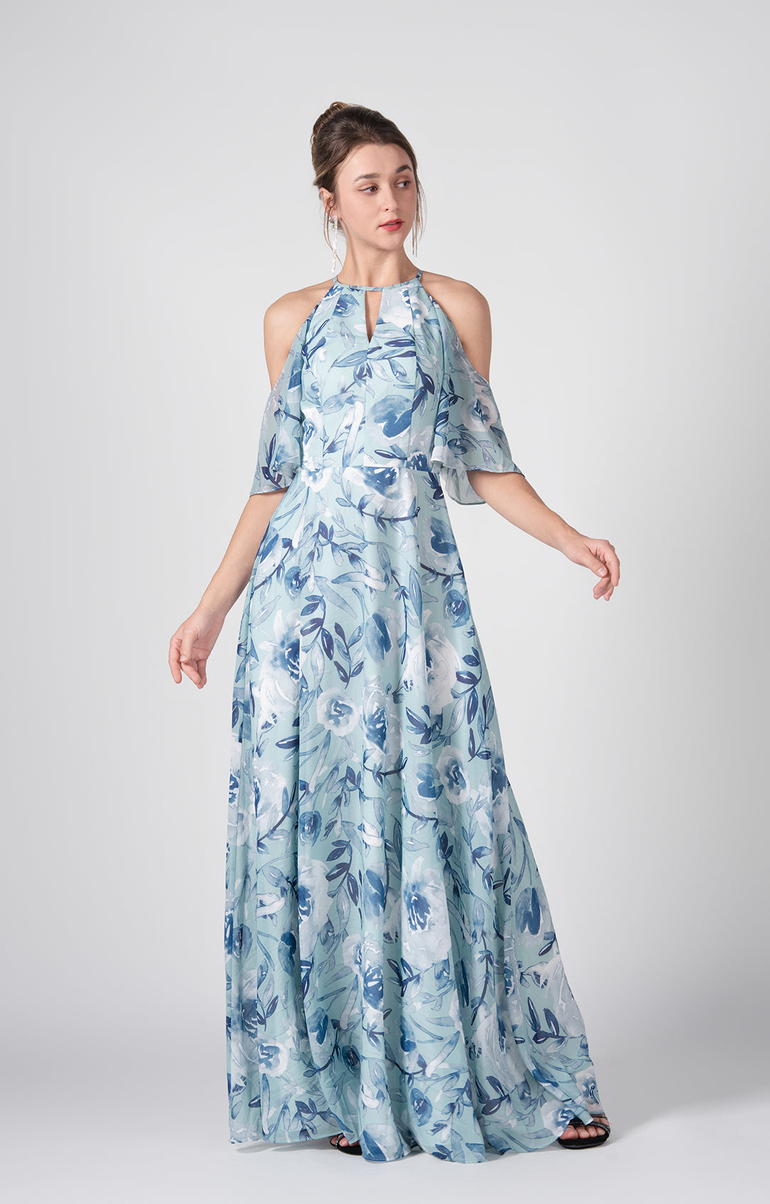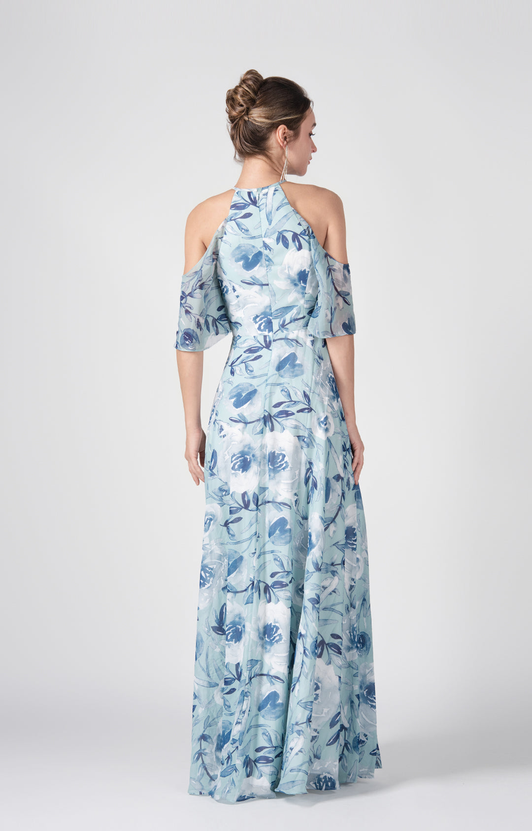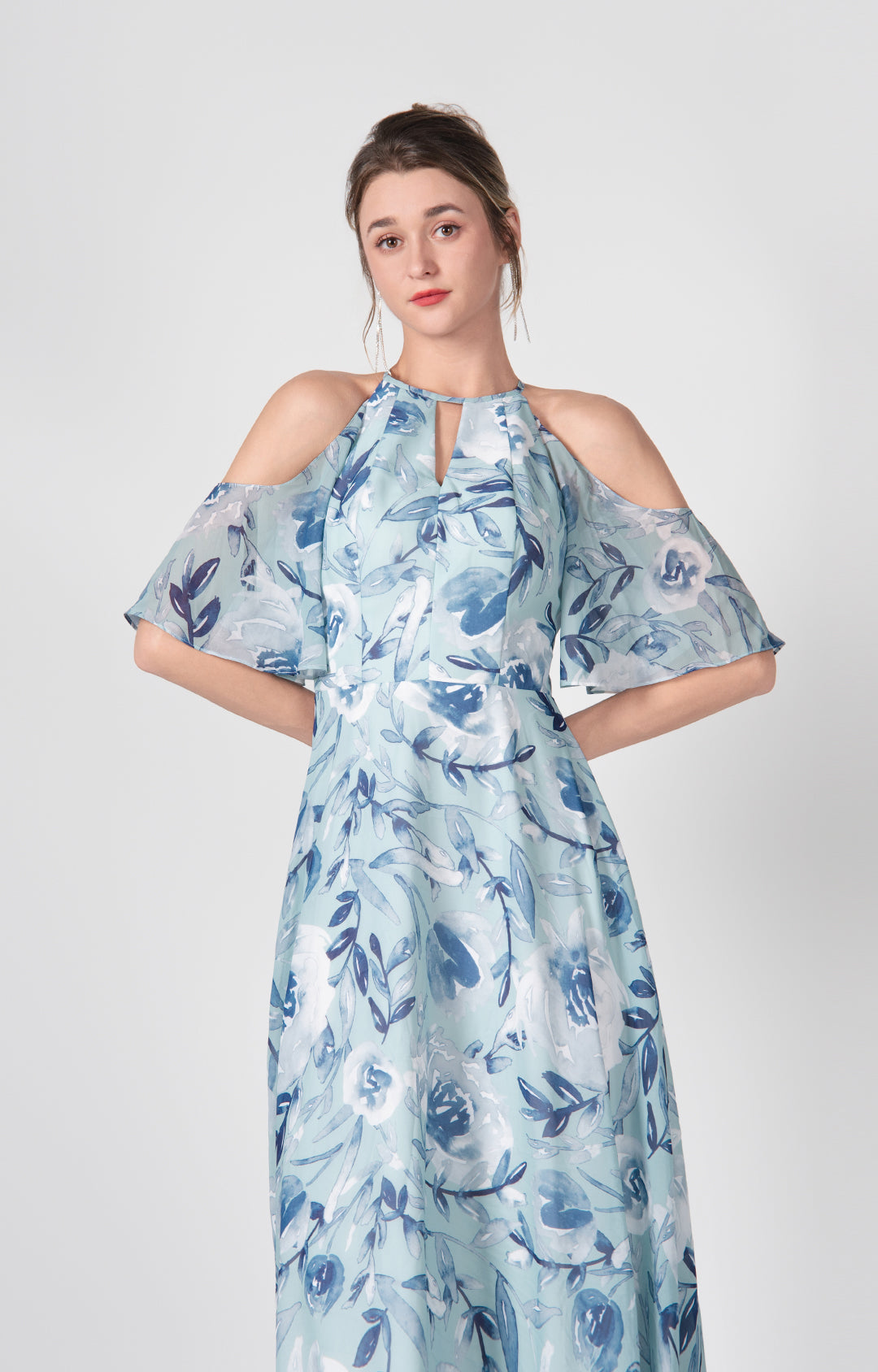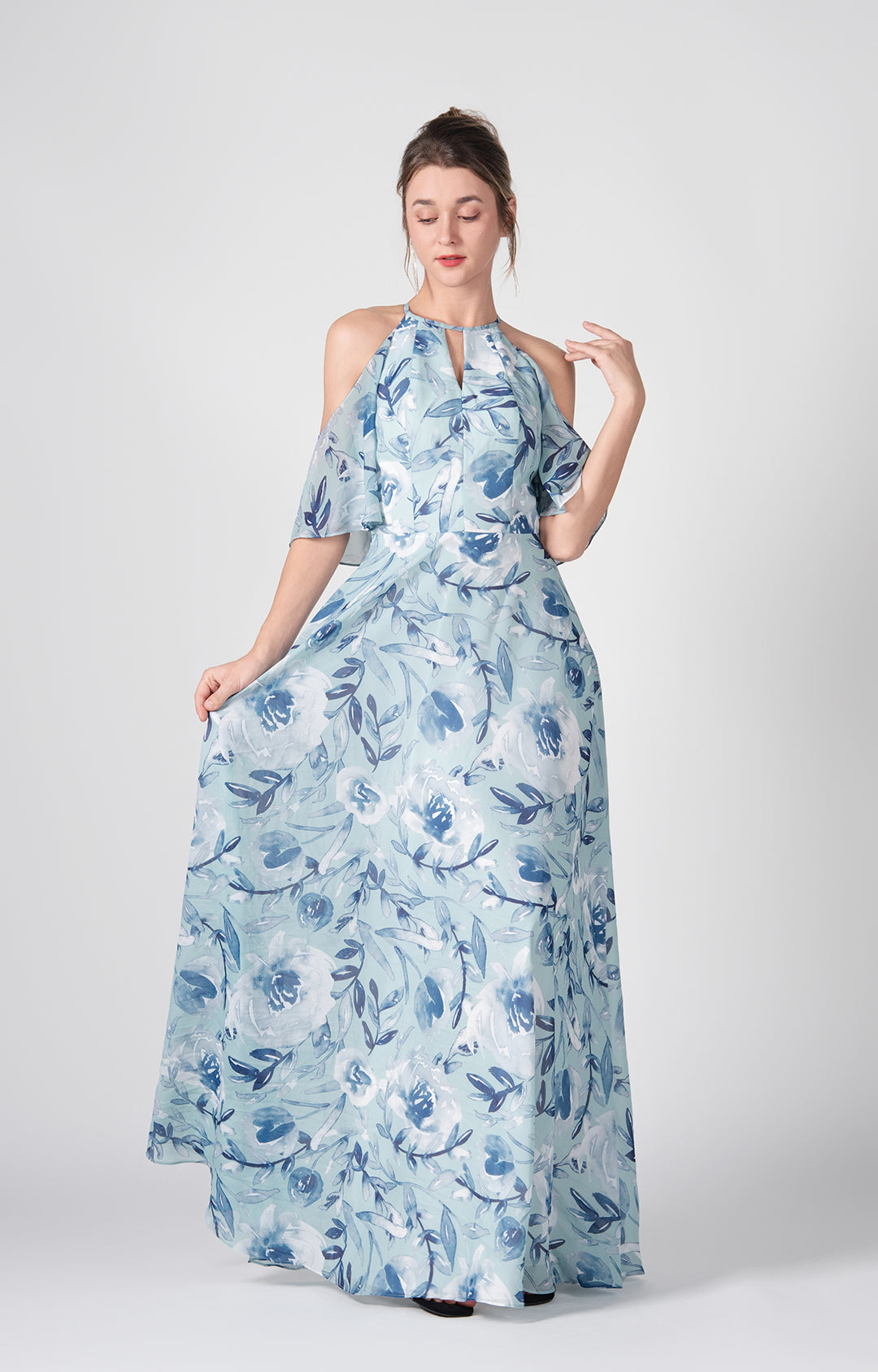 Halter Drop Shoulder A-Line Flowy Hemline Chiffon Dresses