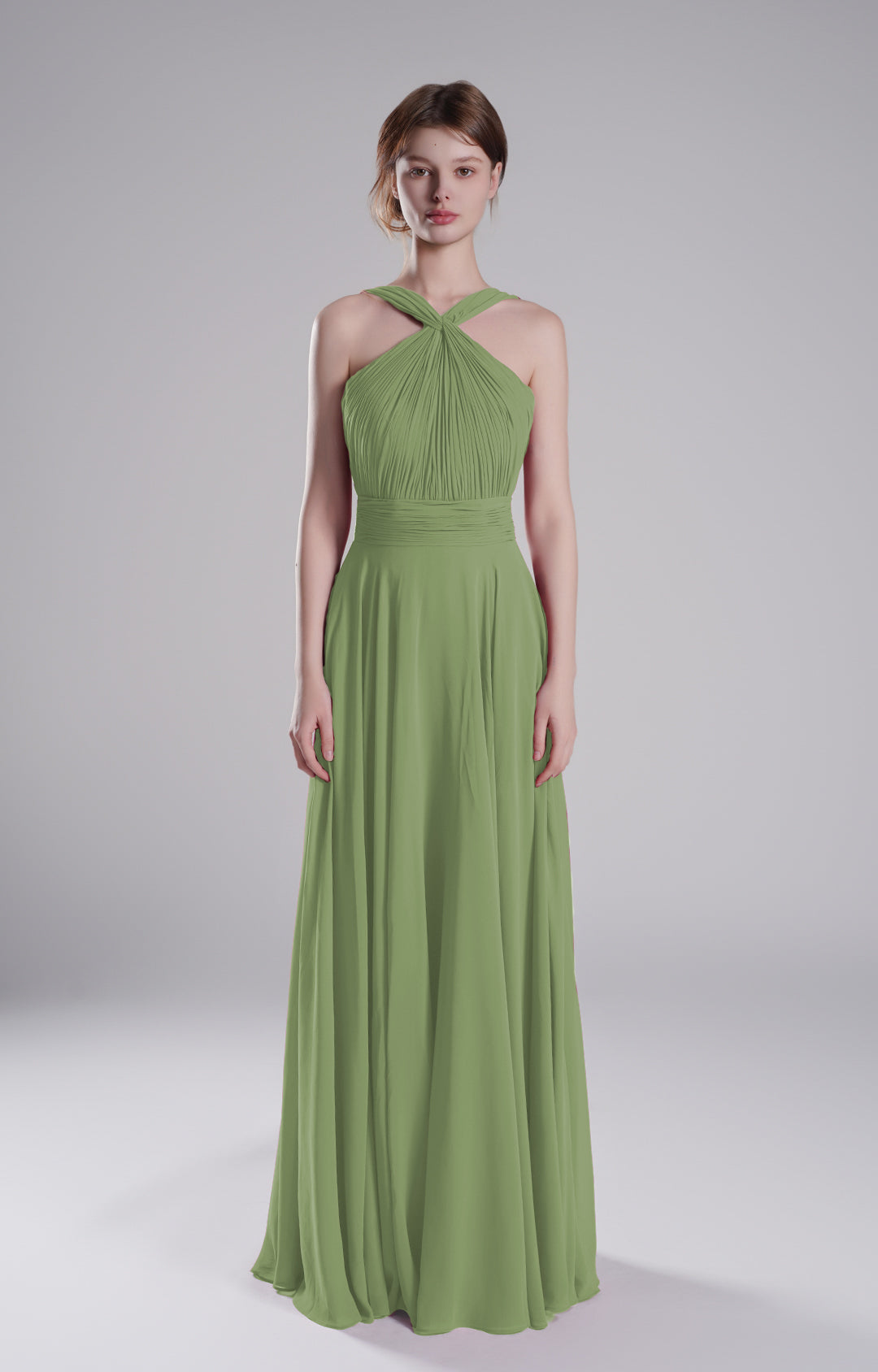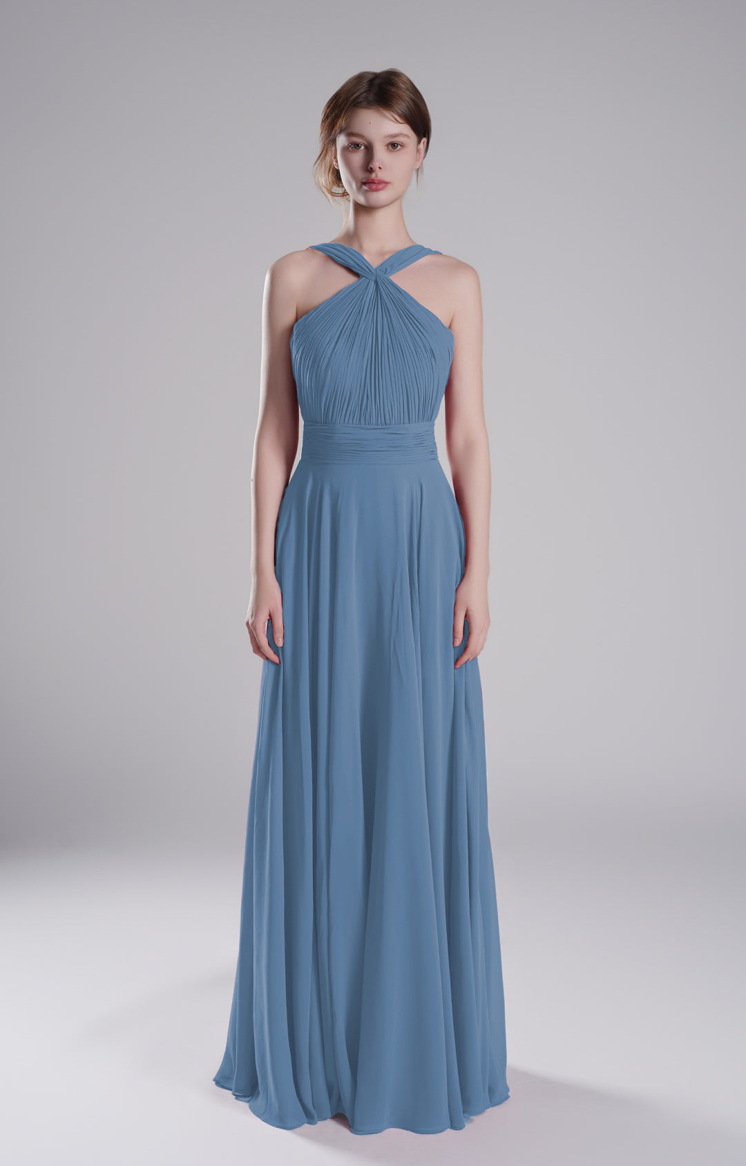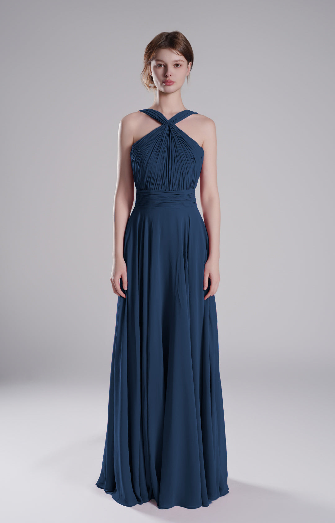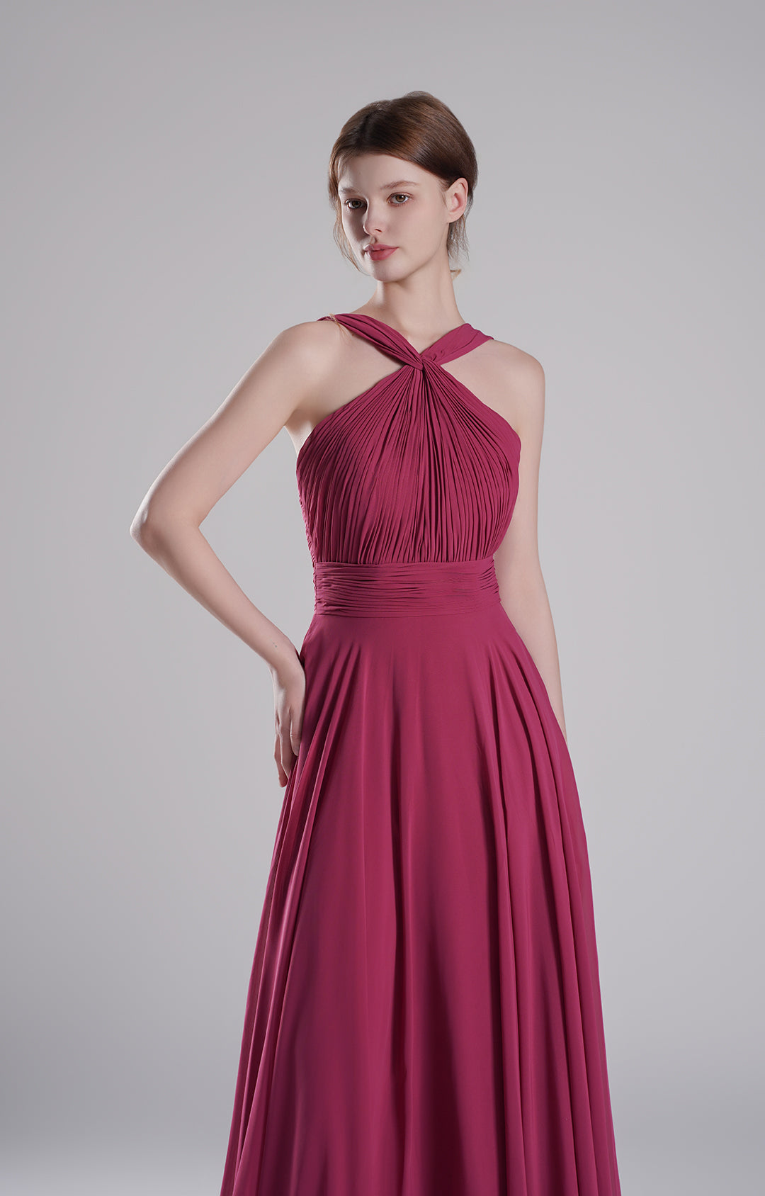 Halter Neck Cross Straps Pleated Waist A-Line Dresses