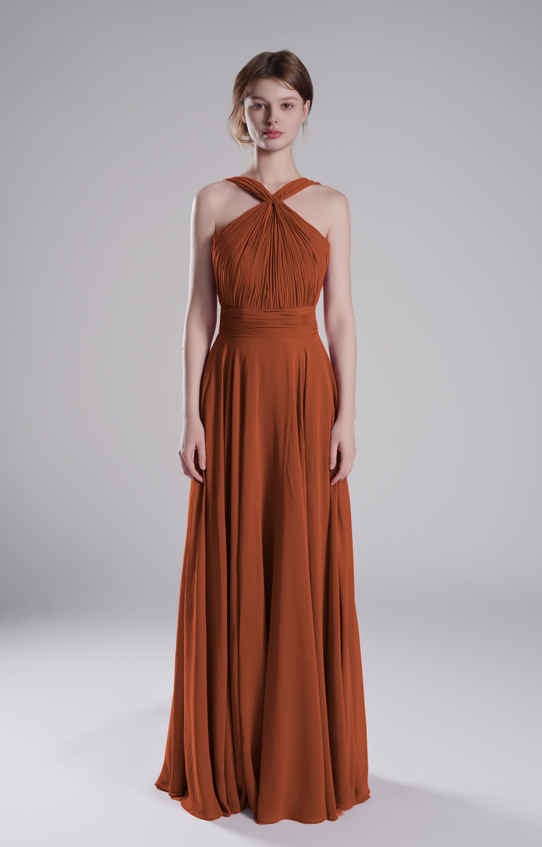 Crafted from luxurious chiffon fabric, this gown is lightweight, airy, and effortlessly elegant.
