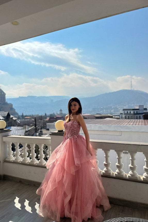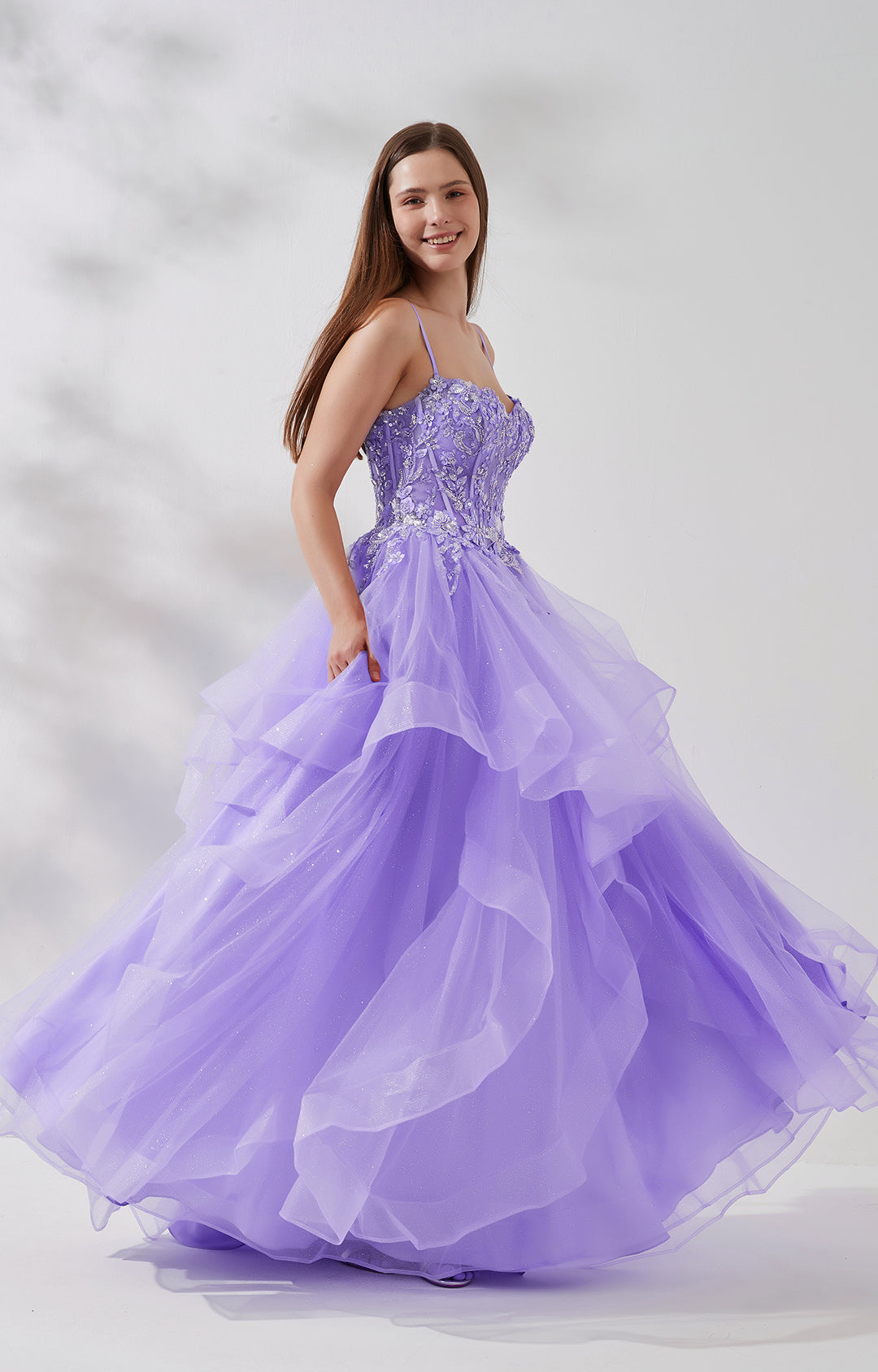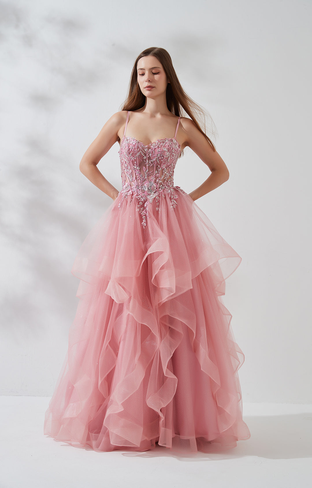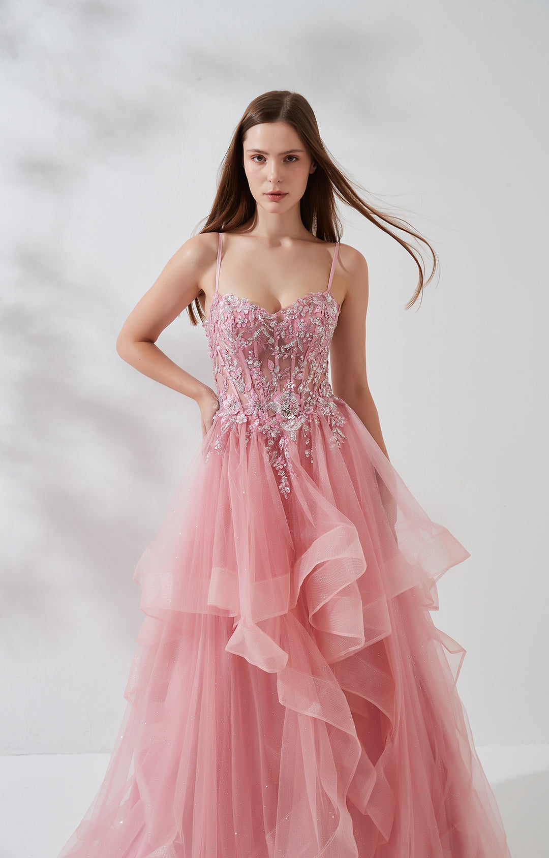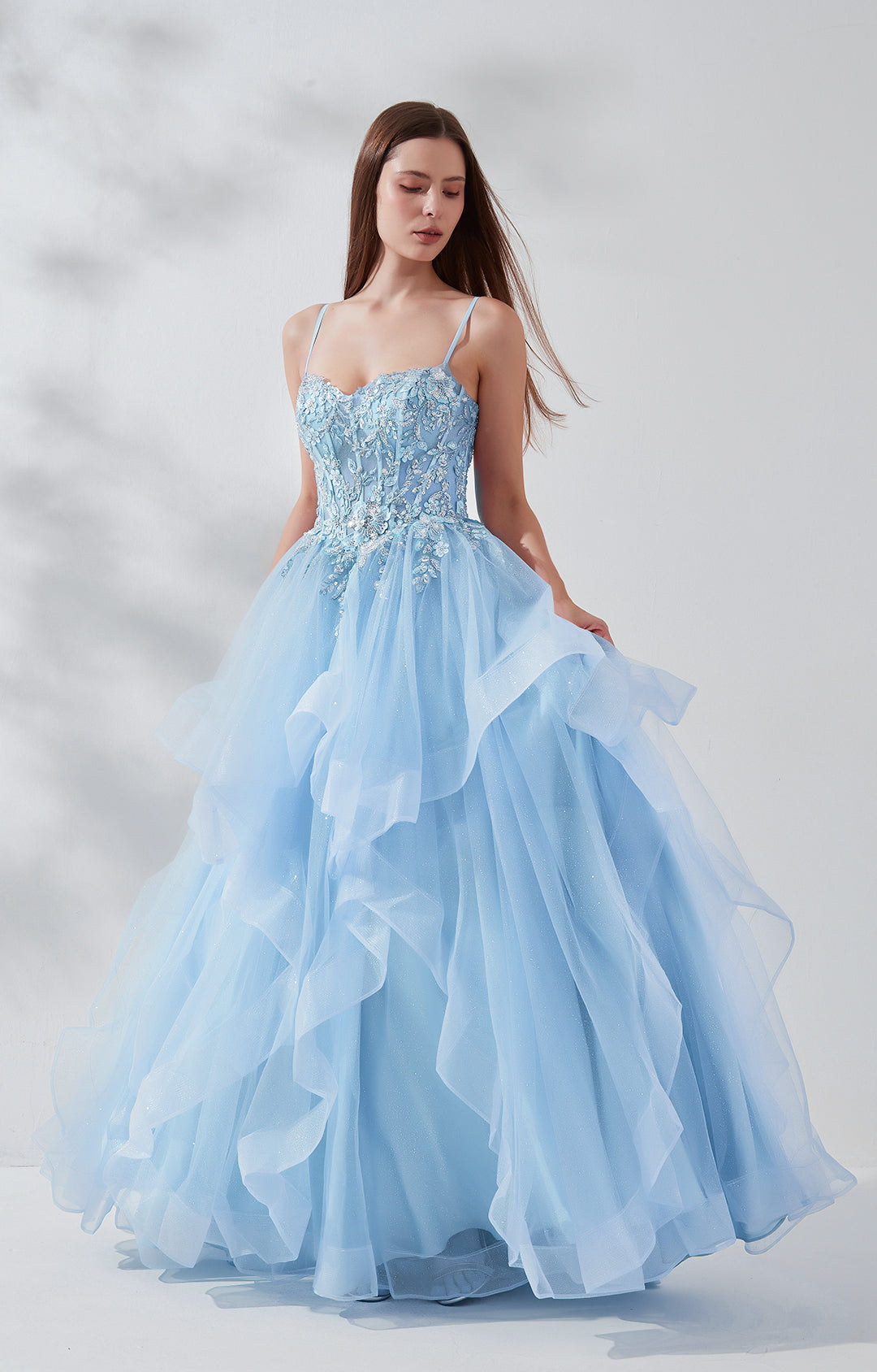 Heart Neckline Spaghetti Straps Beaded Sequins Puffy Dresses