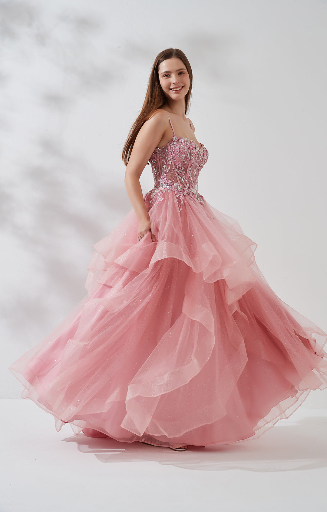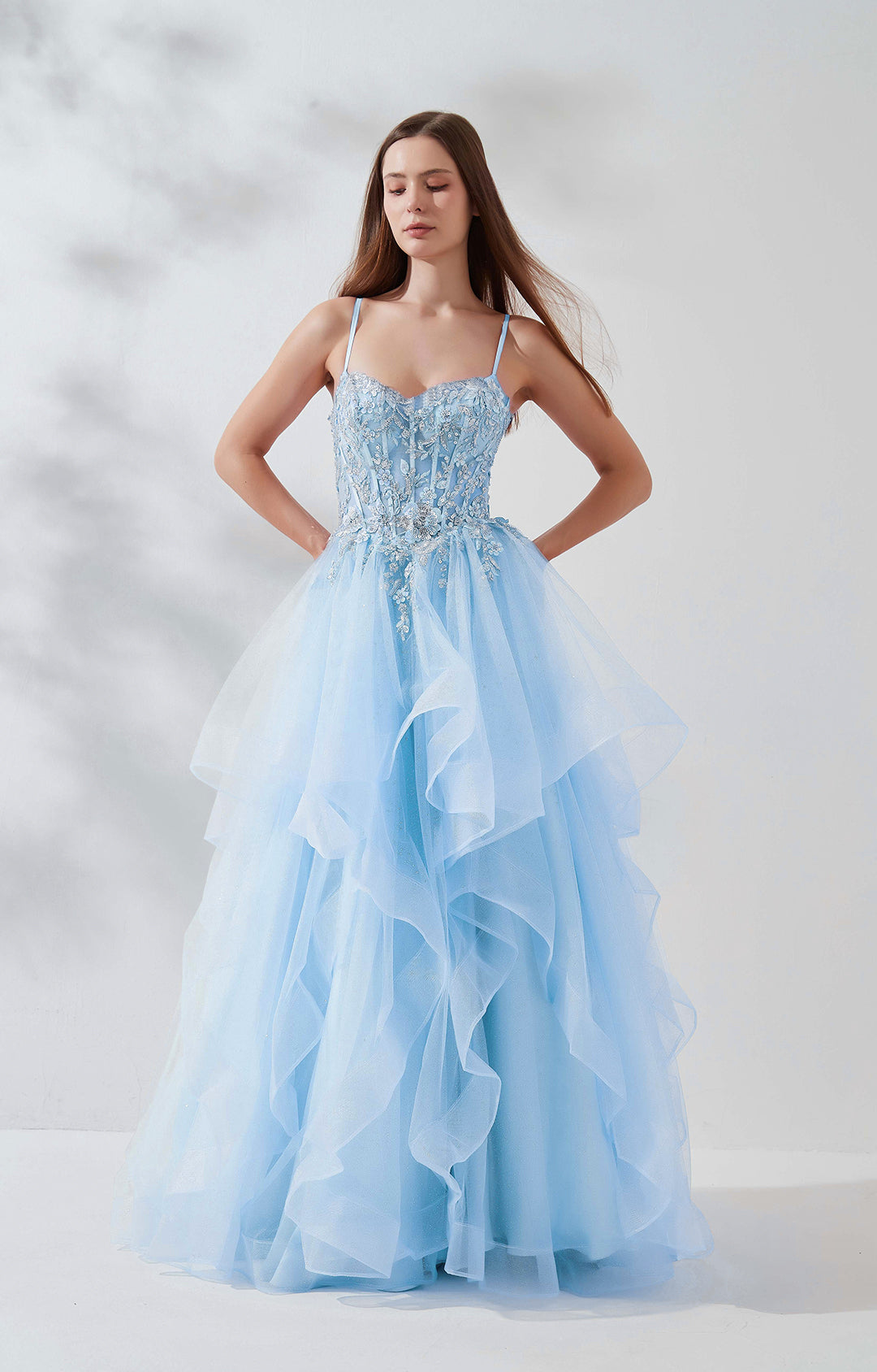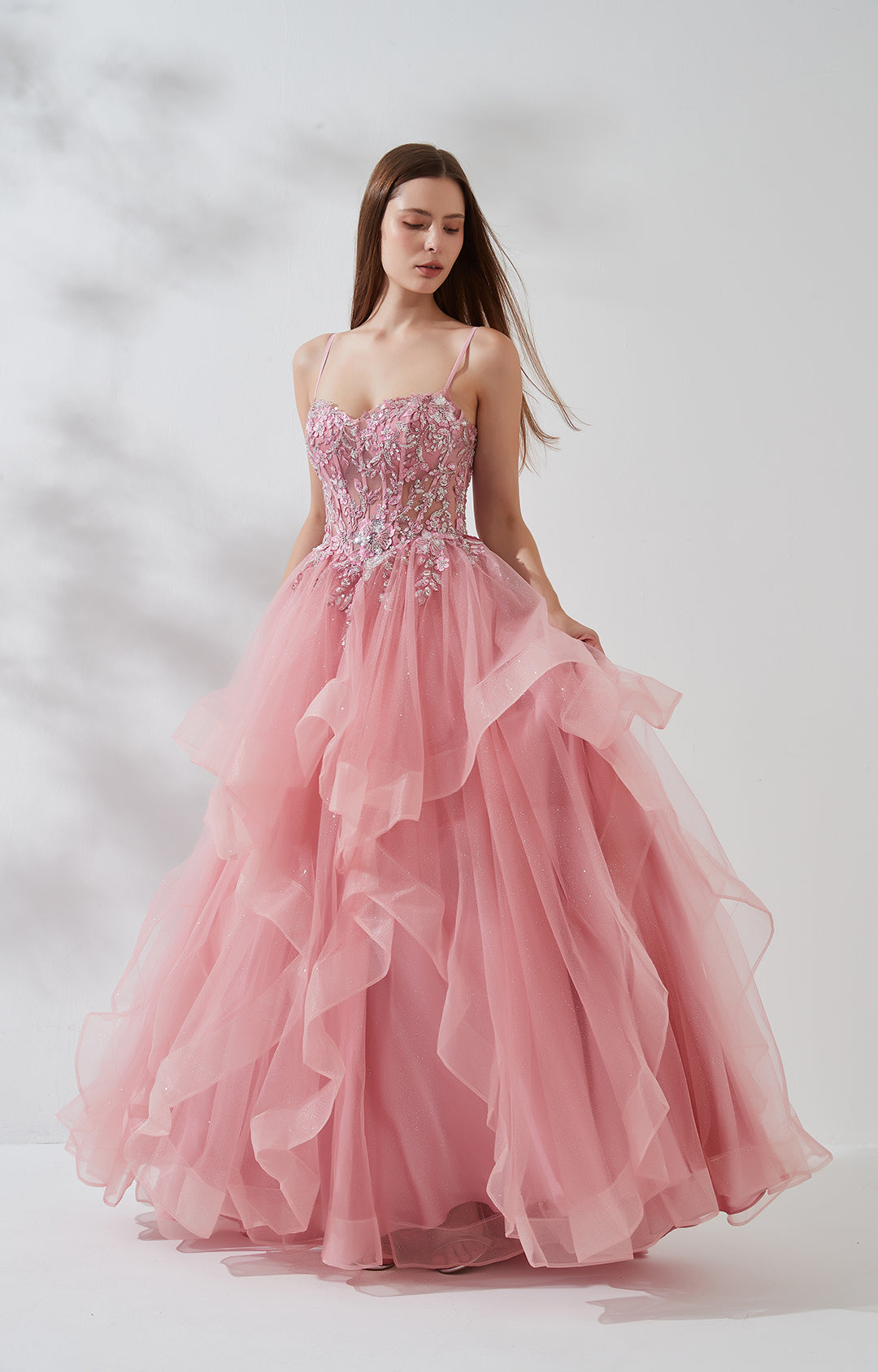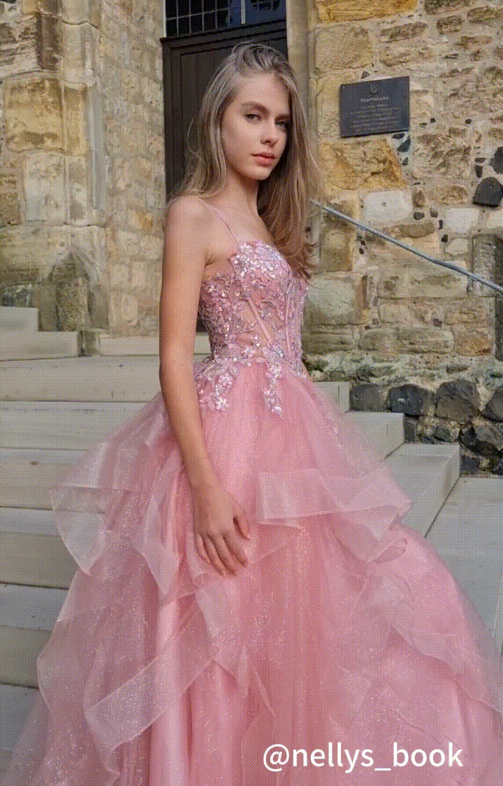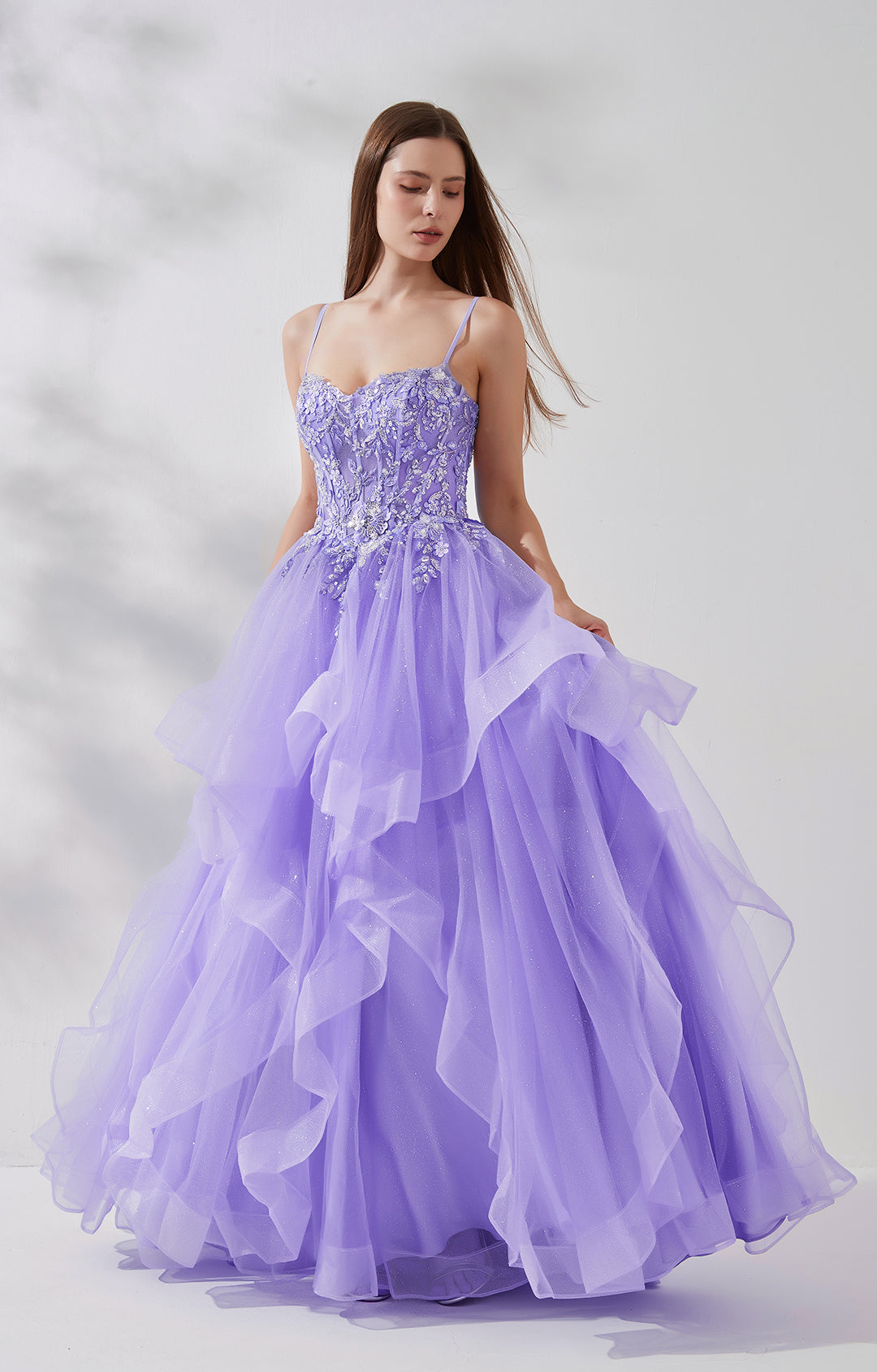 Heart Neckline Spaghetti Straps Beaded Sequins Puffy Dresses