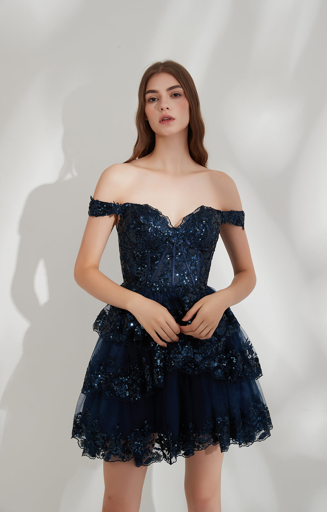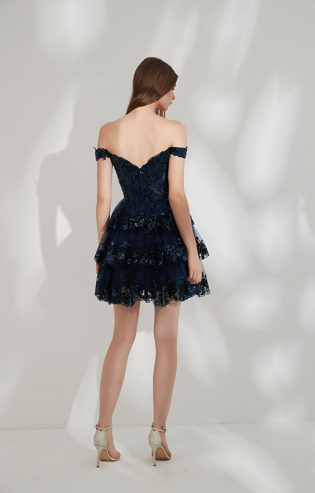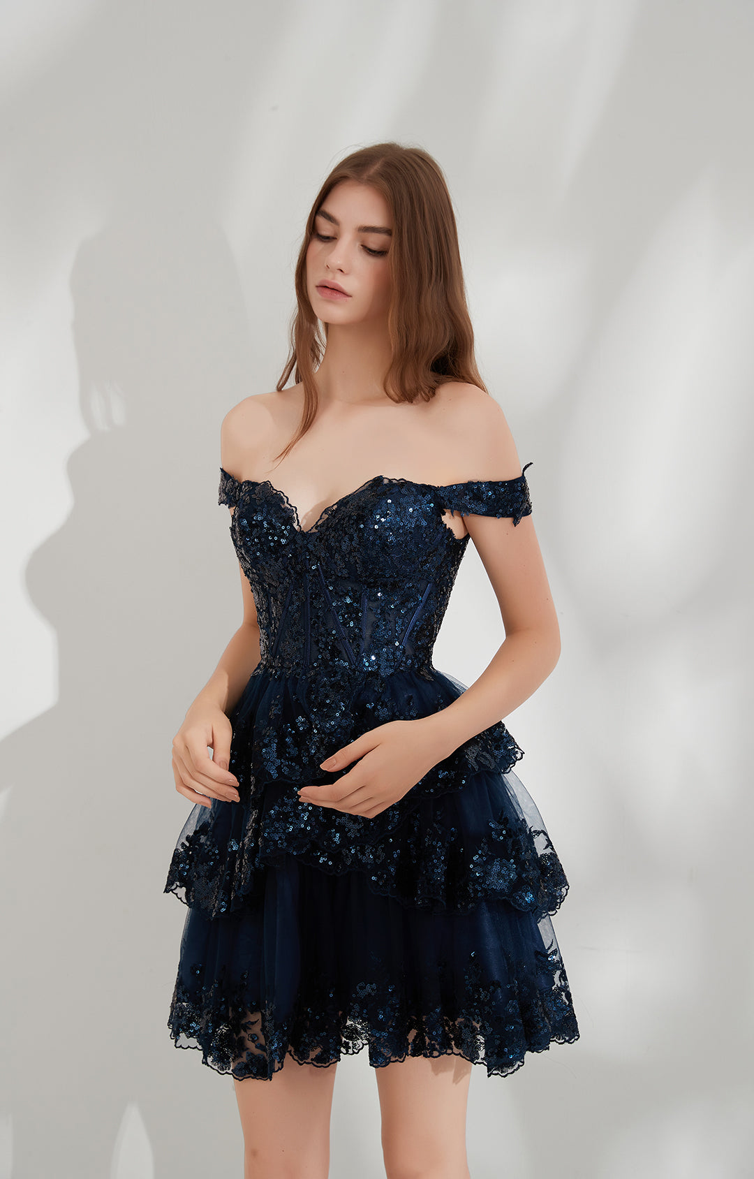 V-neck Lace Sequin Mesh Off-shoulder Princess Puffy Dress