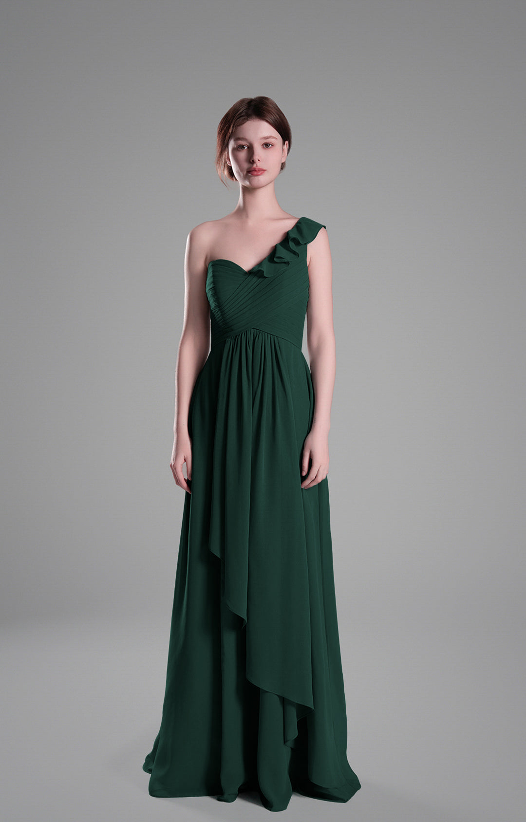 One-Shoulder Ruffle Pleated A-Line Dresses