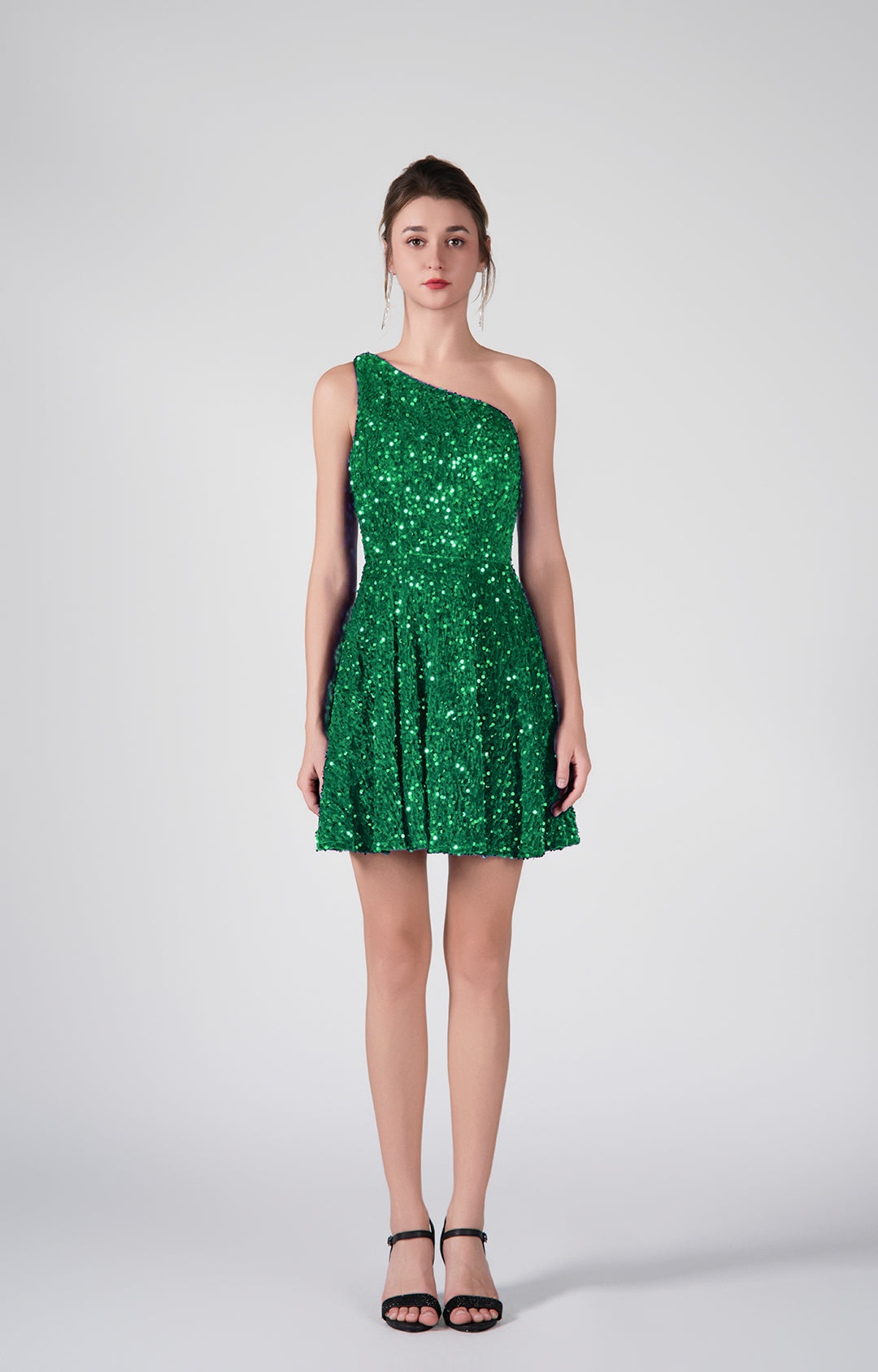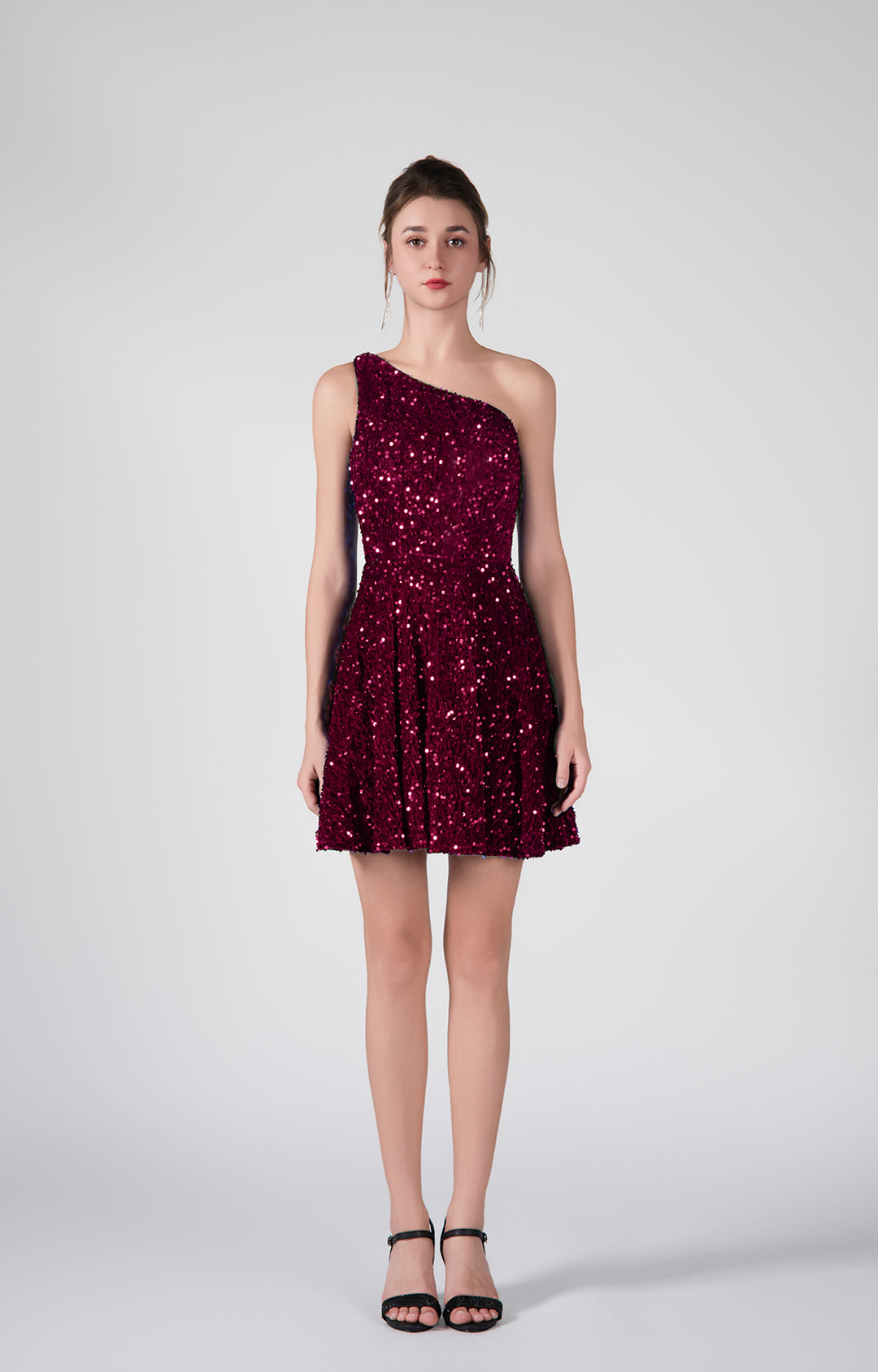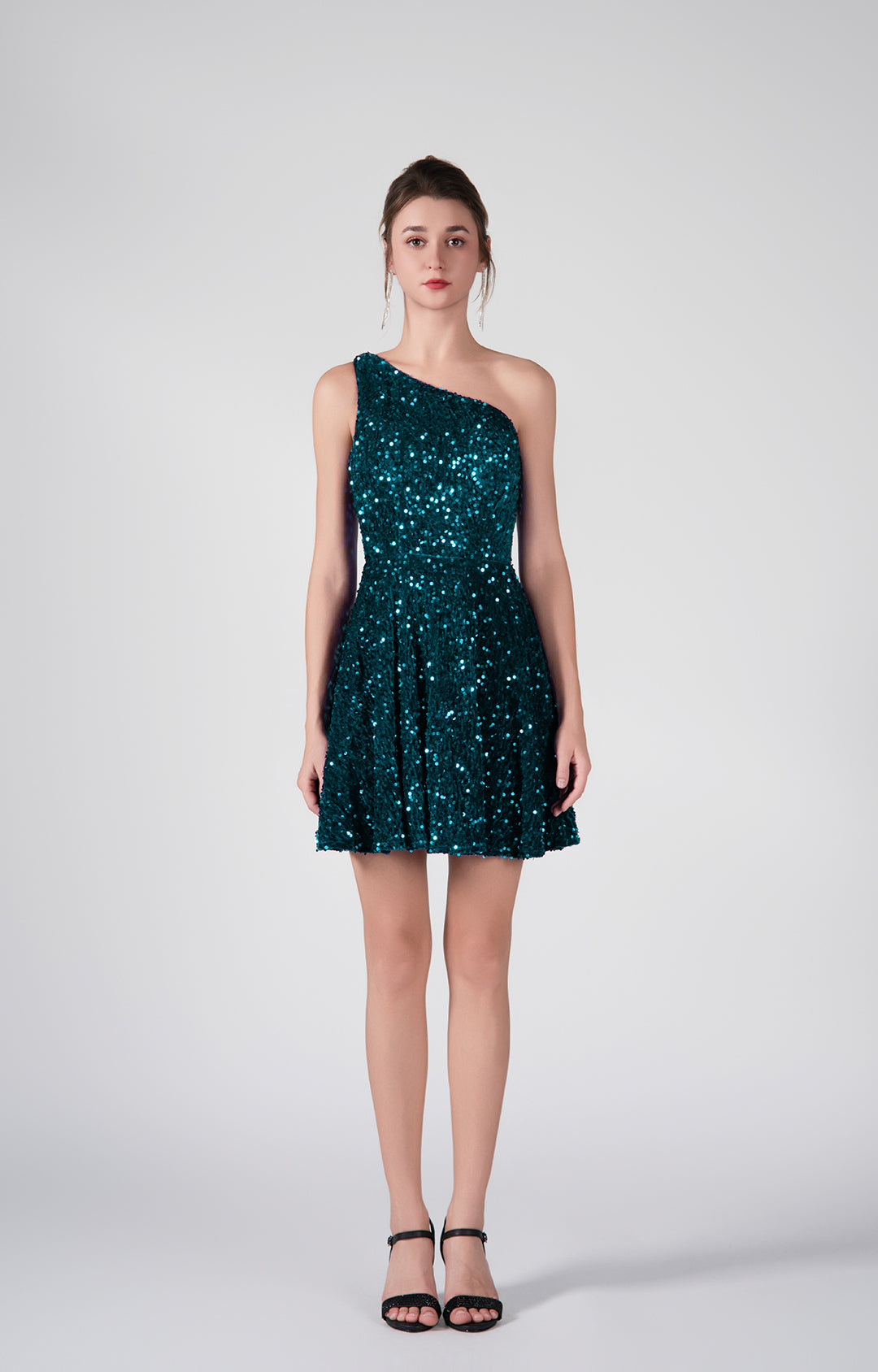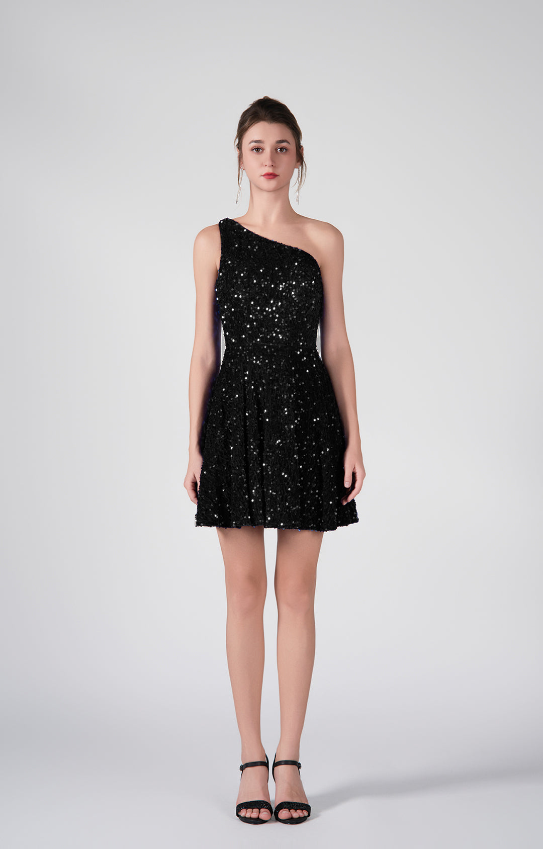 One-Shoulder Sequin Flared Skirt Dresses