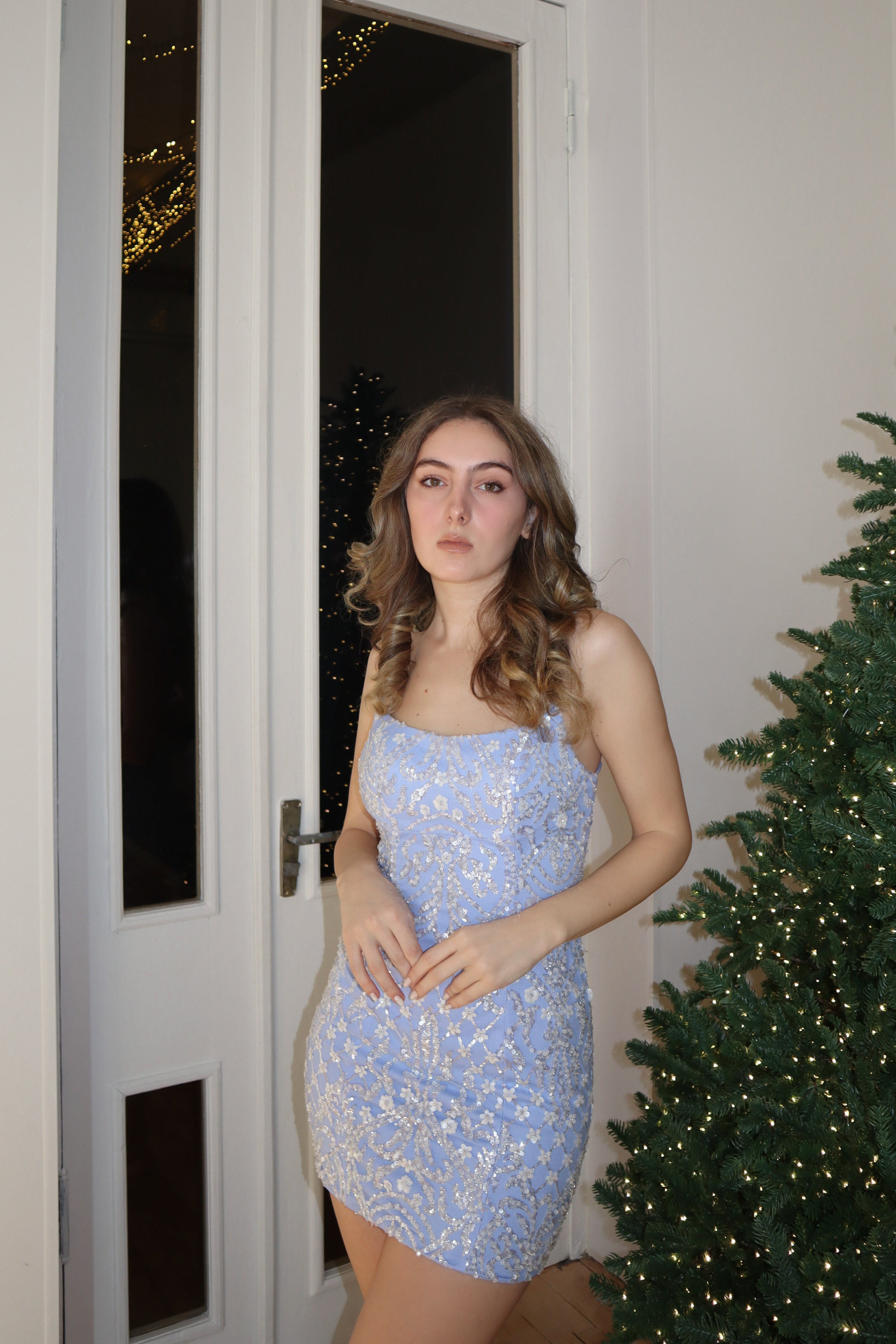 Sequin Embroidered Backless Lace-up Cocktail Short Dress