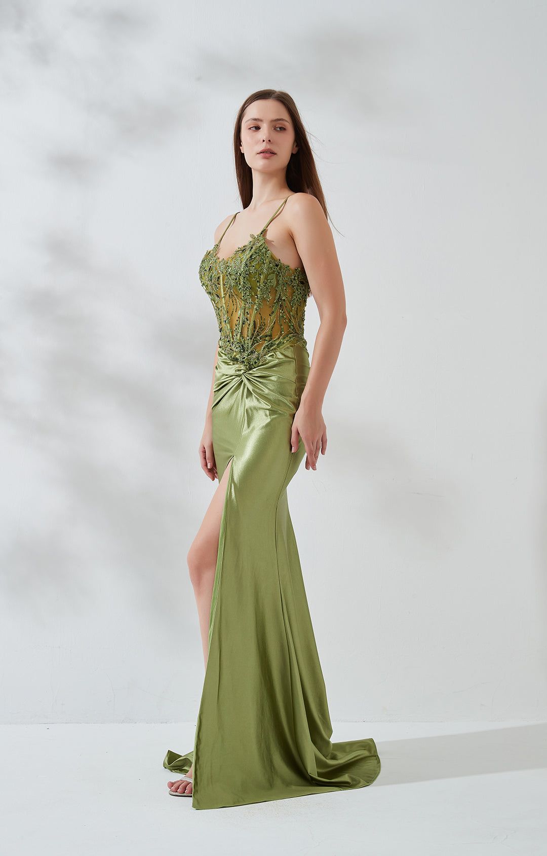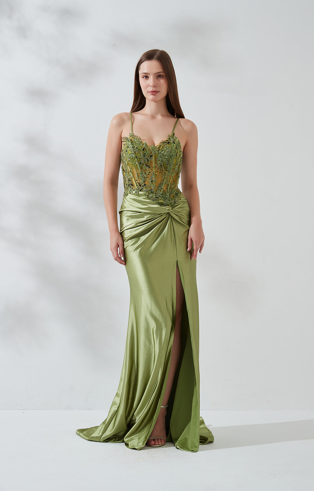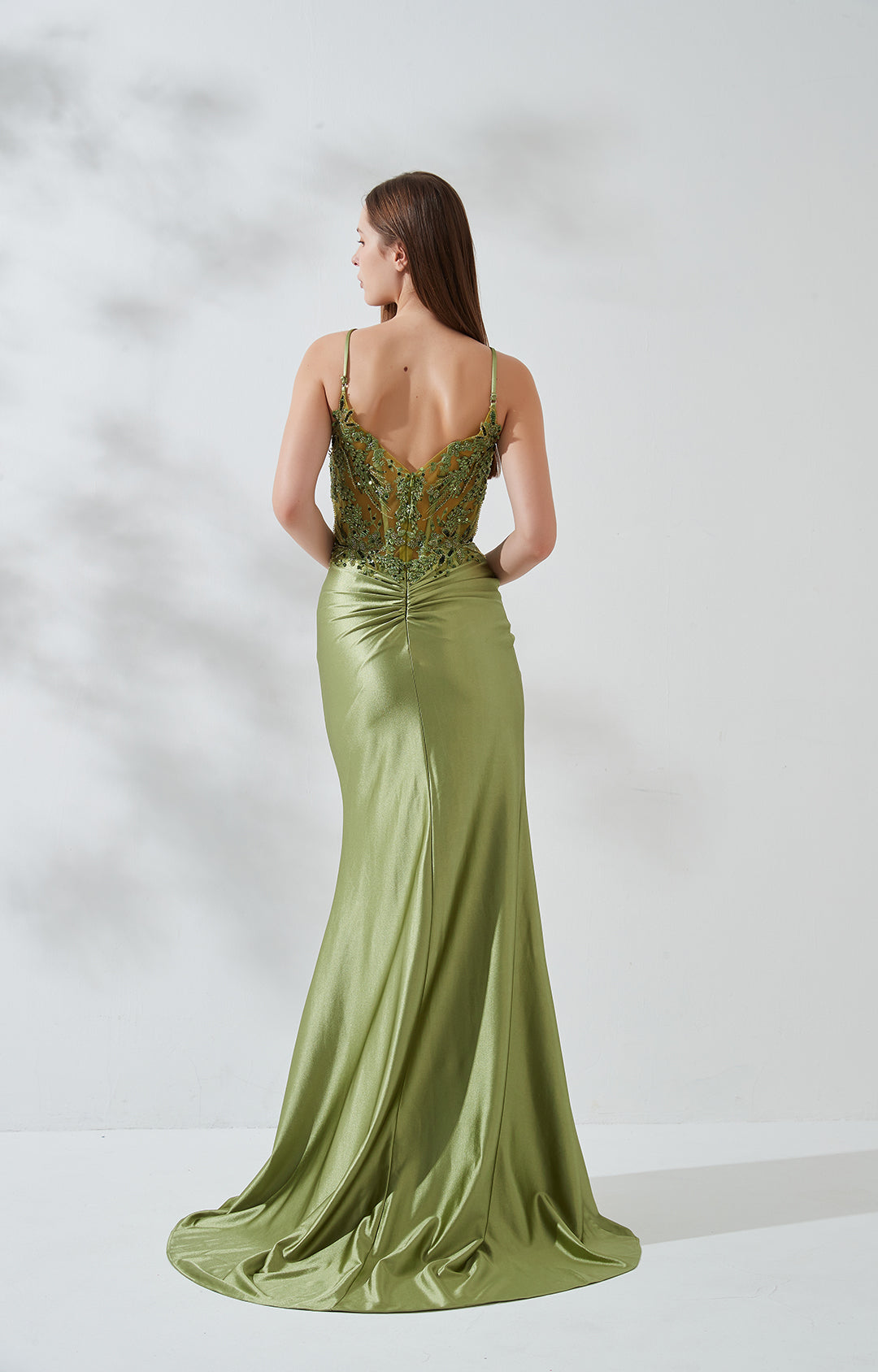 This gown deviates by a high-quality, elastic, and glossy polyester.