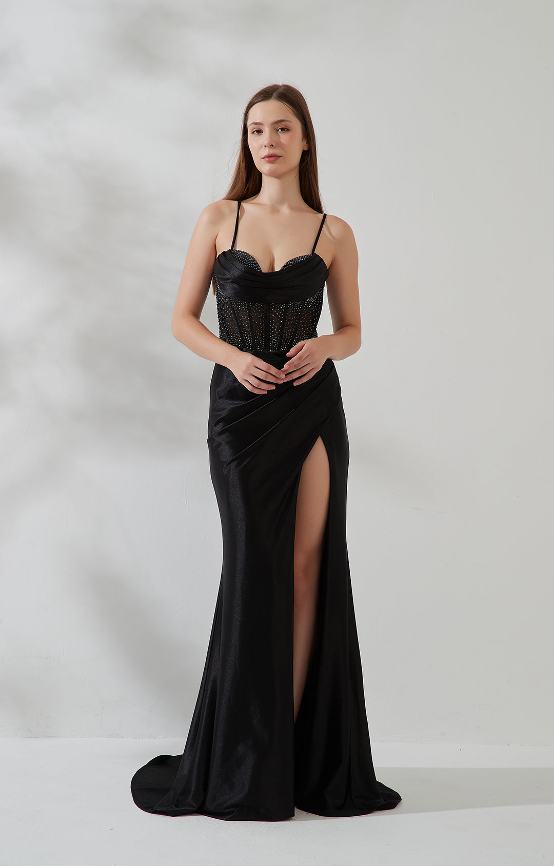 Sexy and elegant satin gown glows under the light, with smooth high split design, showing confident style, suitable for dinner, prom, cocktail party, graduation ceremony, after wedding party and other formal or informal occasions