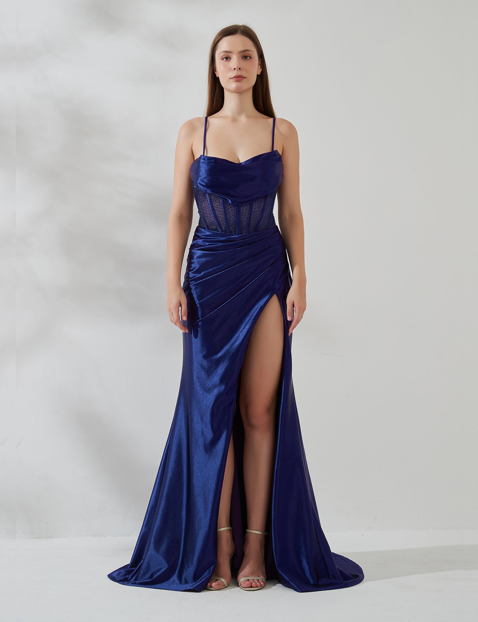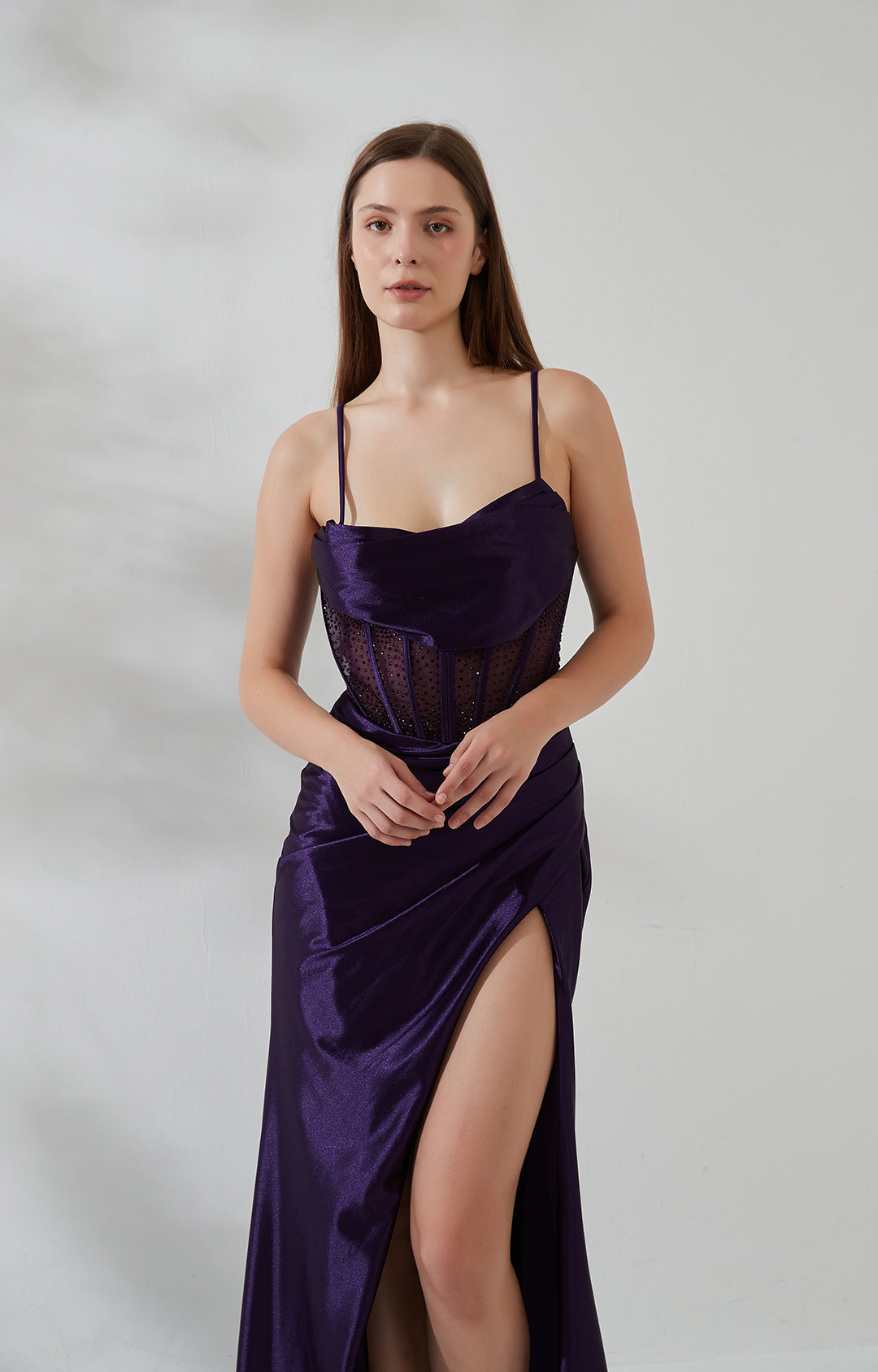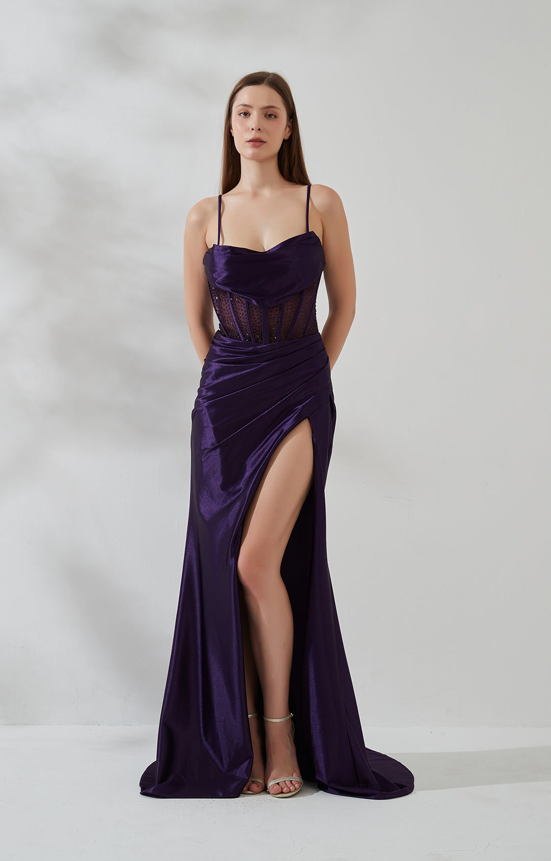 Sexy and elegant satin gown glows under the light, with smooth high split design, showing confident style, suitable for dinner, prom, cocktail party, graduation ceremony, after wedding party and other formal or informal occasions
