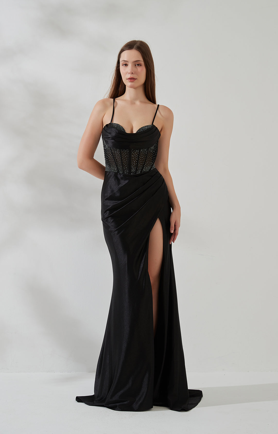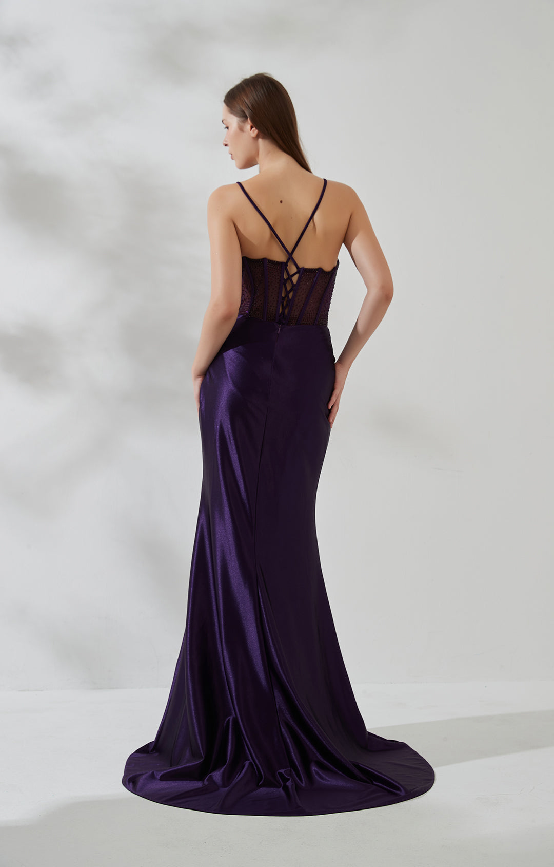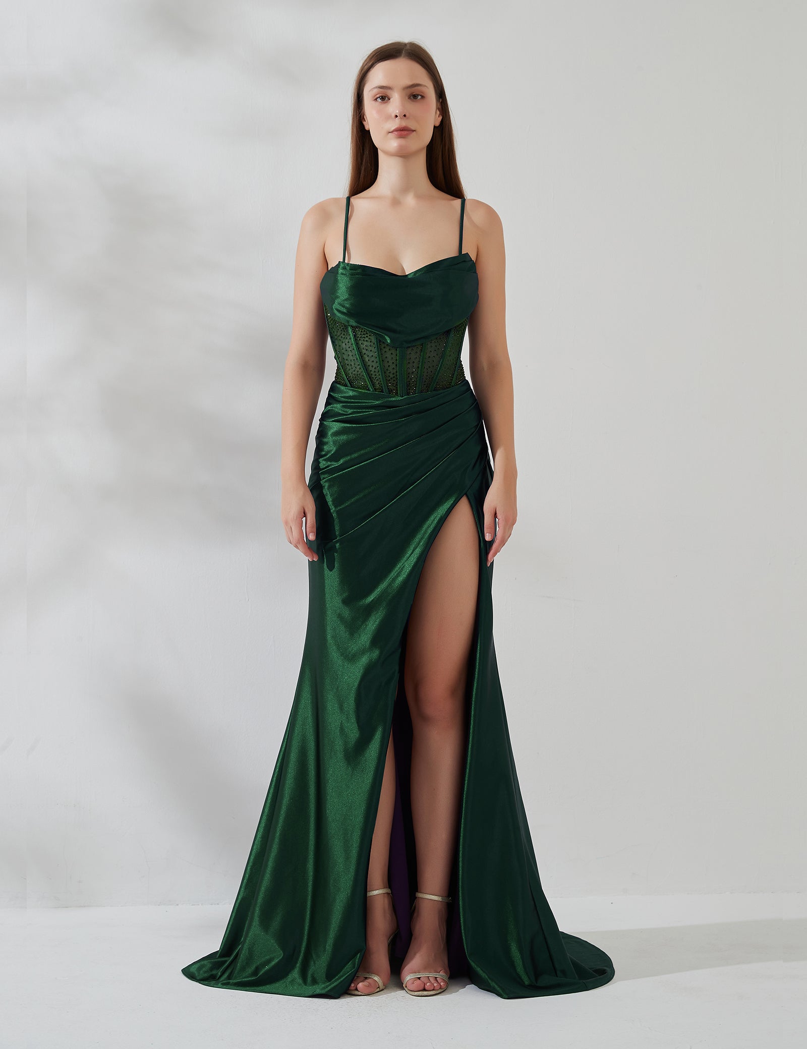 Sexy and elegant satin gown glows under the light, with smooth high split design, showing confident style, suitable for dinner, prom, cocktail party, graduation ceremony, after wedding party and other formal or informal occasions