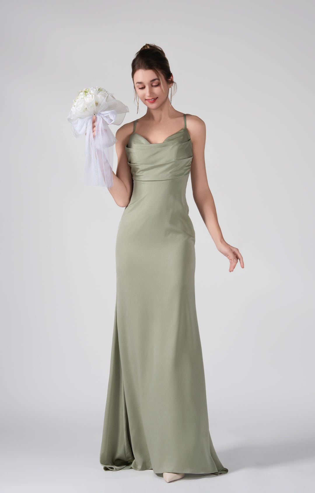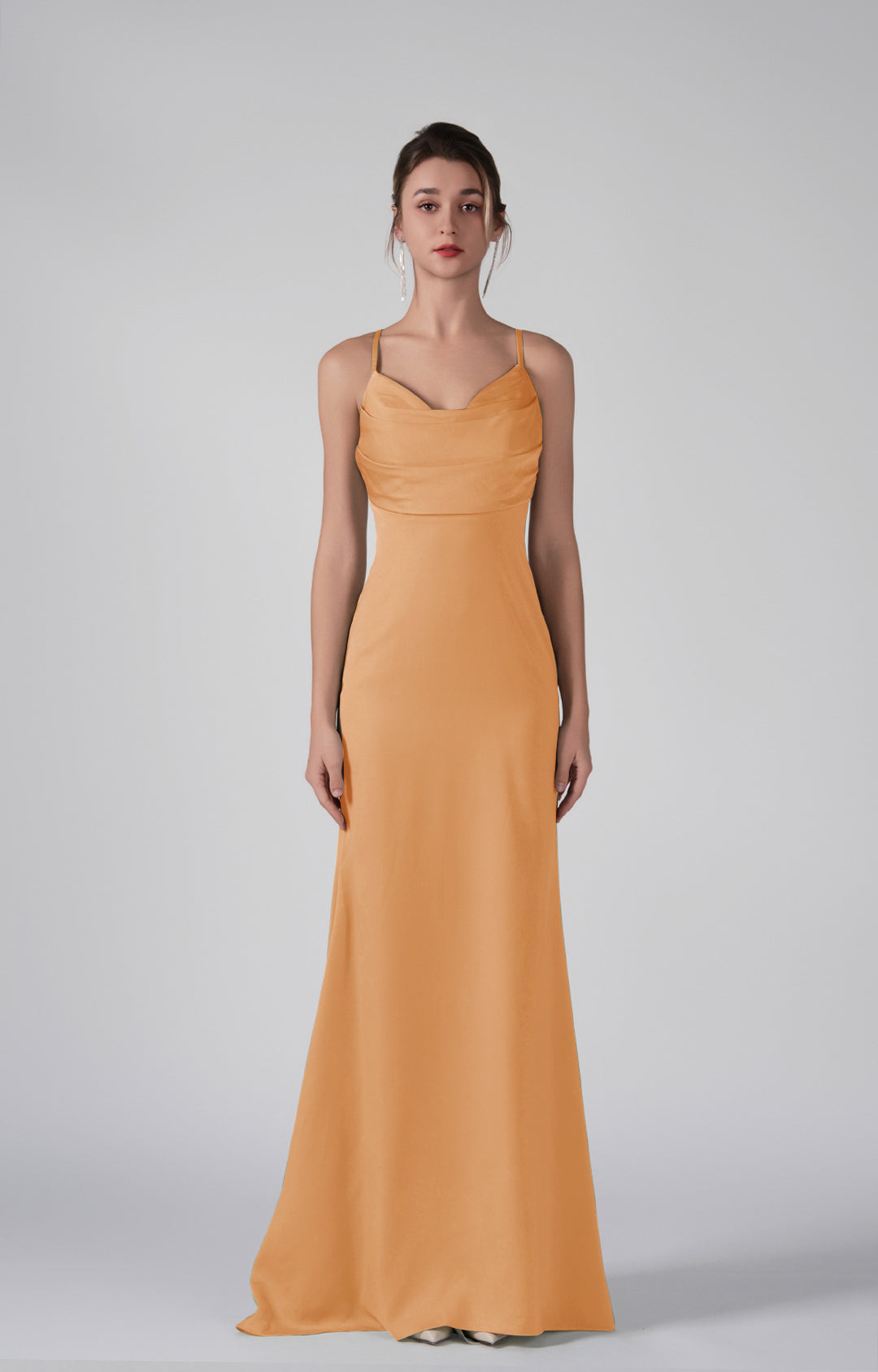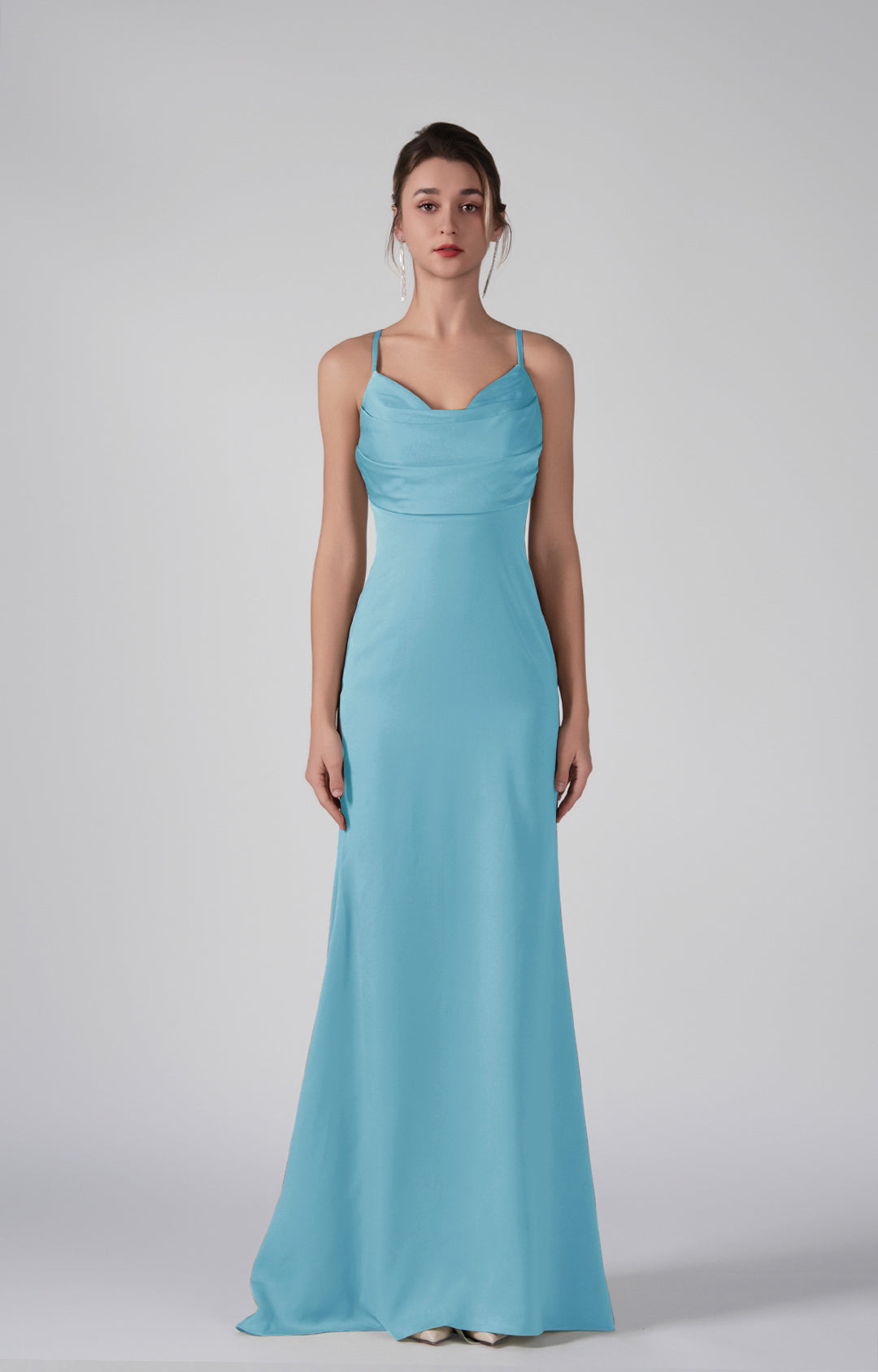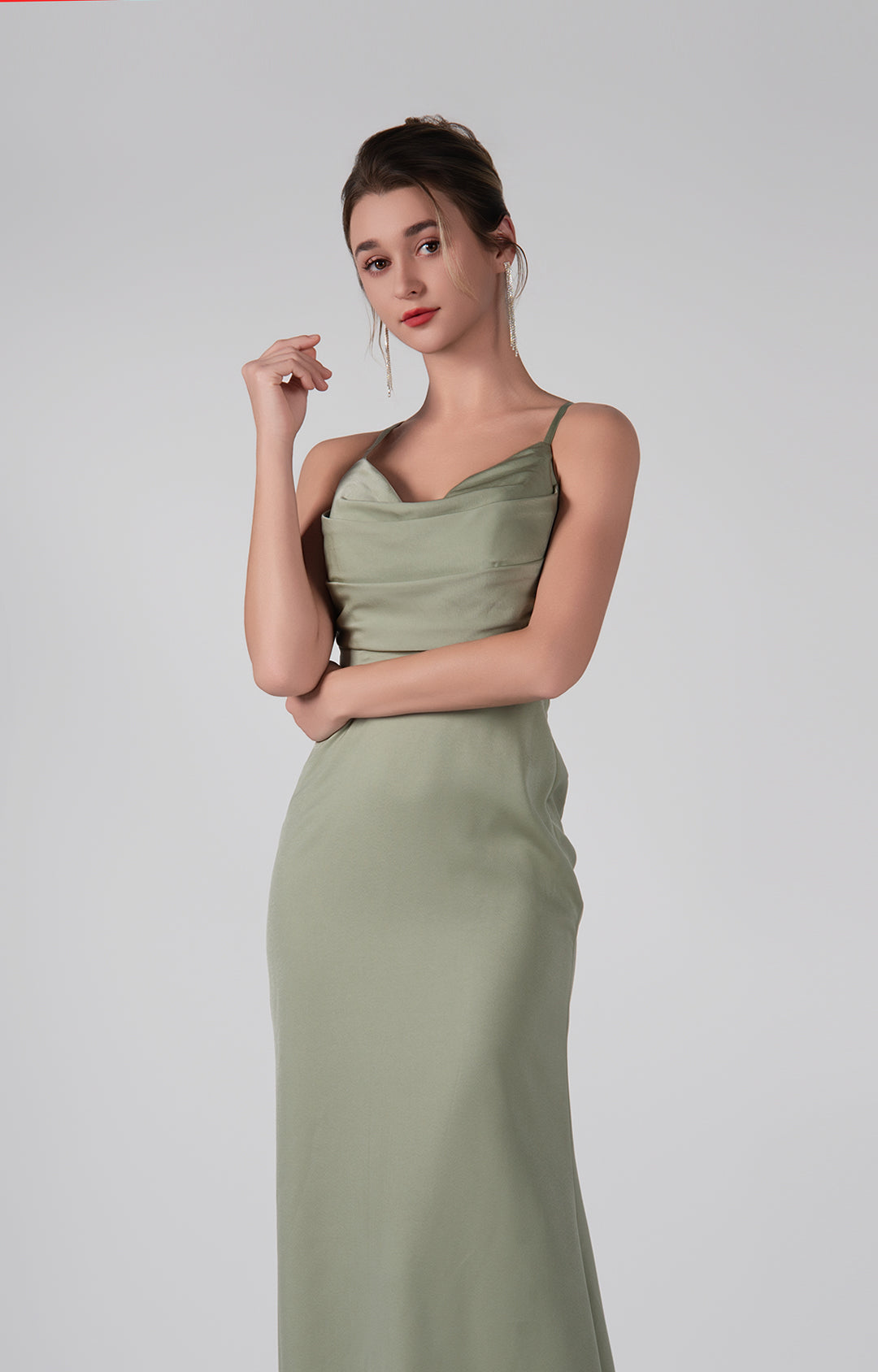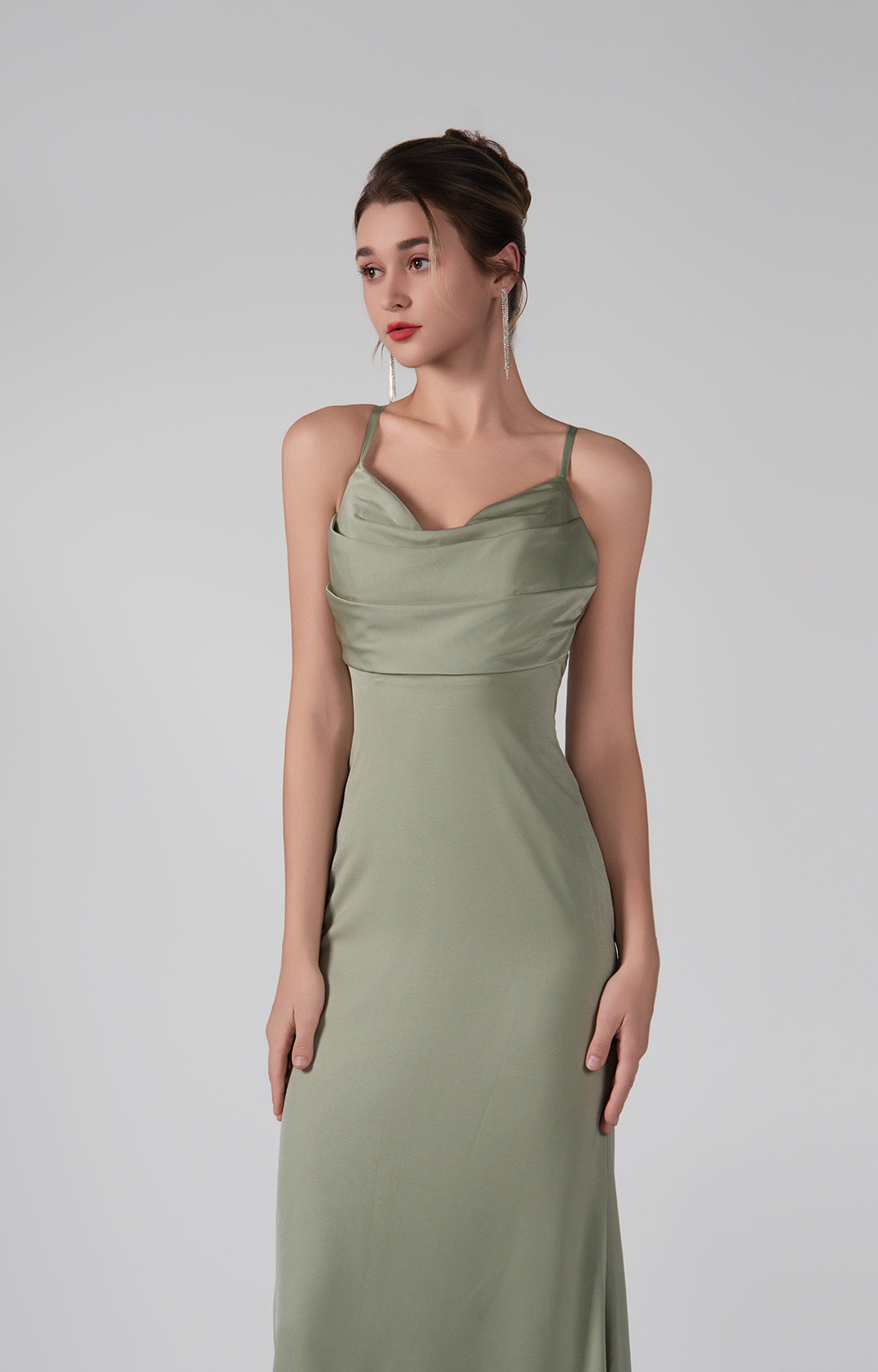 Spaghetti Straps Cowl Neck Ruffles Sheath Maxi Dress