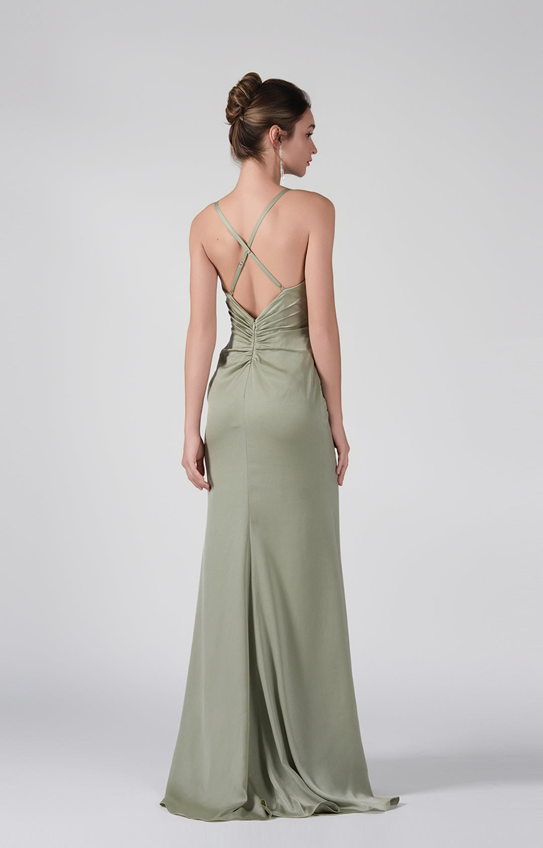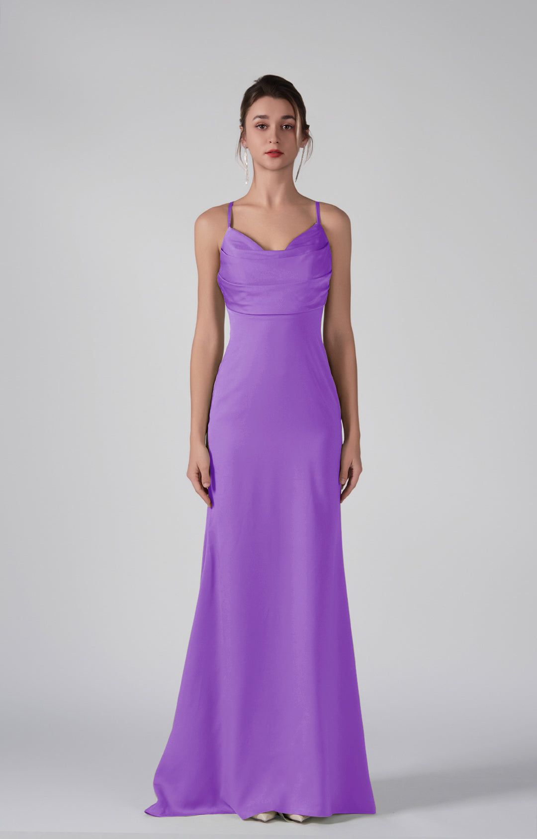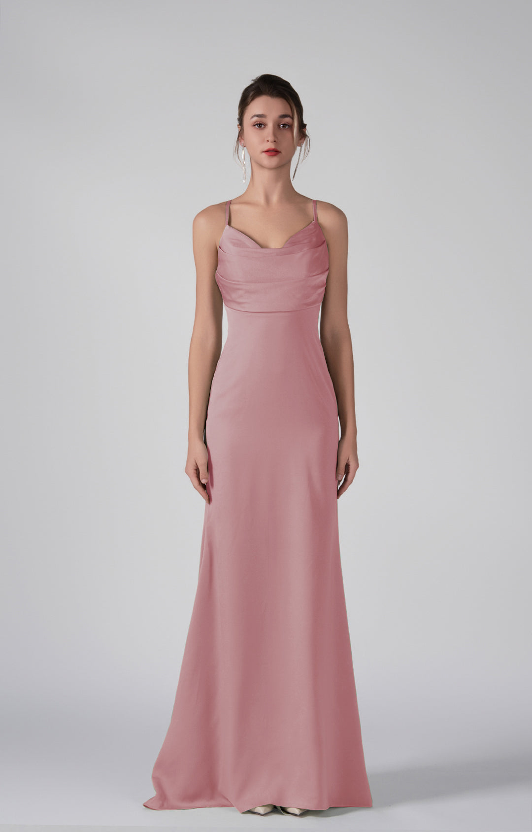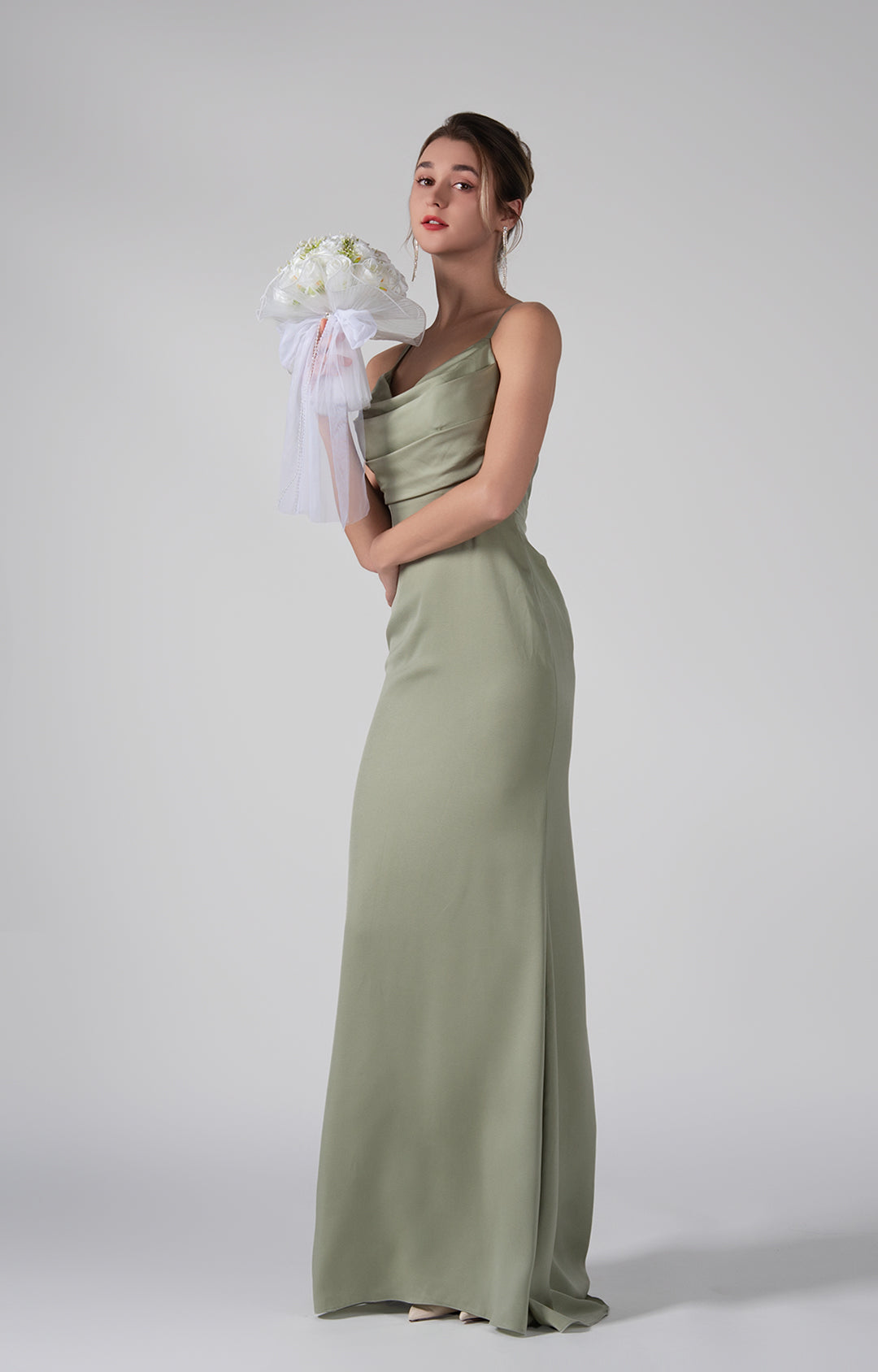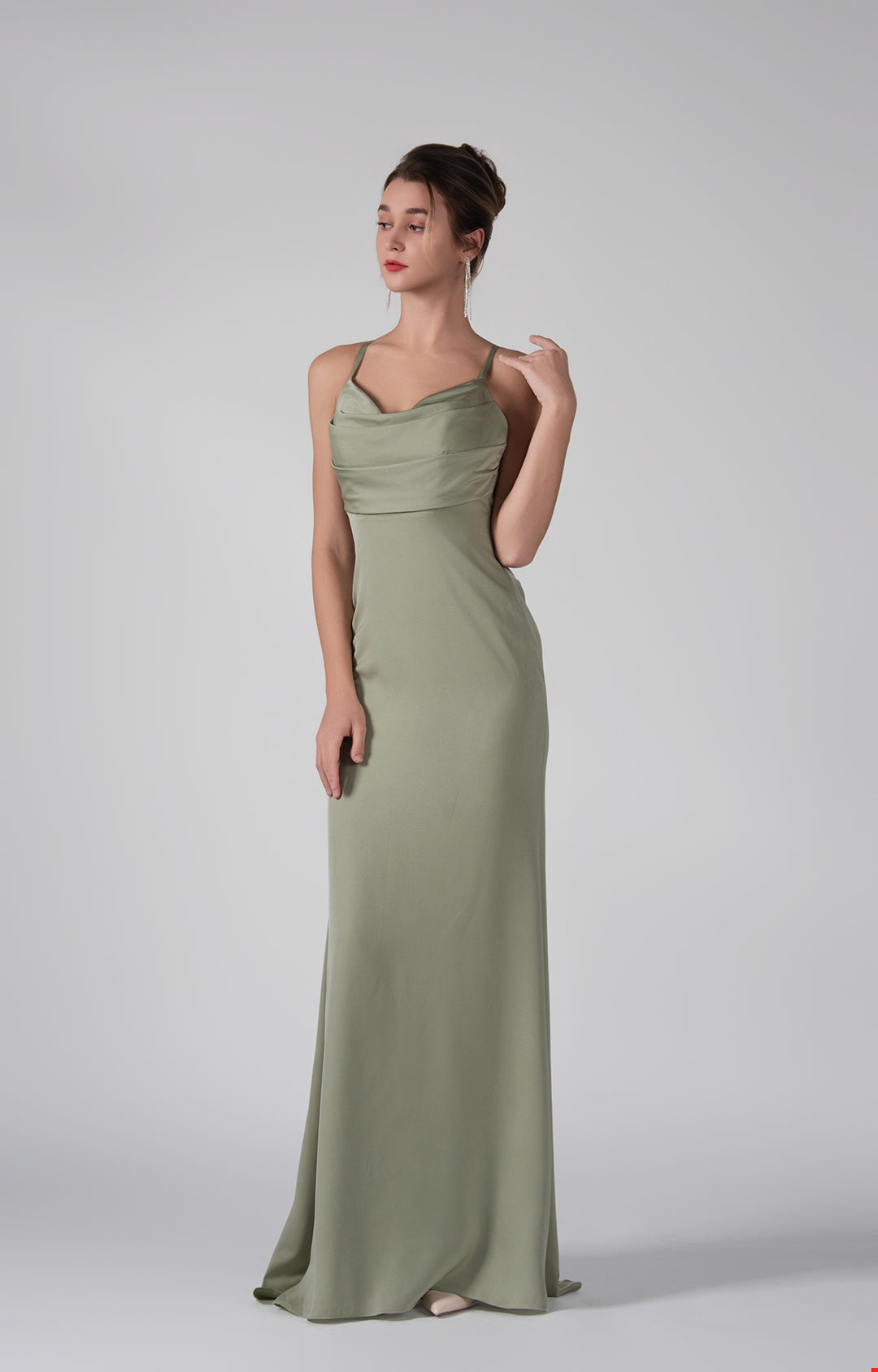 Spaghetti Straps Cowl Neck Ruffles Sheath Maxi Dress