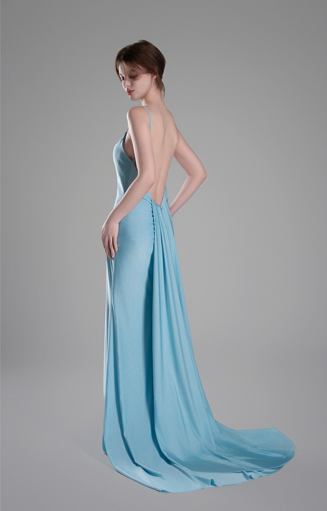 Spaghetti Straps Open Back Wrap Hip Small Tail Dresses
