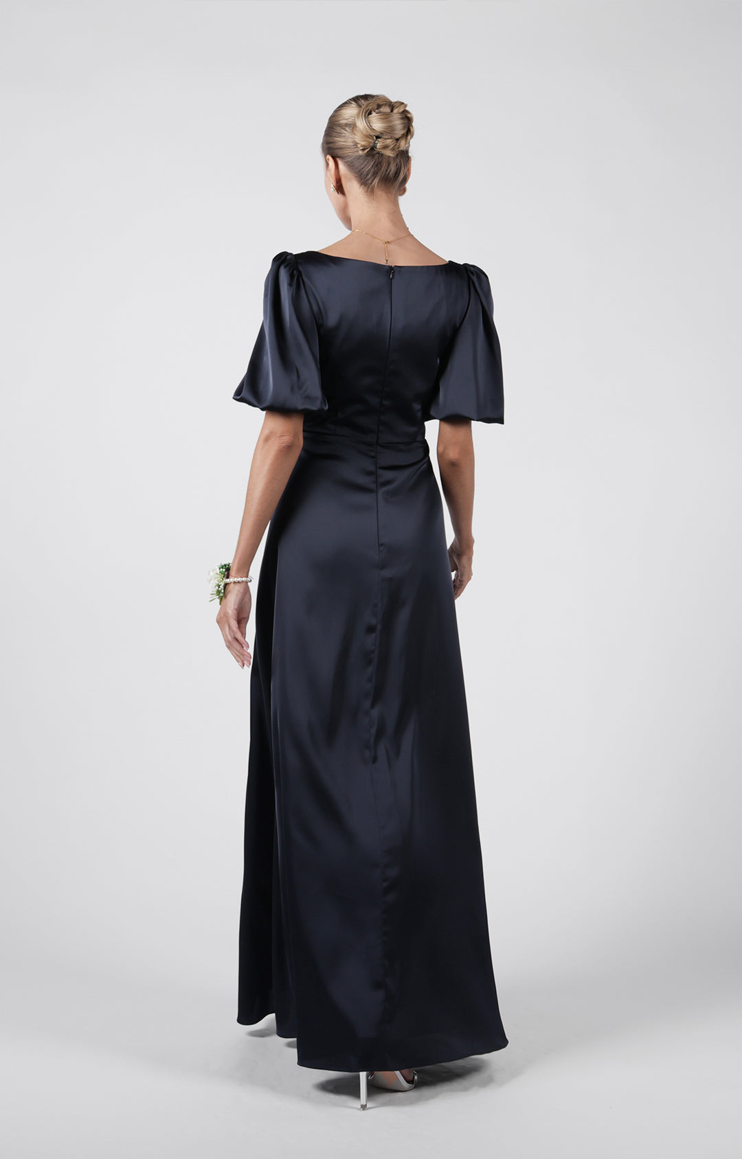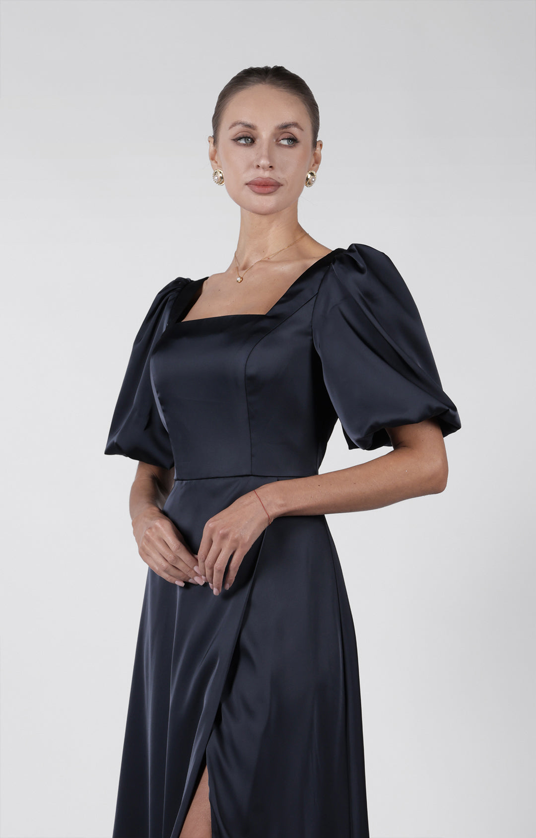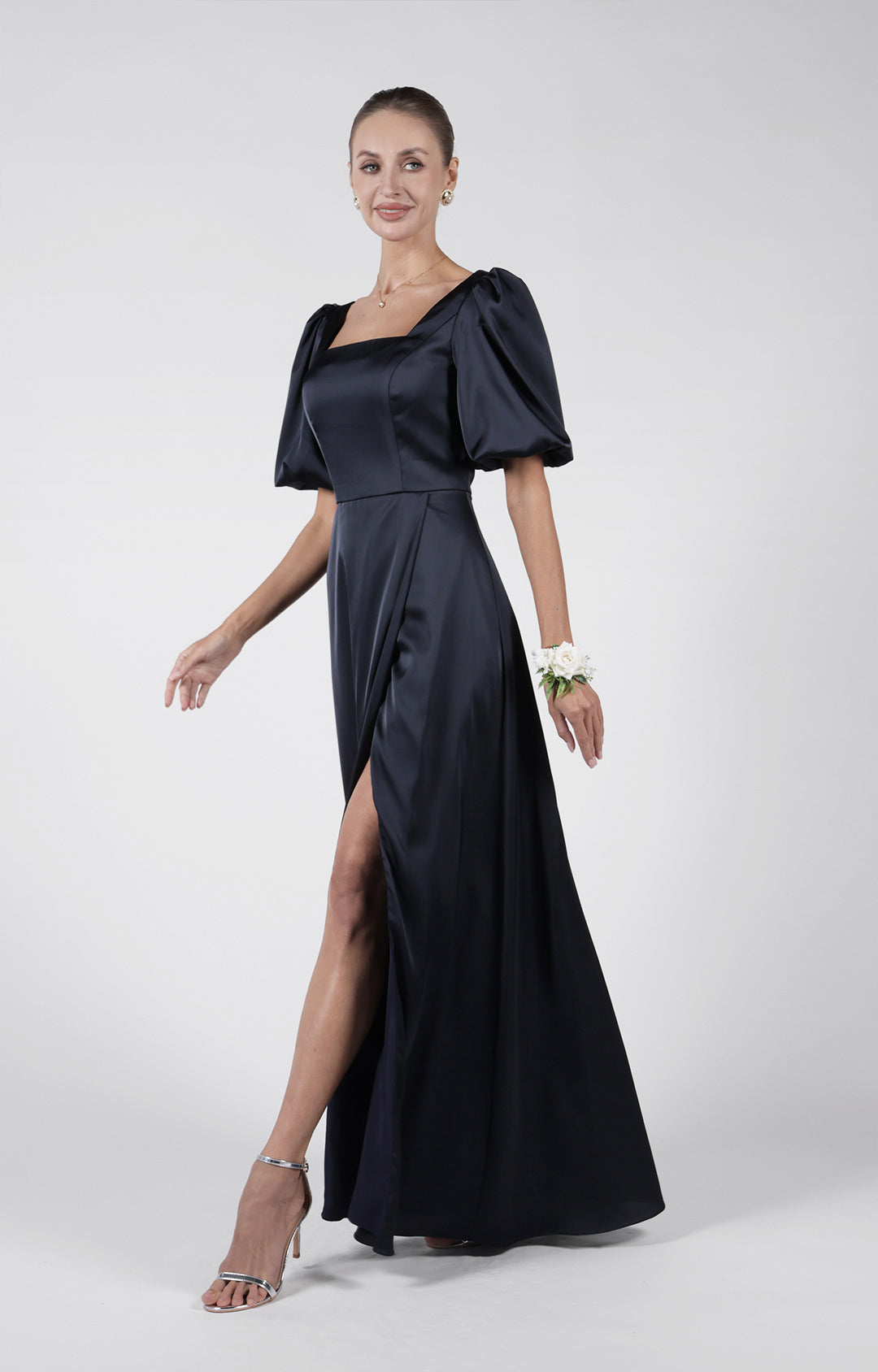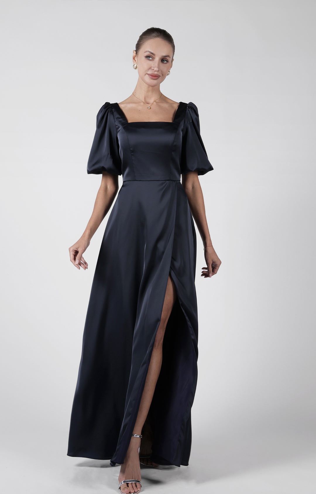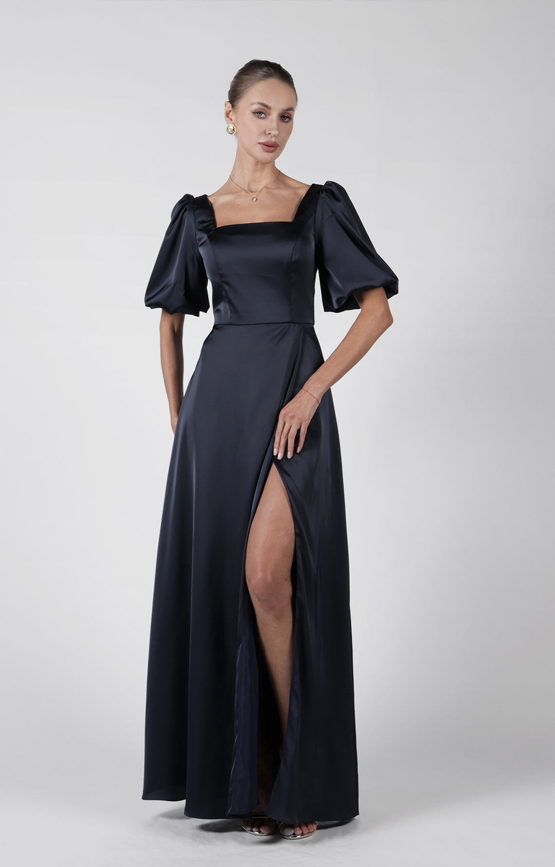 Square Neck Puffy Sleeve High Split Bridesmaid Maxi Dress