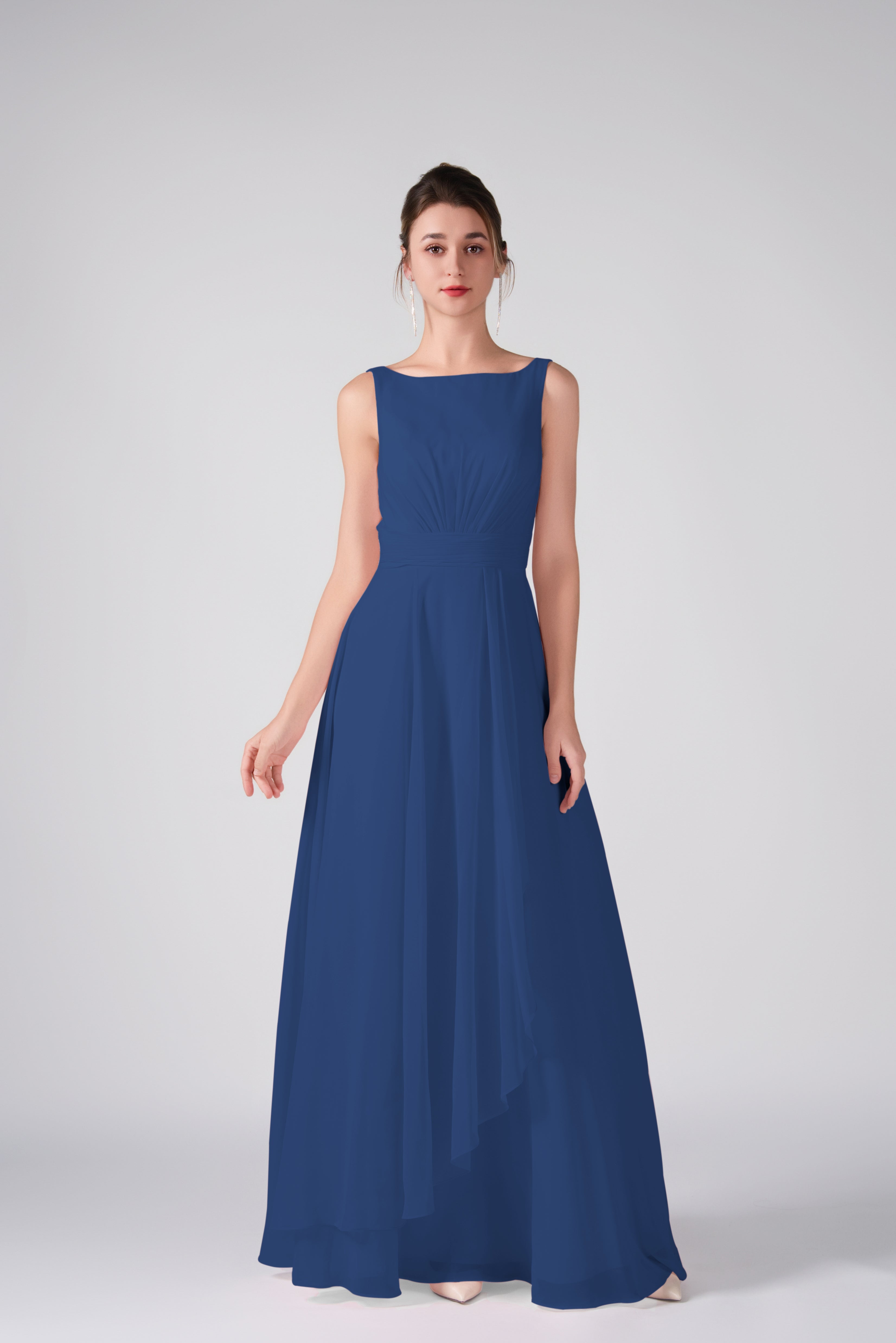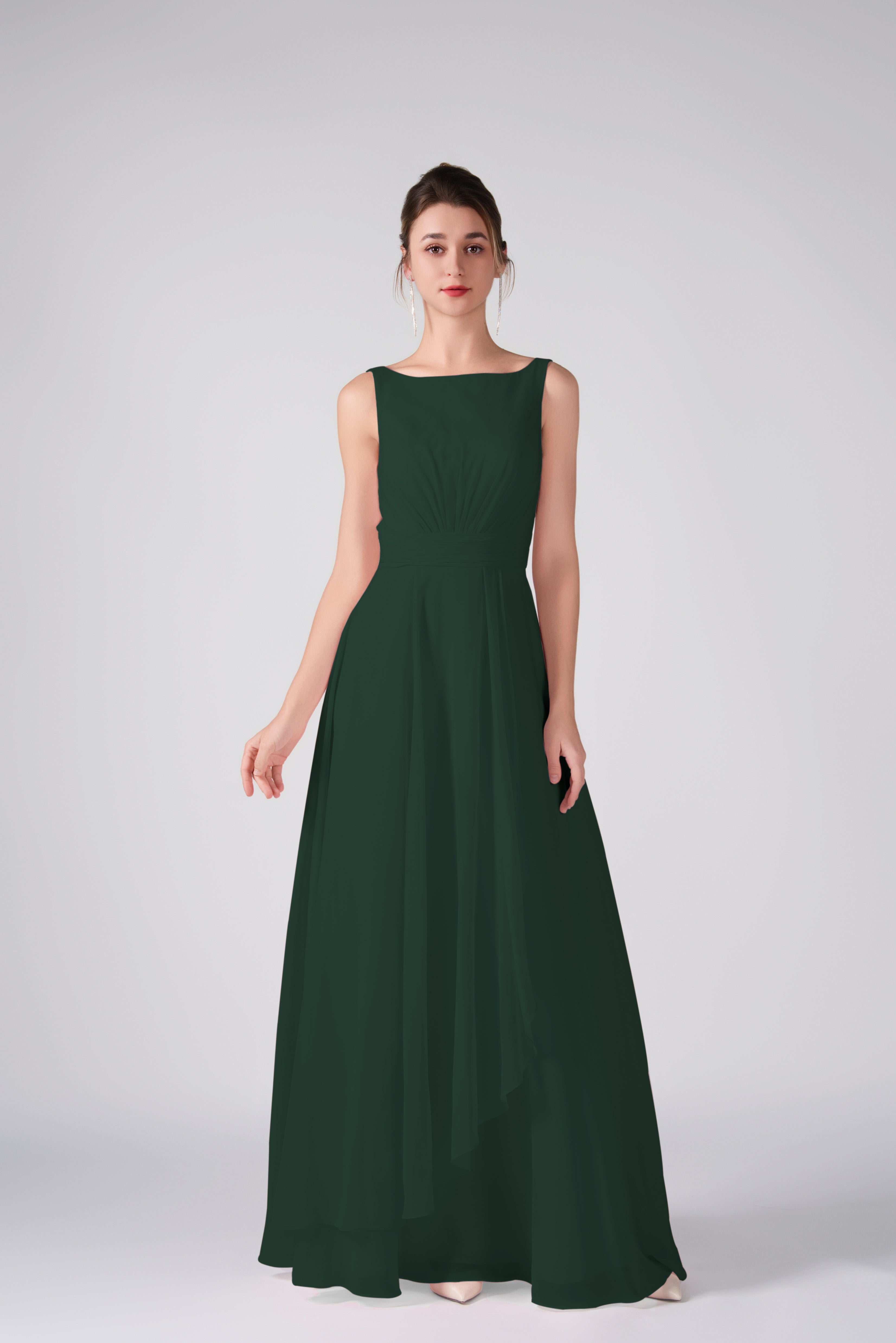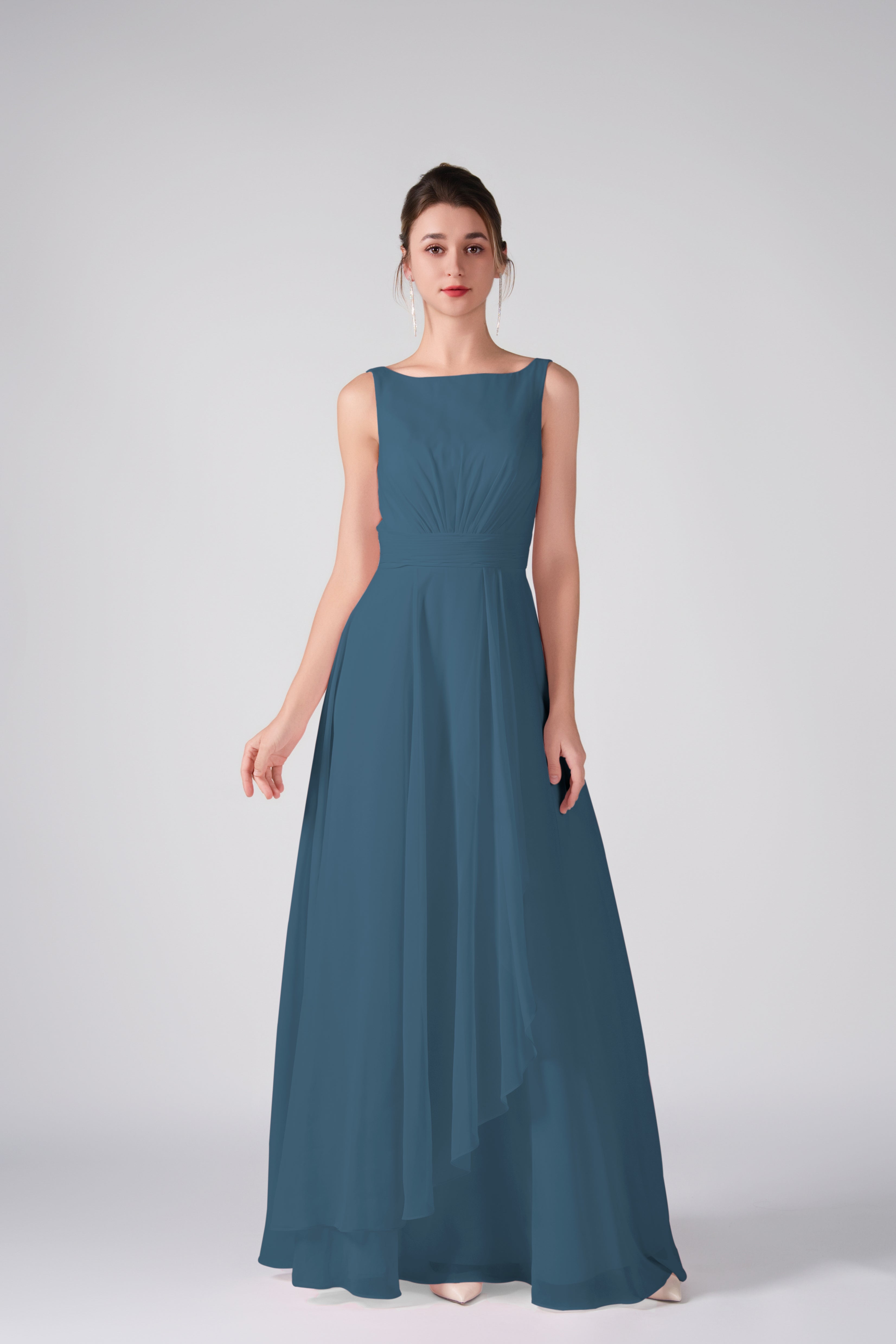 Bateau Neckline Sleeveless Ruched A-Line Maxi Dress