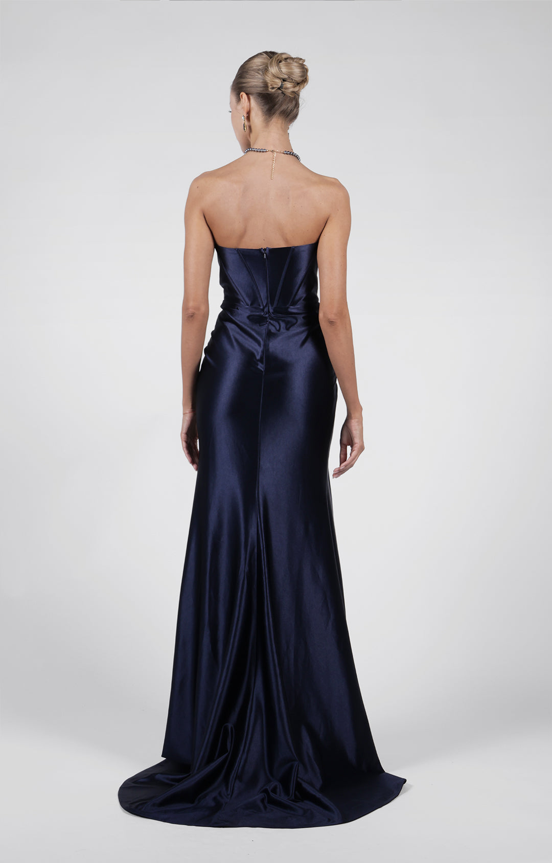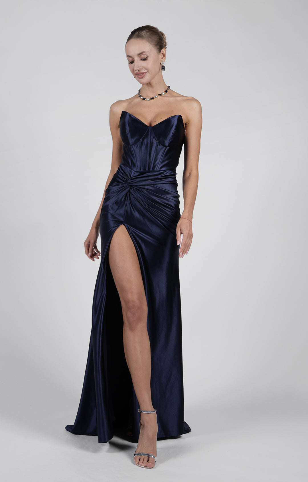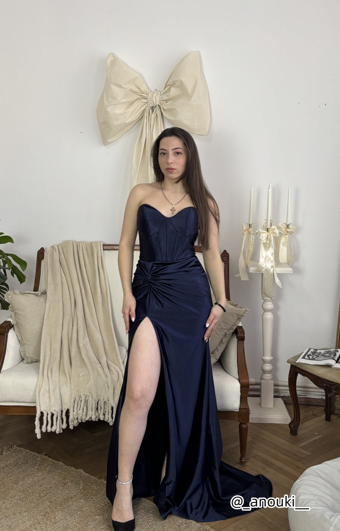 Strapless Corset Gathered Waist High Split Trailing Dress