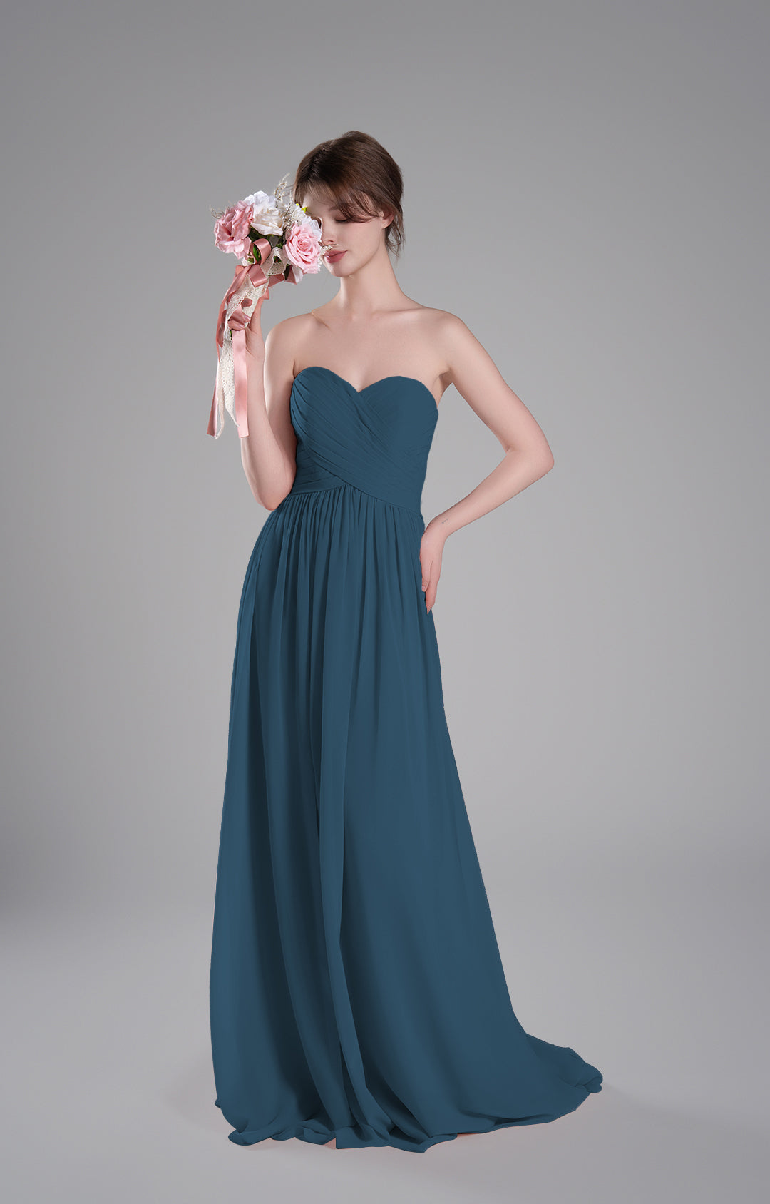 Sweetheart Neck Pleated Flowing A-Line Silhouette Dresses