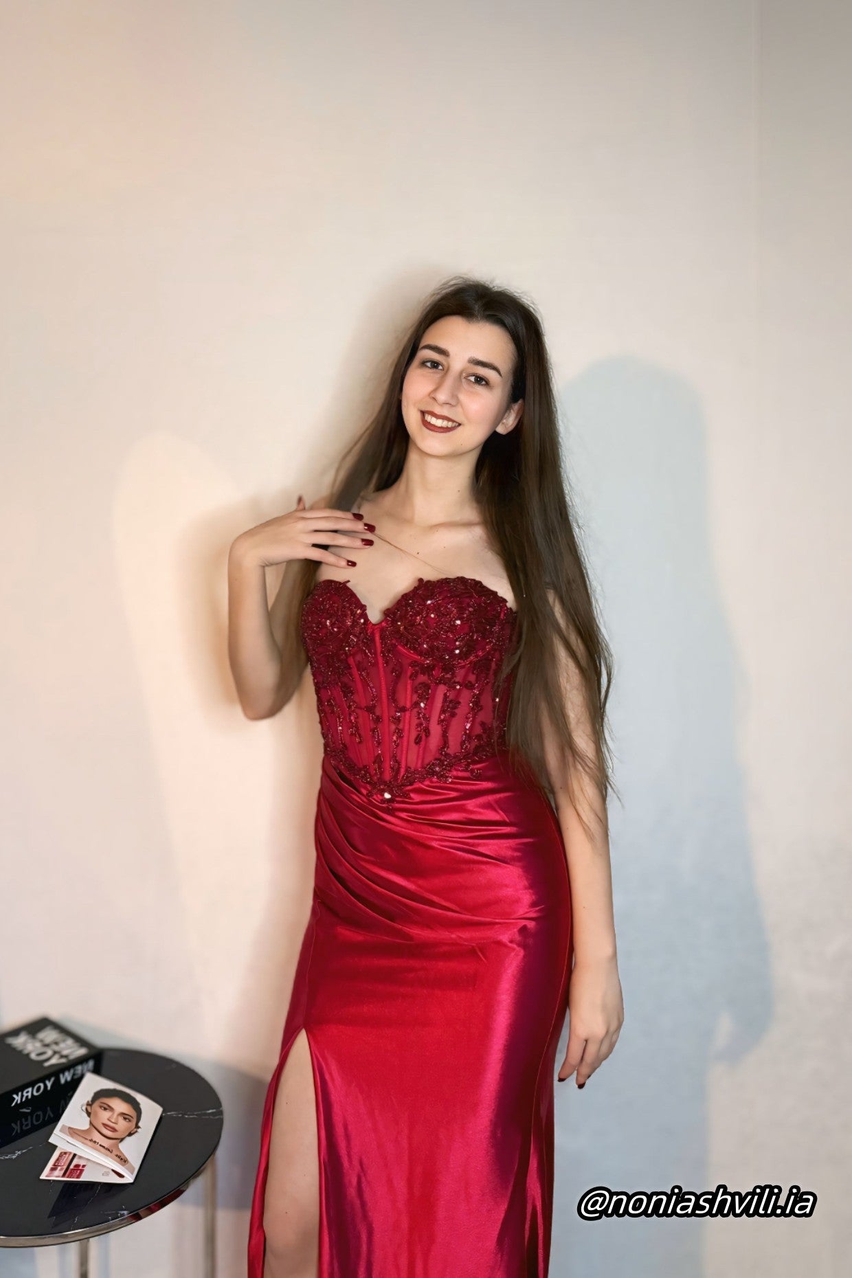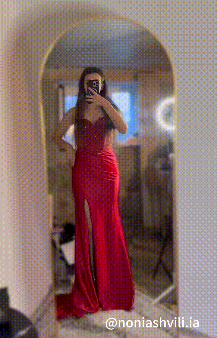 Sweetheart Collar High Split Sweep Train Satin Evening Dress